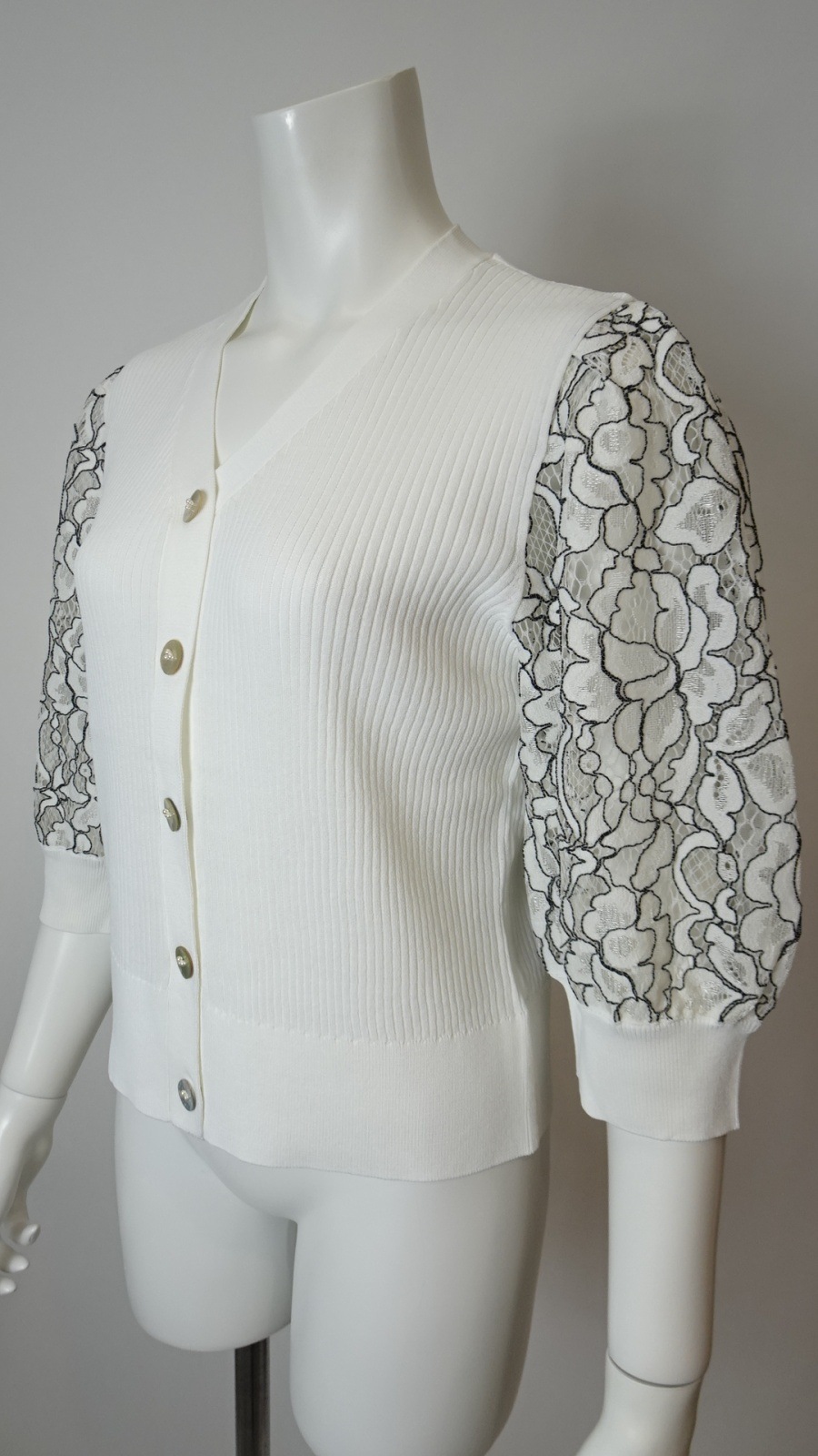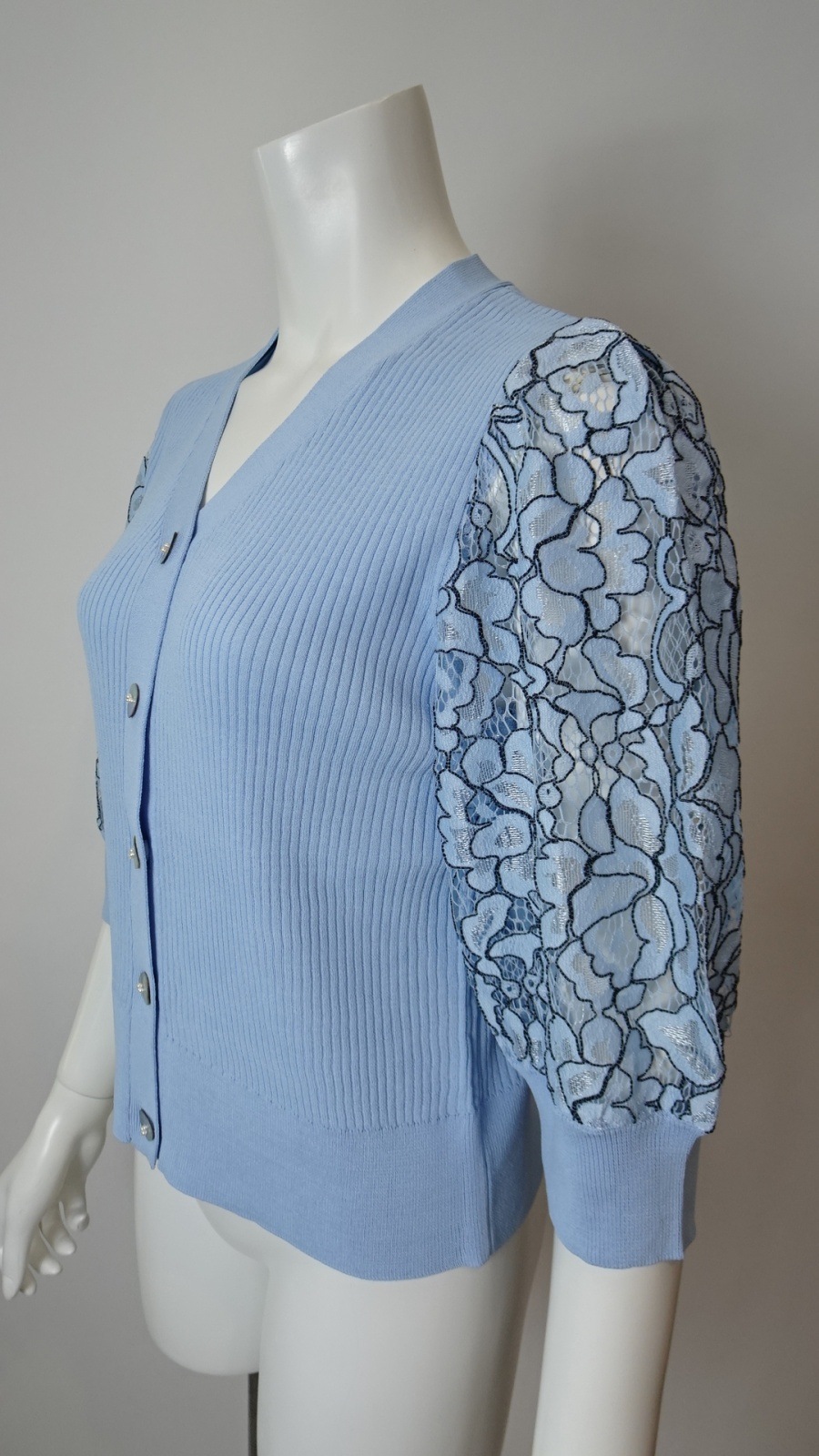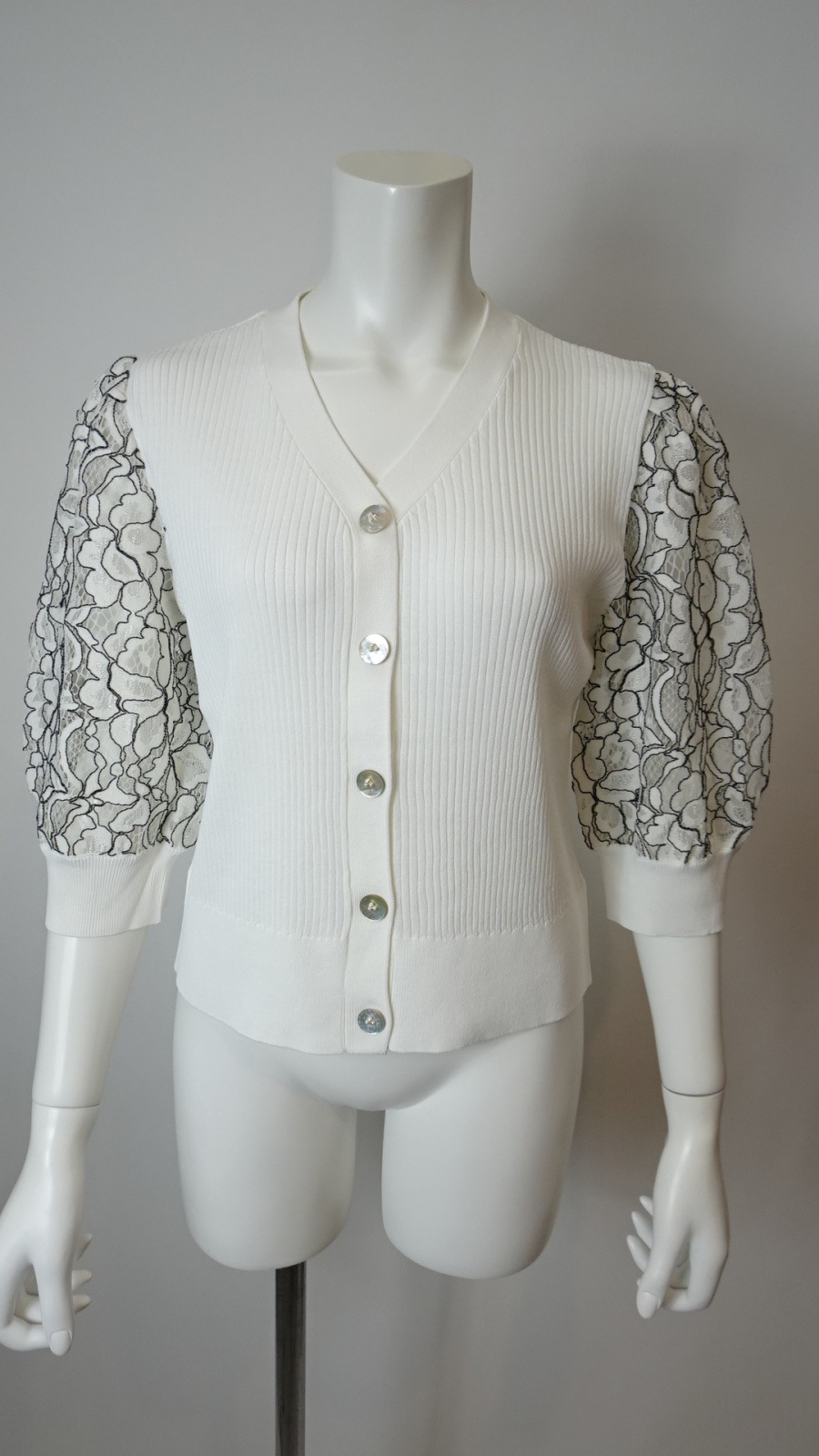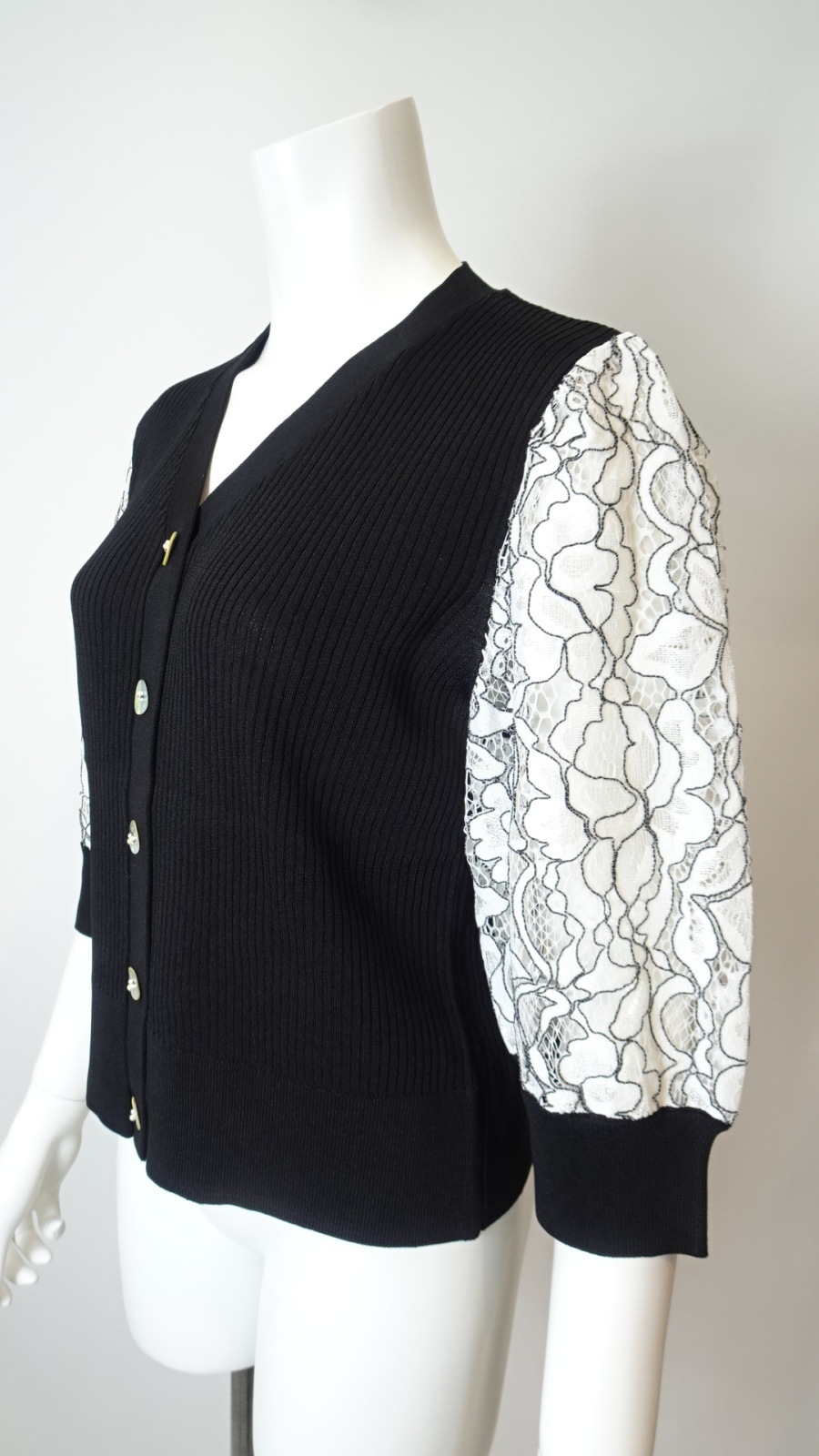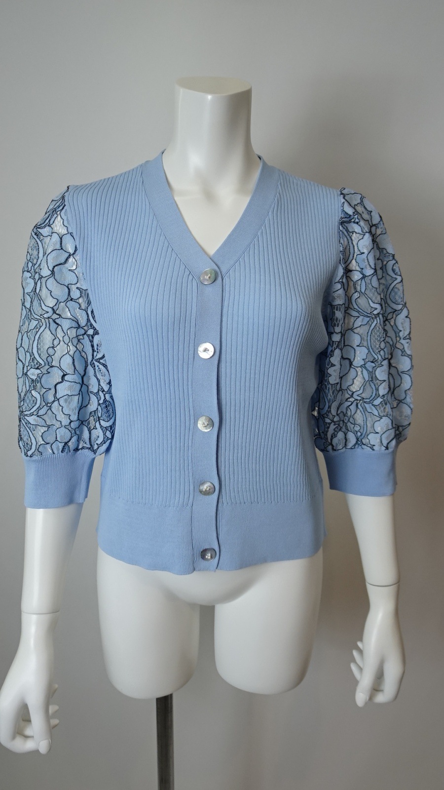 このカーディガンは、デイリーユースから特別なシーンまで幅広くご利用いただけます。エレガントな袖レースがさりげなく女性らしさを演出します。多彩なカラー展開から、自分のお気に入りを見つけてください。