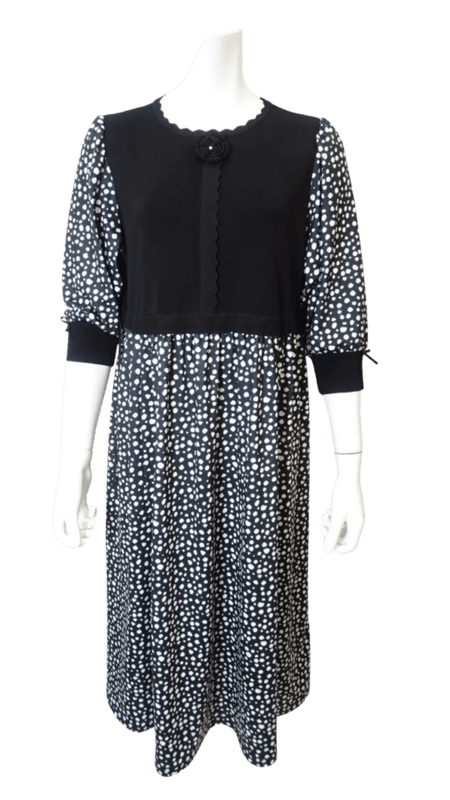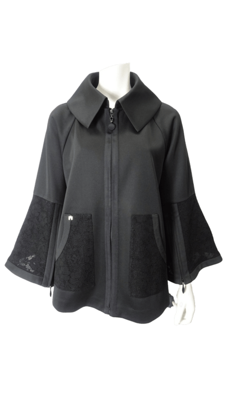 華やかな胸元の花モチーフが、カジュアルエレガンスを醸し出します。黒のみの落ち着いたカラーは、いろんなシーンで活躍すること間違いなし。着丈がしっかり有り、ウェストやヒップ周りをしっかりカバーし、スタイルアップ効果も抜群です。