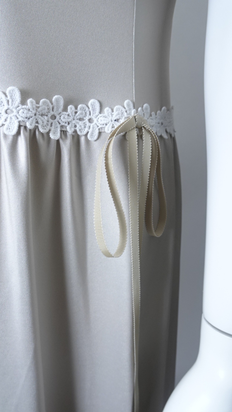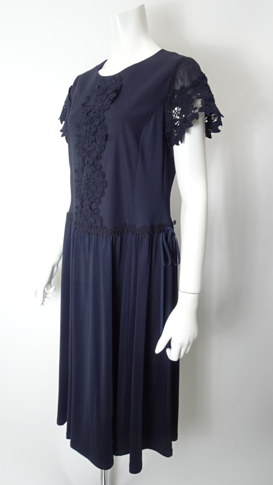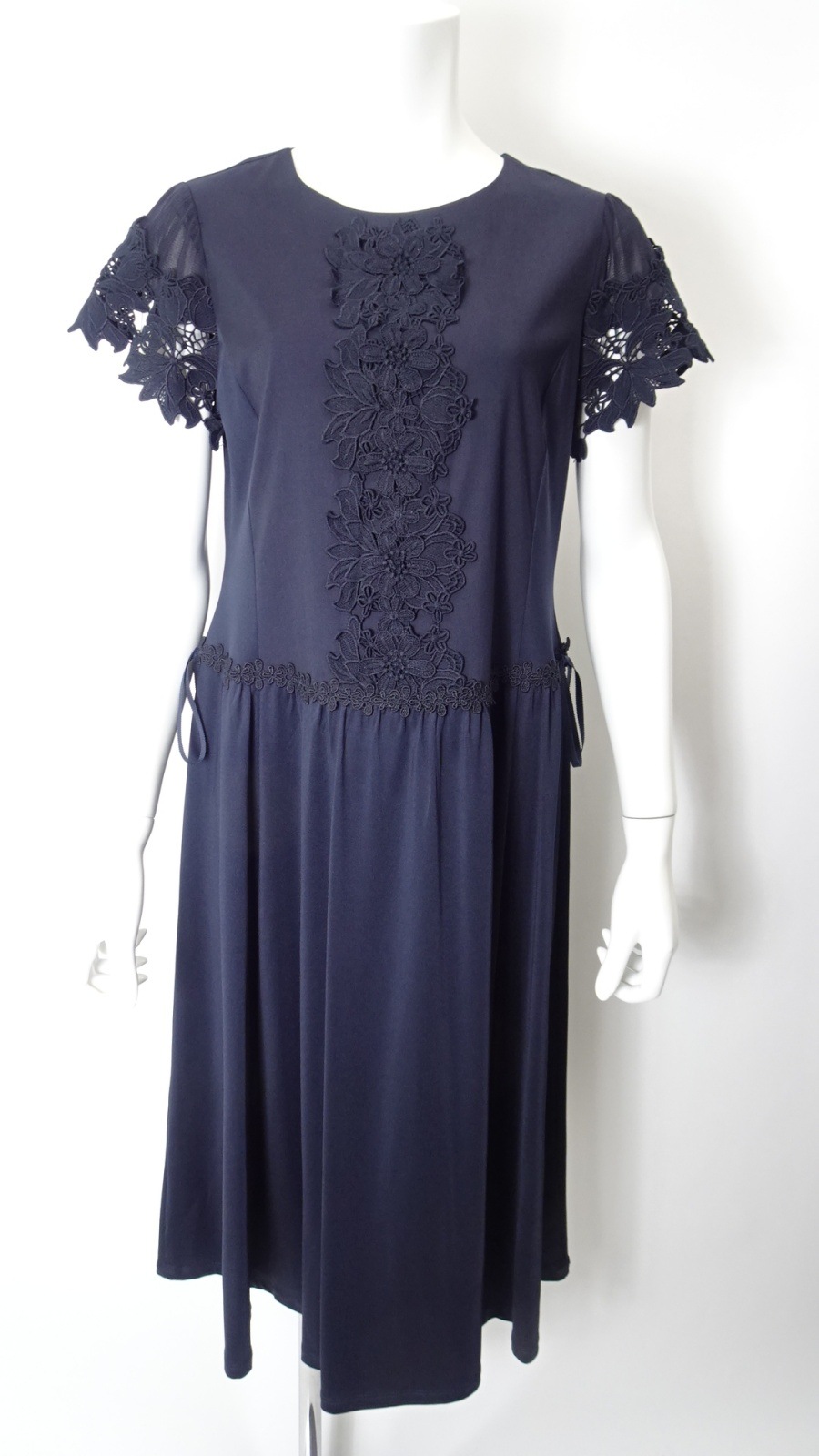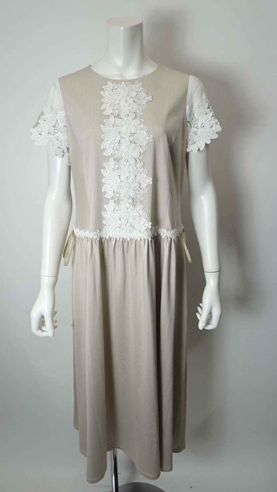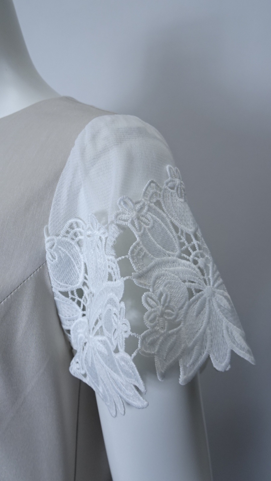 袖レースが施されたこのワンピースは、柔らかな素材感で肌に優しく、動くたびに揺れる美しいシルエットが魅力的です。また、ウェストギャザーデザインにより、スタイルアップ効果も期待でき、あなたの美しさを引き立てます。