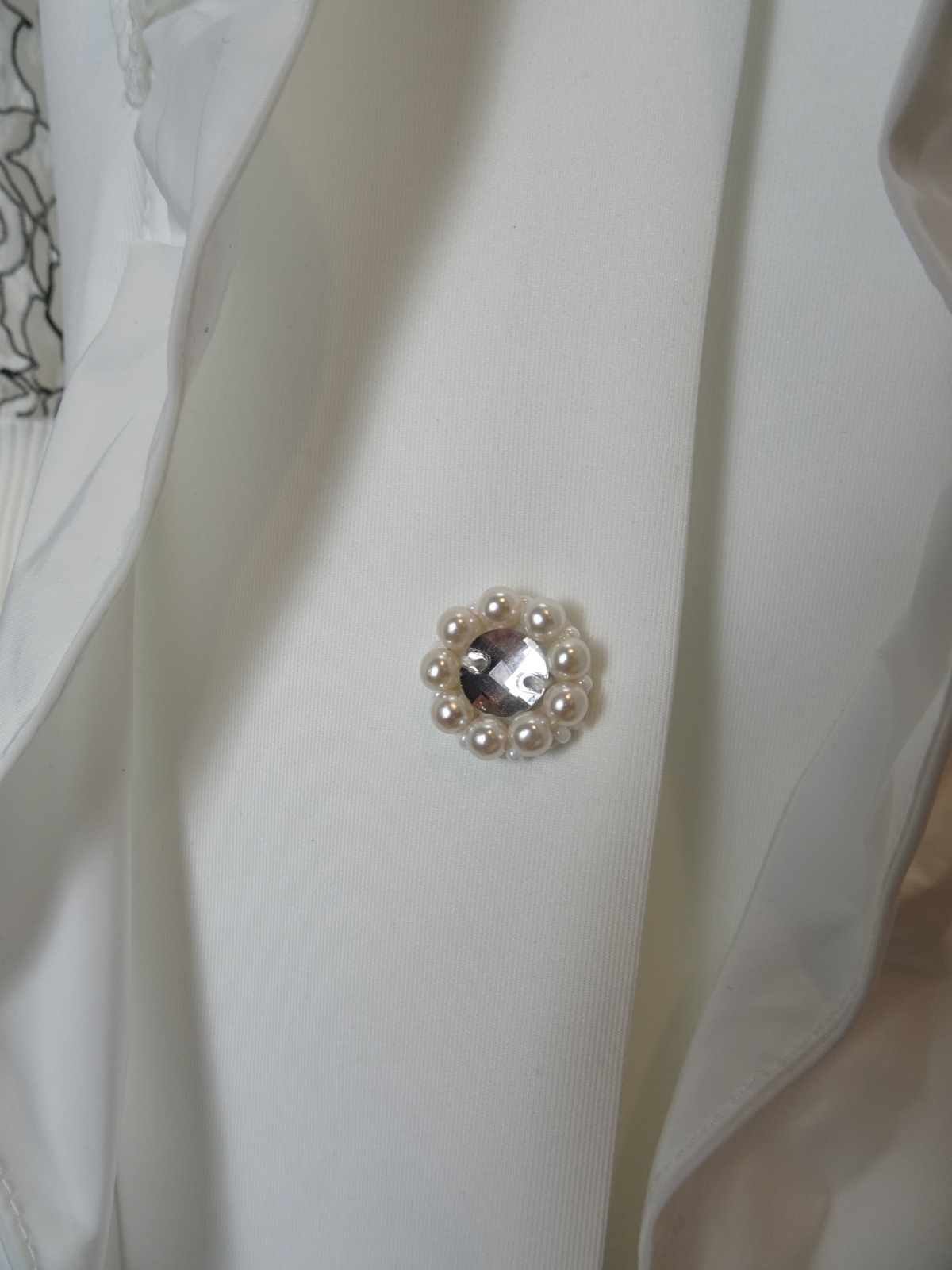 また、キラキラボタンが目を引くアクセントになっており、細部へのこだわりを感じさせます。伸縮性に優れたダンボールニット素材を使用しているため、ストレッチ感もあり、動きやすさを確保しています。日常使いにはもちろん、ちょっとしたお出かけにもぴったりです。