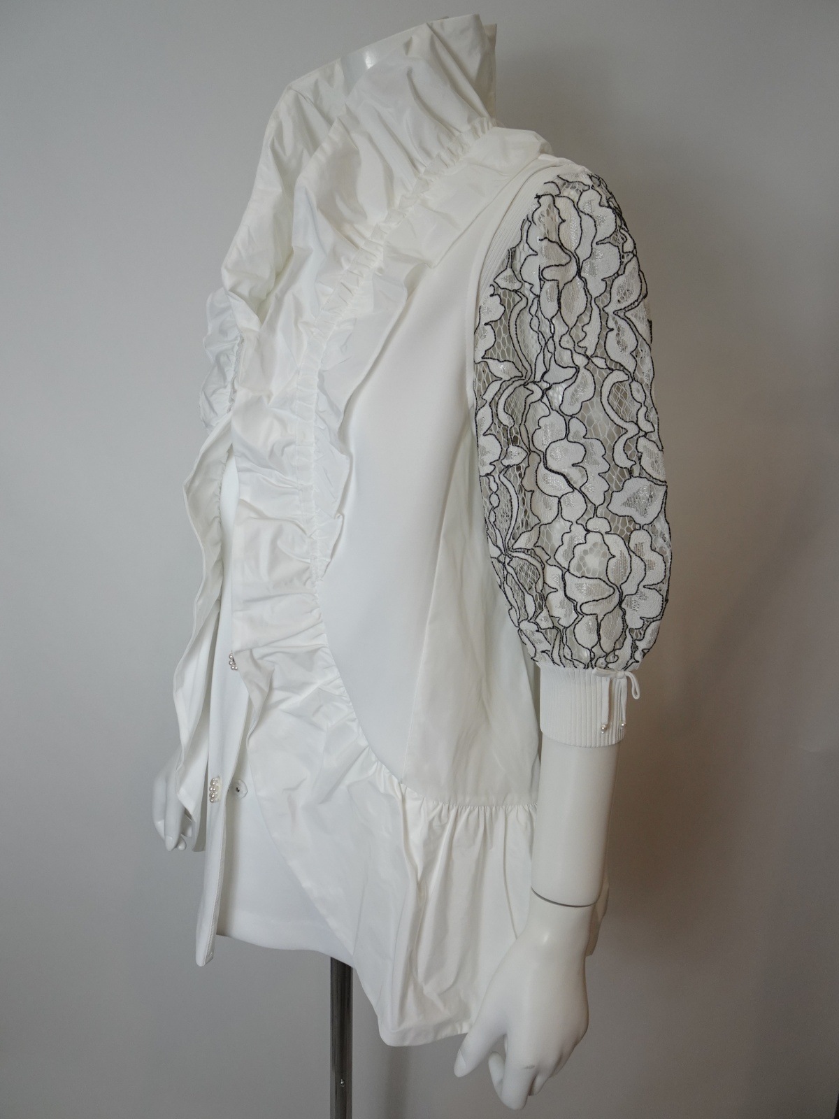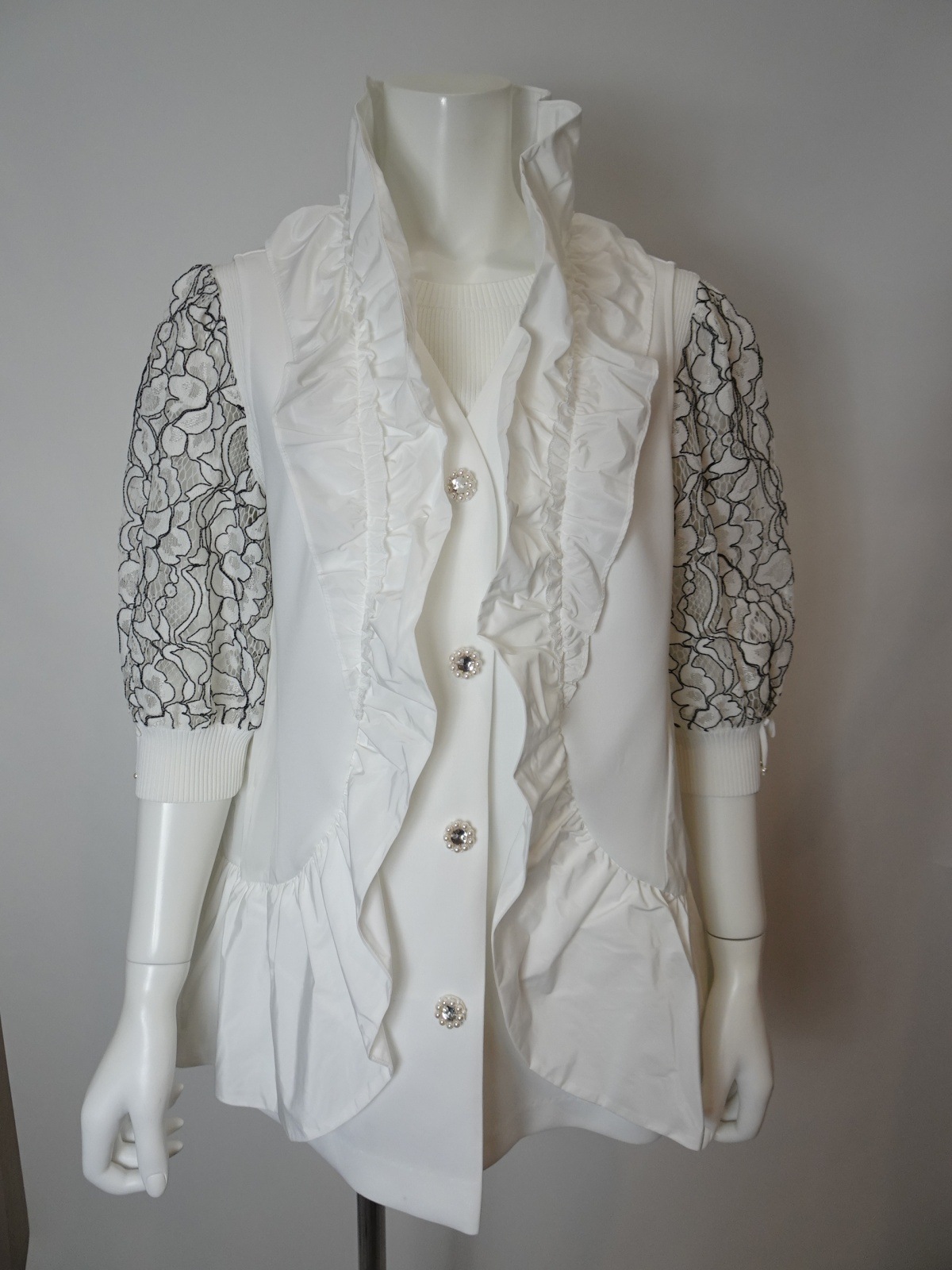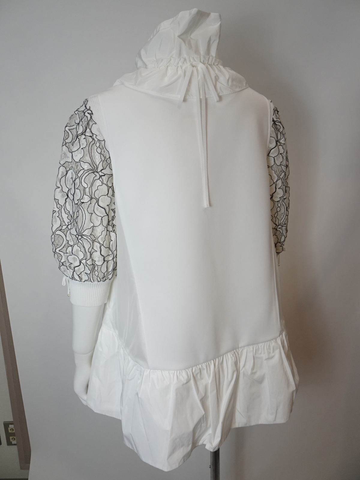 スリムなVネックデザインとスタンドフリルが絶妙に融合し、女性らしさを引き立ててくれます。