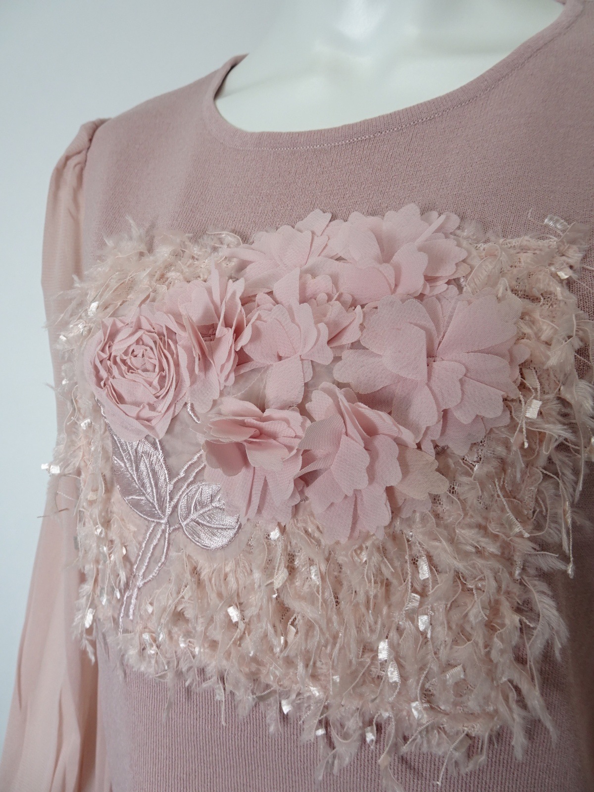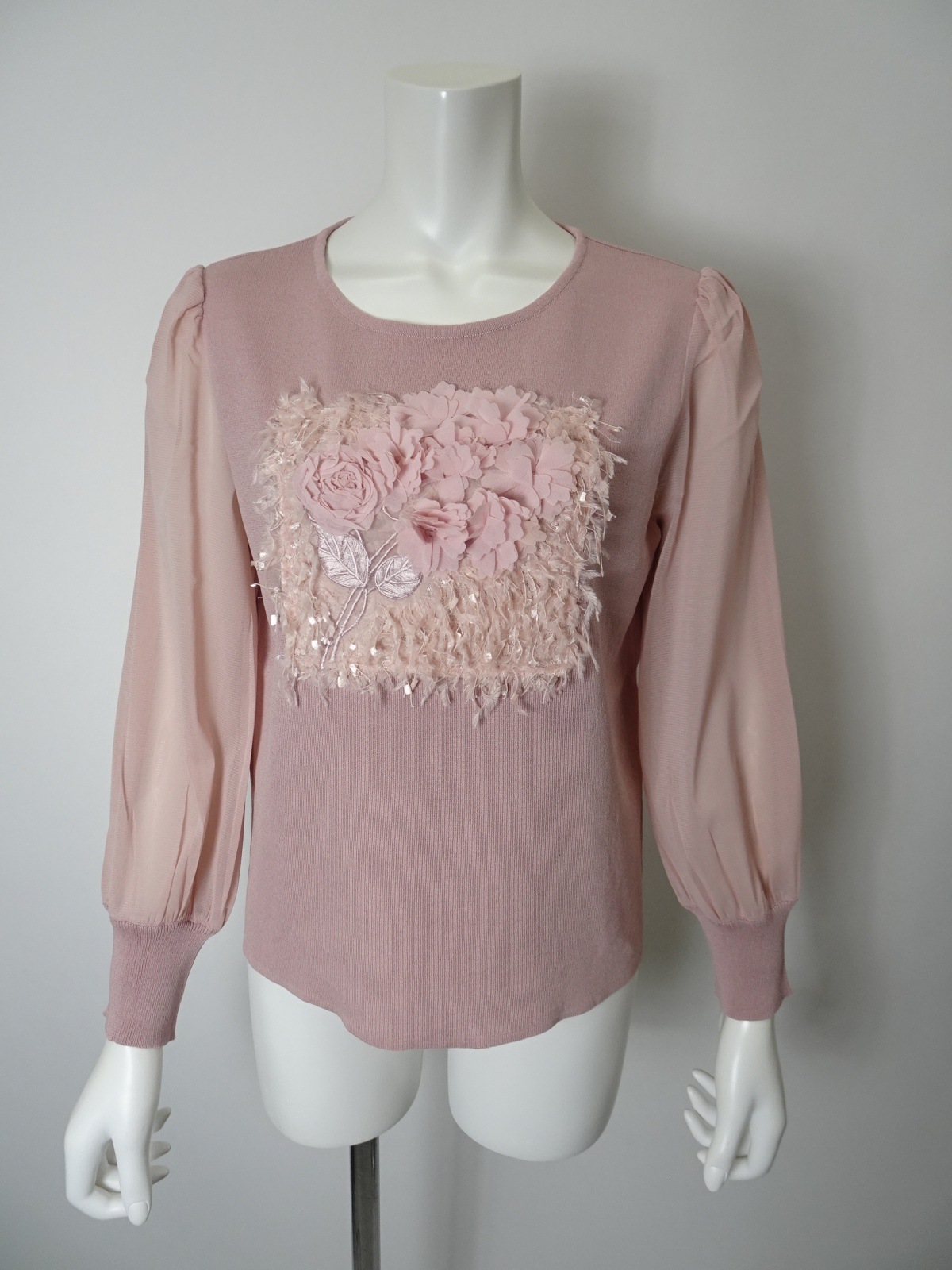 おしゃれな印象を与えてくれるパワーネット素材の袖も魅力的です。