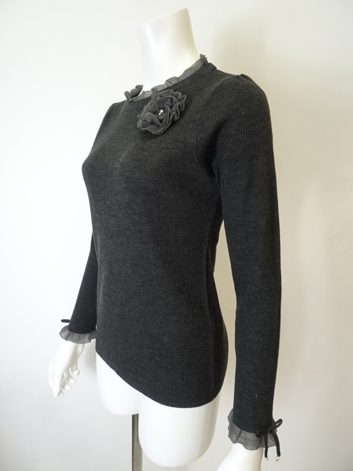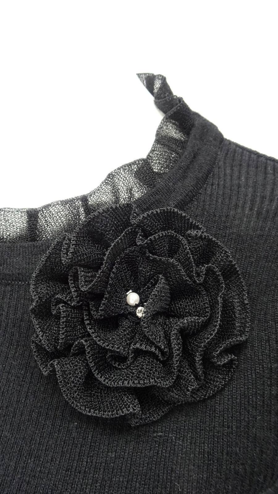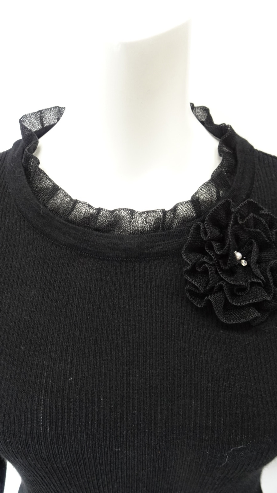 2025年秋冬 コサージュ付 衿・袖先透かしフリルデザインセーター 2521016