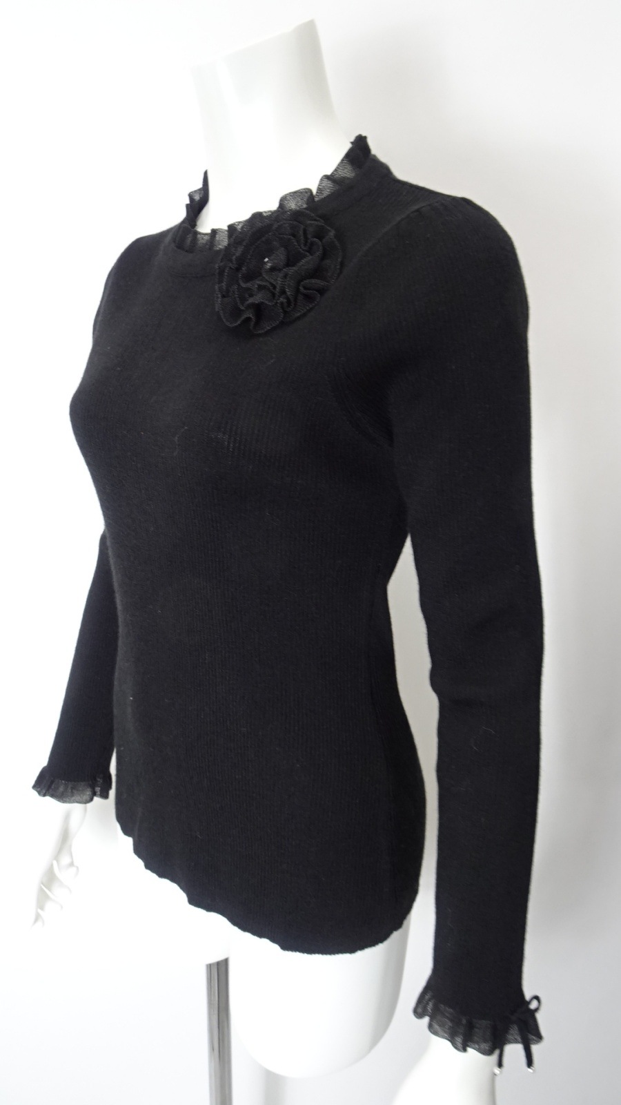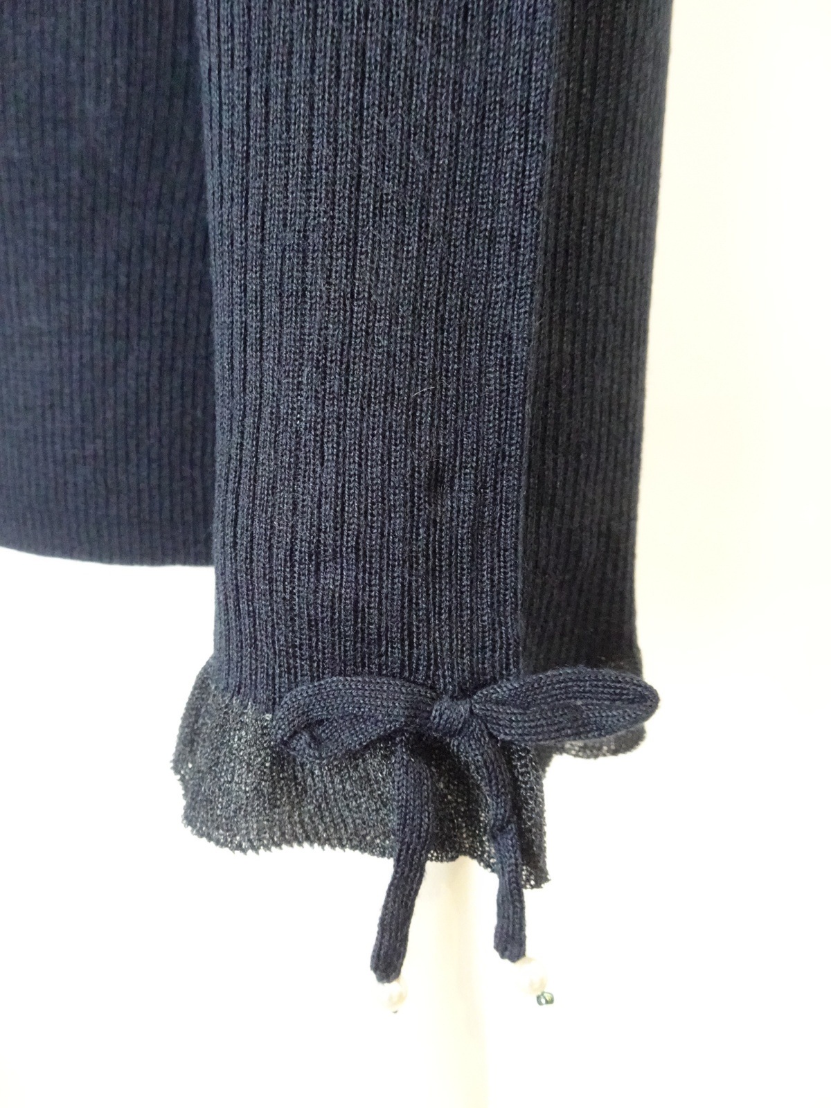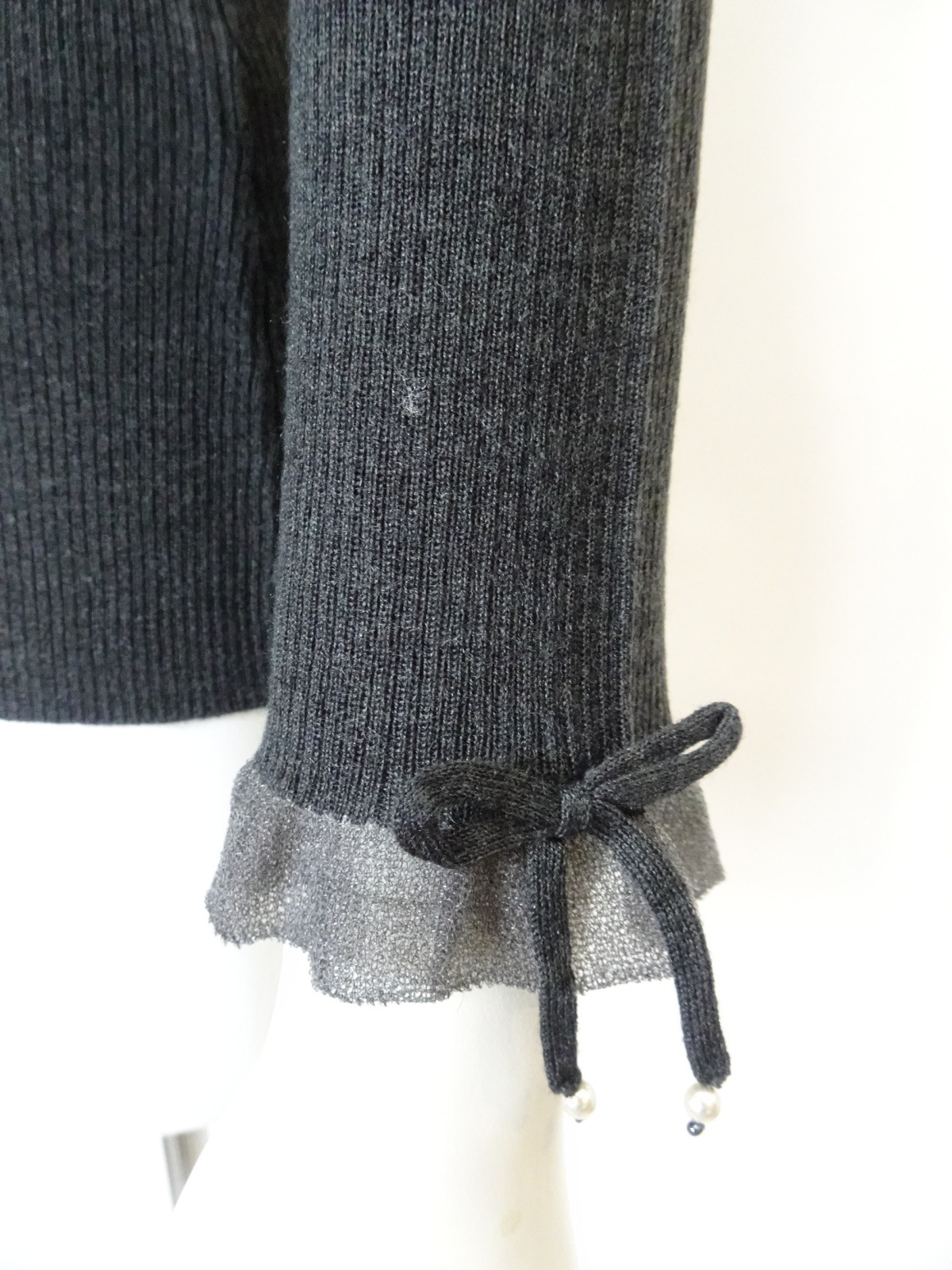 2025年秋冬 コサージュ付 衿・袖先透かしフリルデザインセーター 2521016