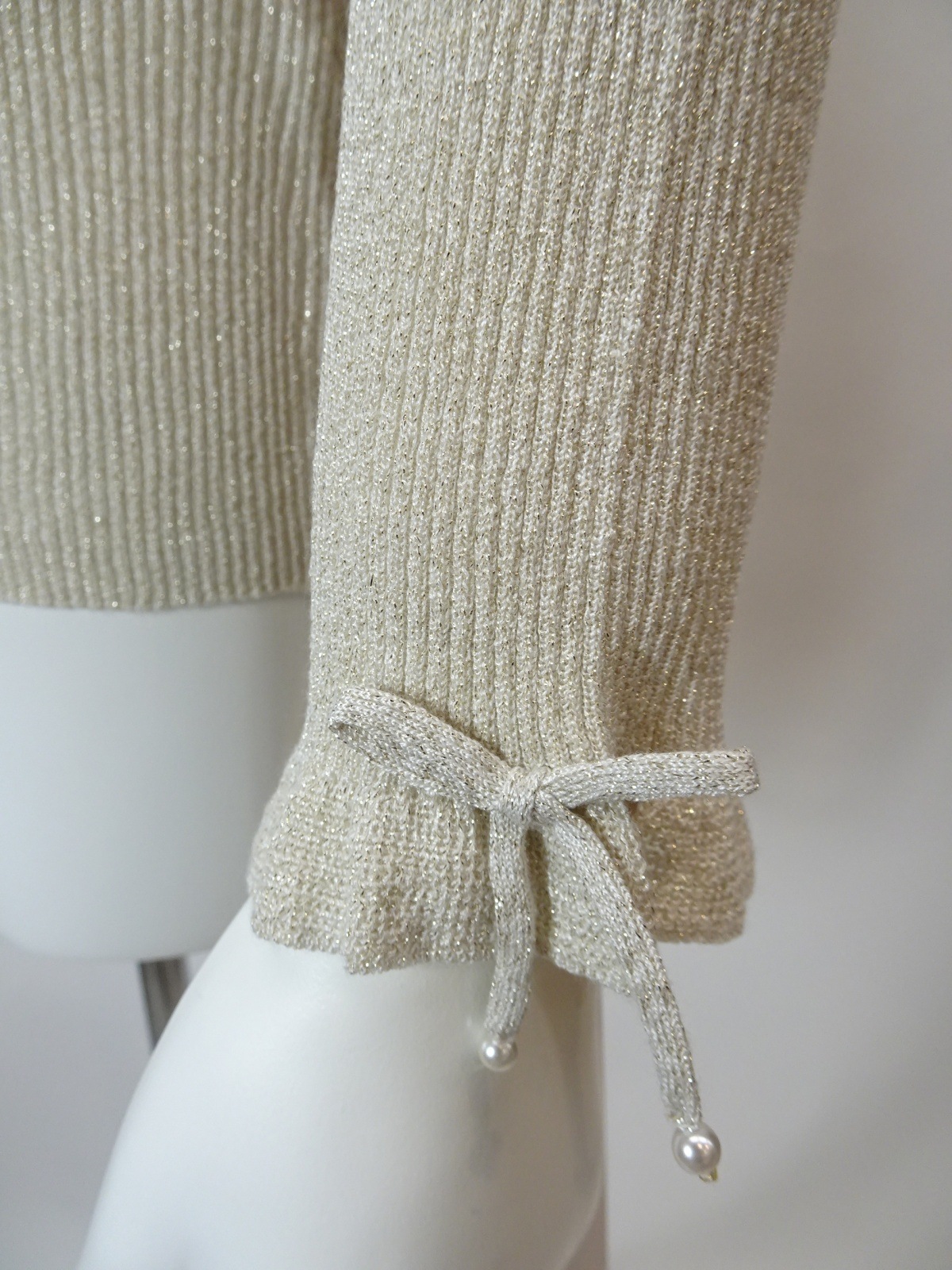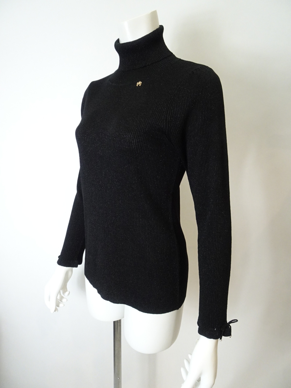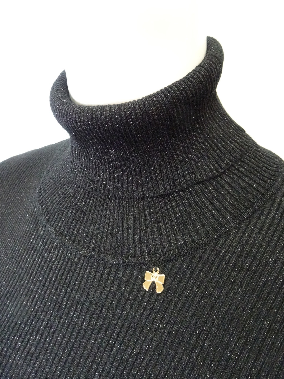 袖先には可愛らしいリボンが施され、女性らしさをプラスしています。このディテールが、普通のタートルネックとは一線を画す魅力を生み出します。インナーにも活用できるため、重ね着スタイルが楽しめるのもうれしいポイント