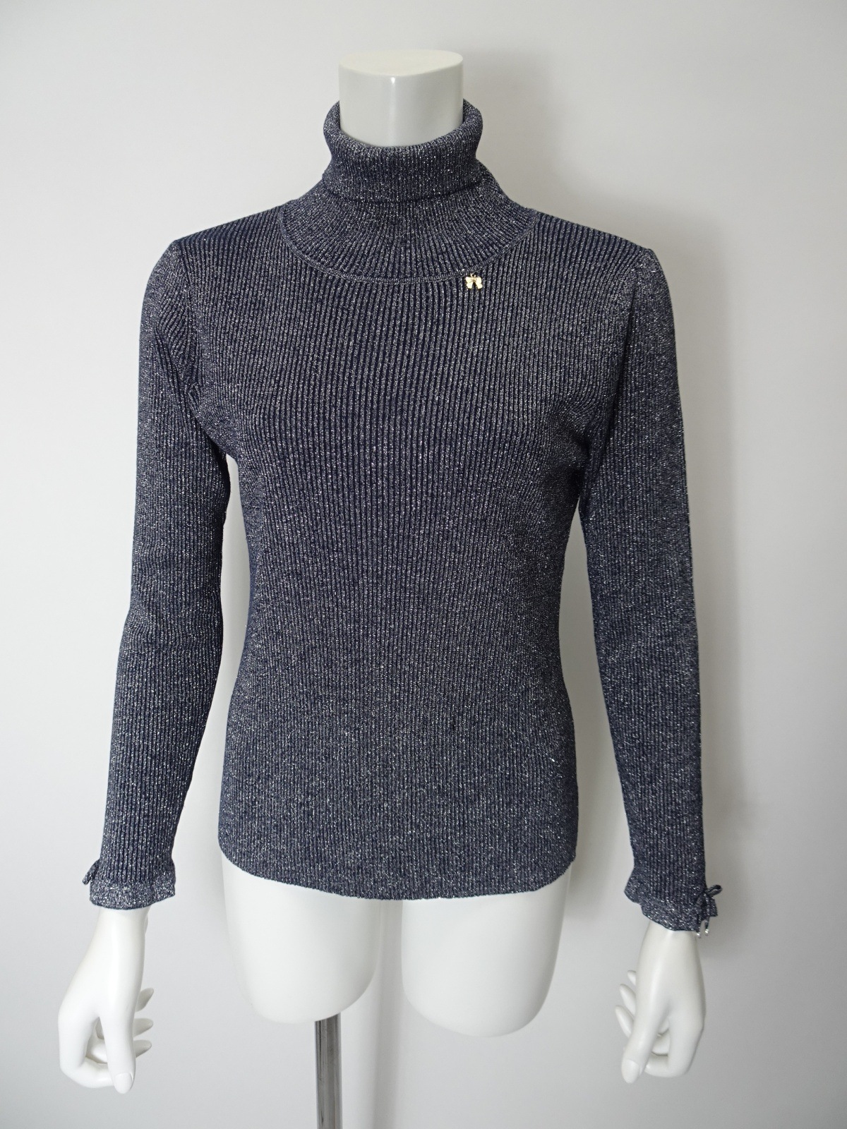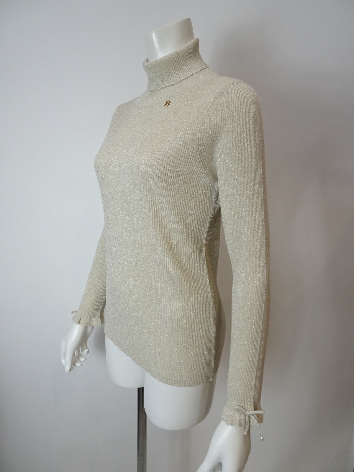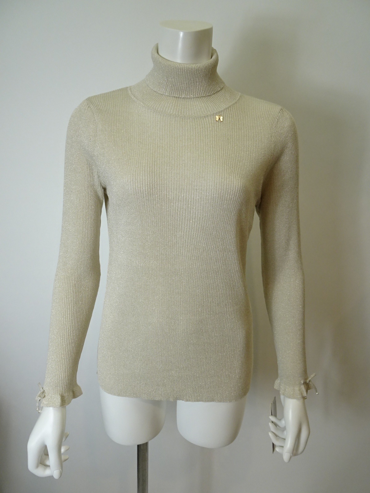 袖先には可愛らしいリボンが施され、女性らしさをプラスしています。このディテールが、普通のタートルネックとは一線を画す魅力を生み出します。インナーにも活用できるため、重ね着スタイルが楽しめるのもうれしいポイント