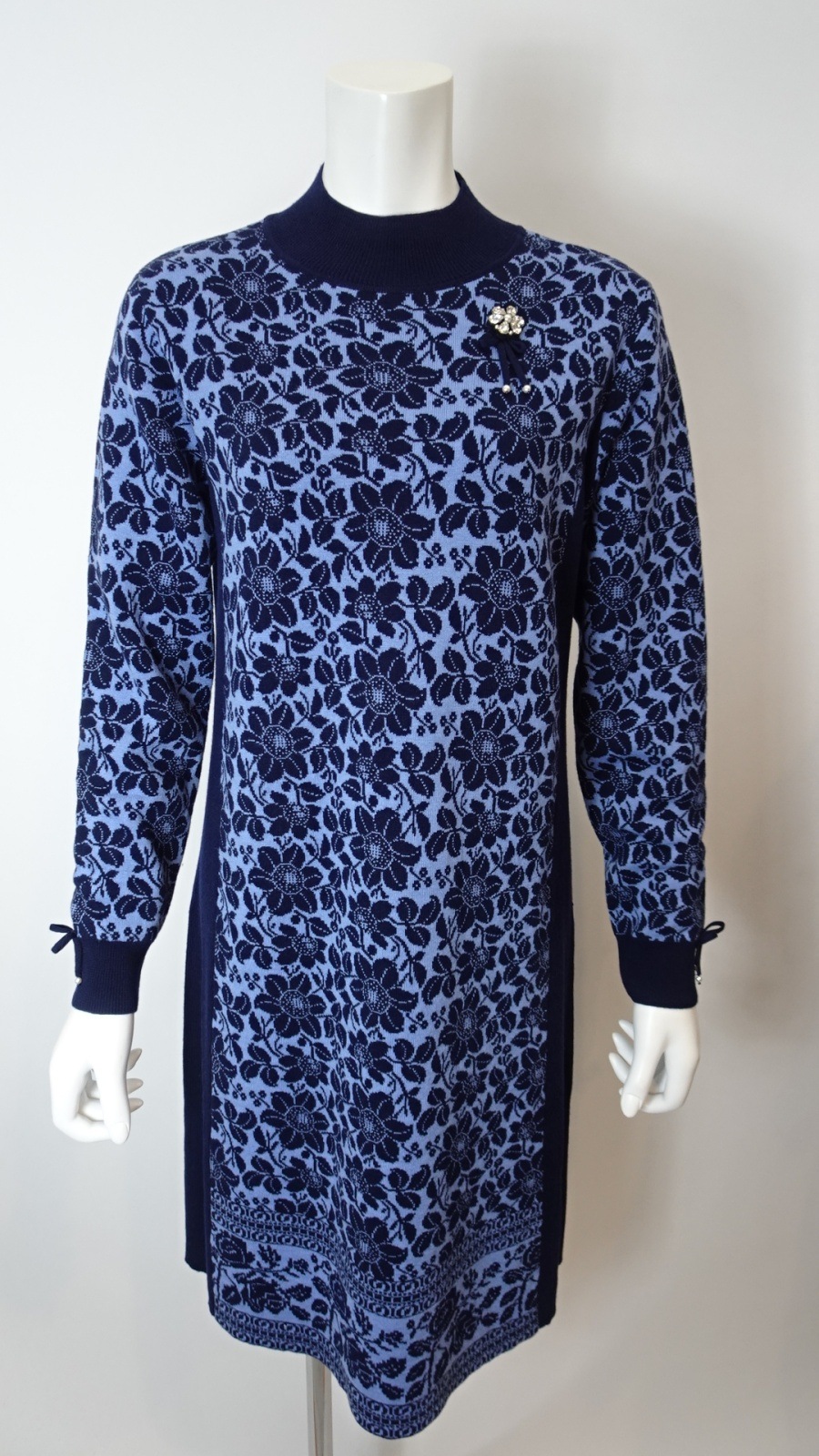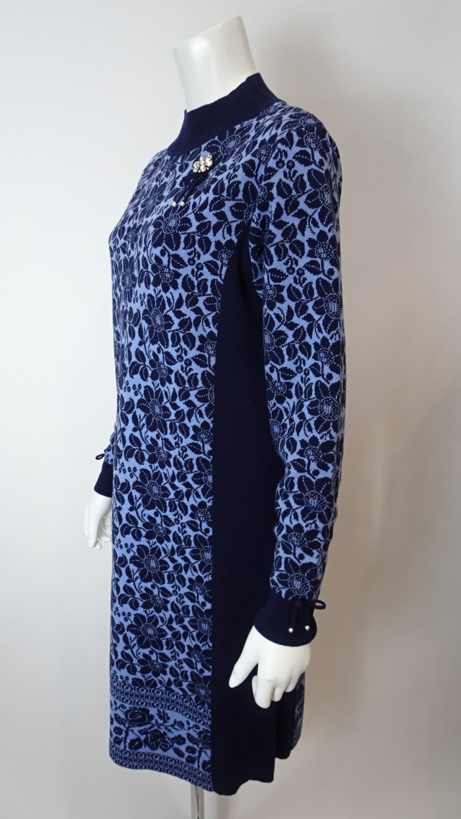 デザインは女性らしいシルエットを際立たせるために考えられており、脇部分は無地仕立てになっています。これにより、視覚的なアクセントが生まれつつも、安心感のあるスタイルを実現。