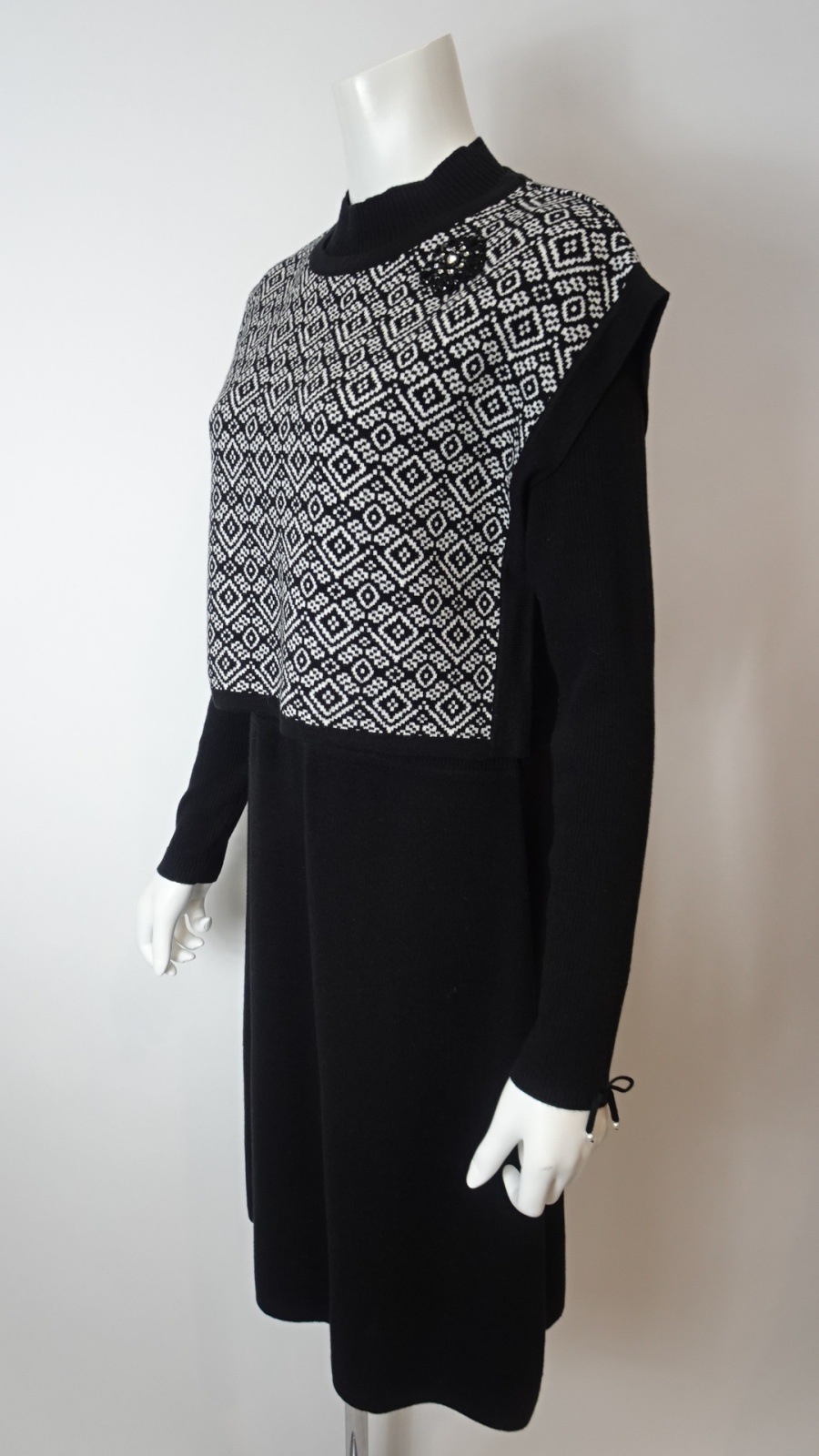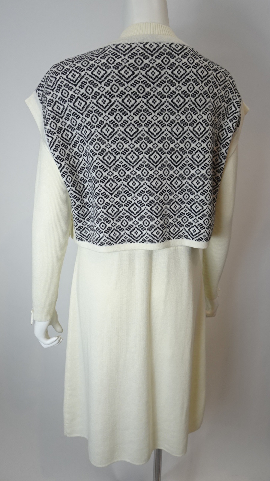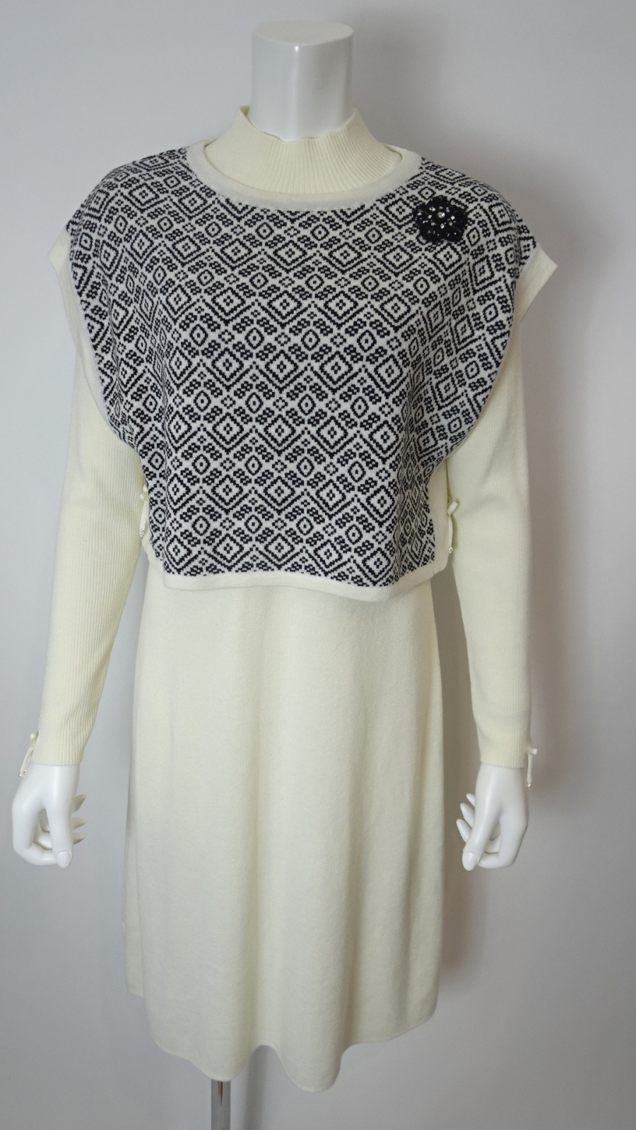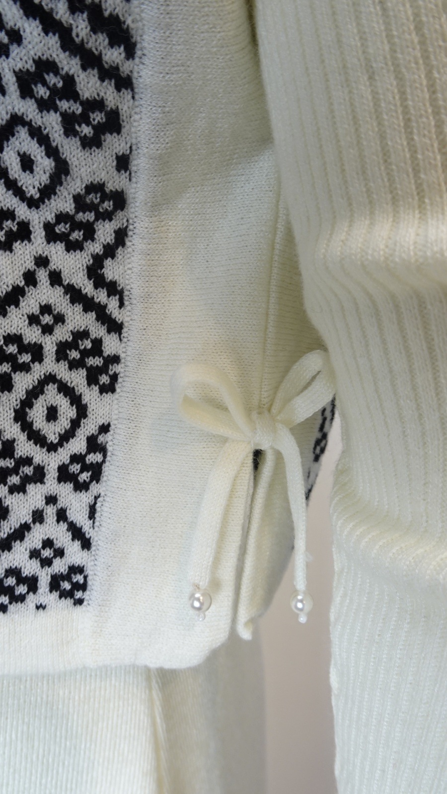 デイリーユースから特別な日のお出かけまで、シーンを選ばず活躍すること間違いなしです。このジャガード編みニットベストと無地ニットOPのアンサンブルでエレガントな装いに。