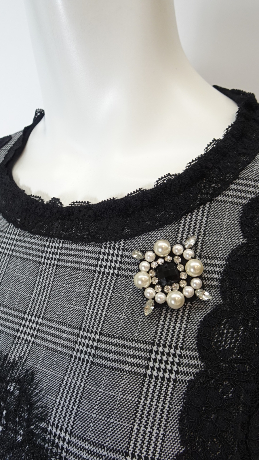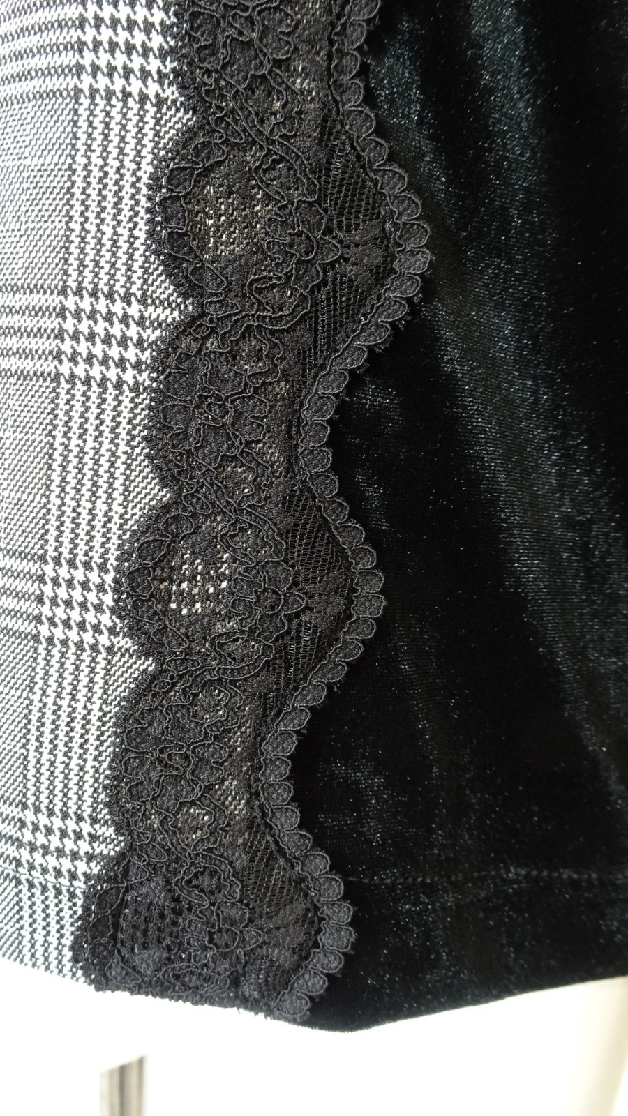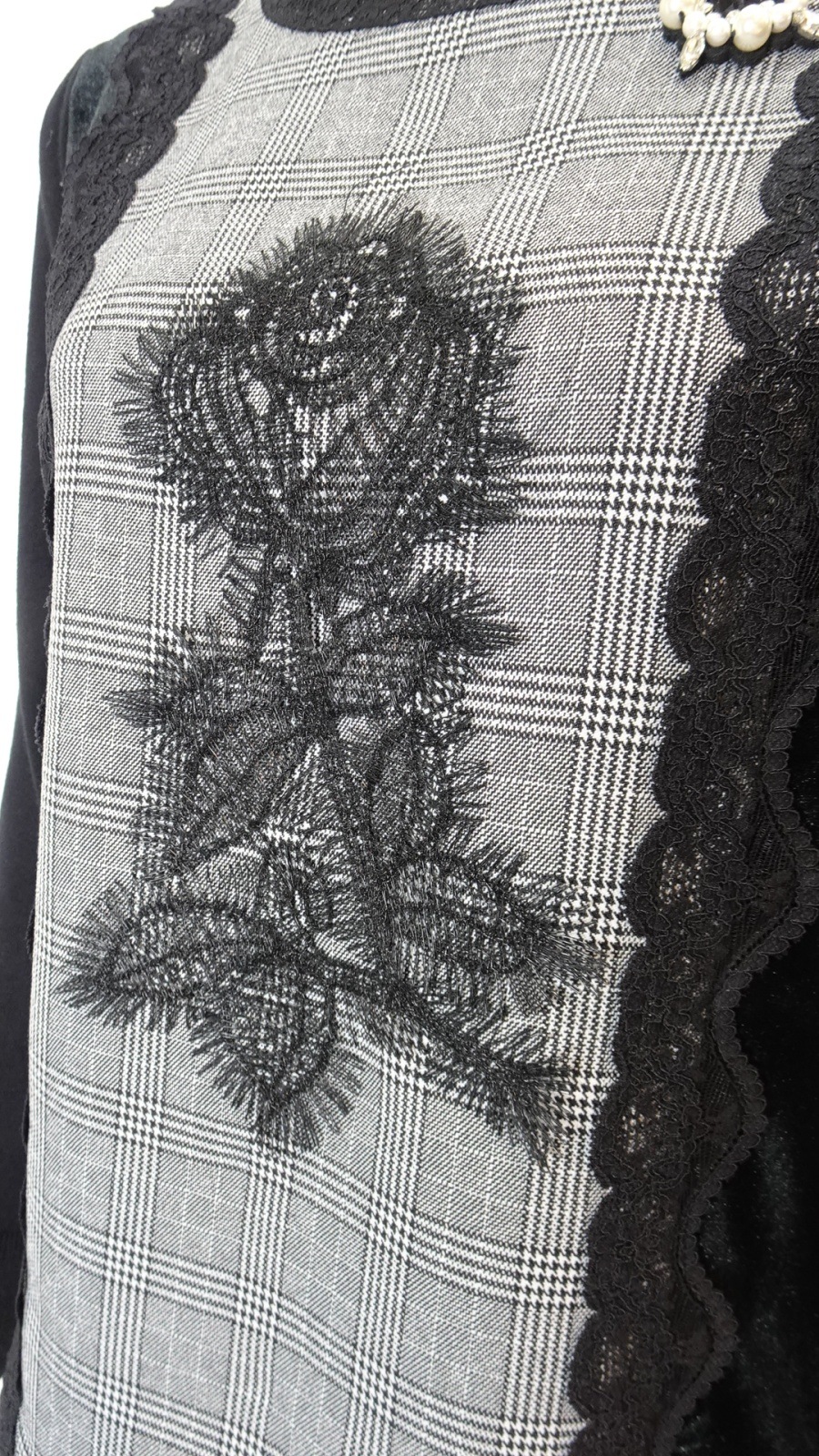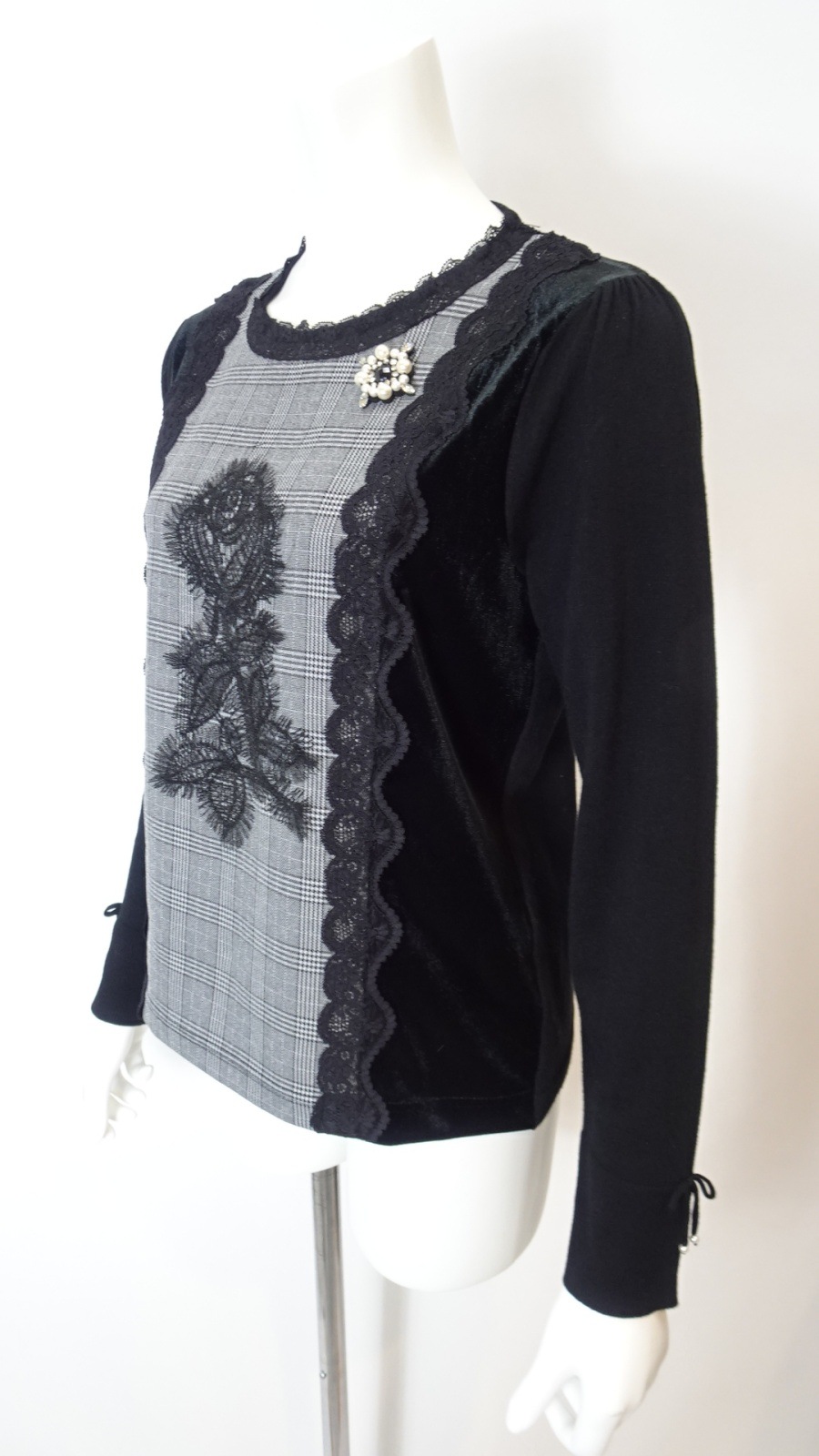 2025年秋冬 ベロア袖×チェック柄 胸元レース使いセーター 2521029