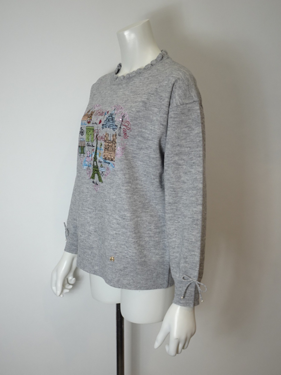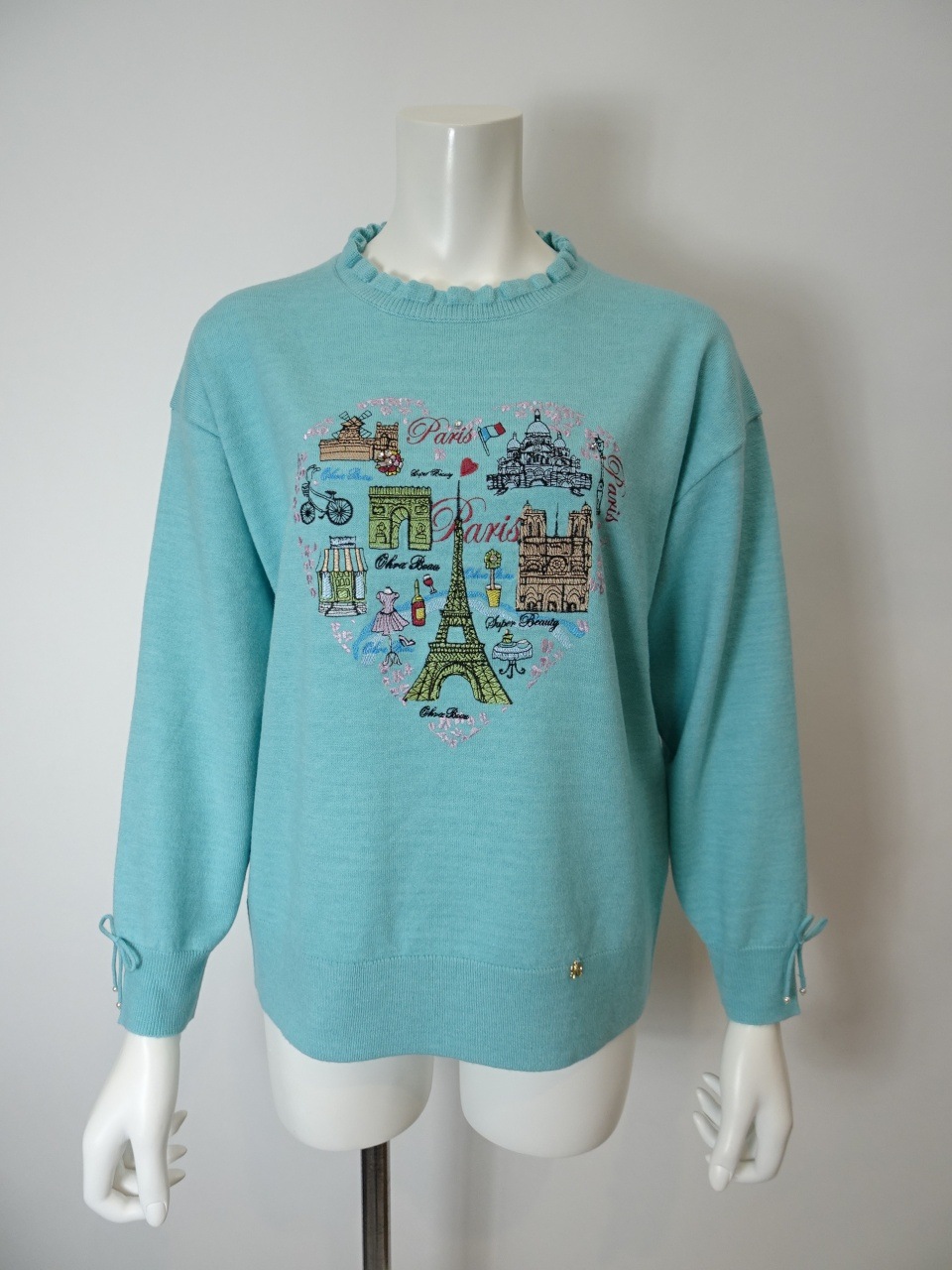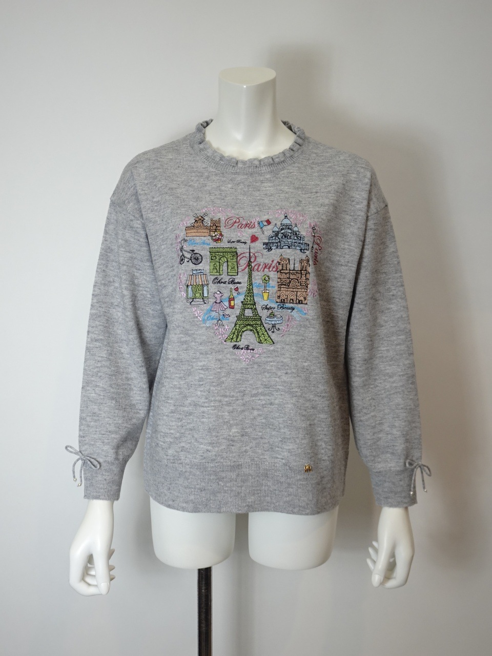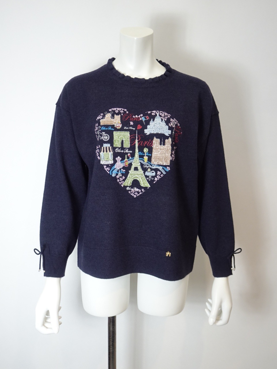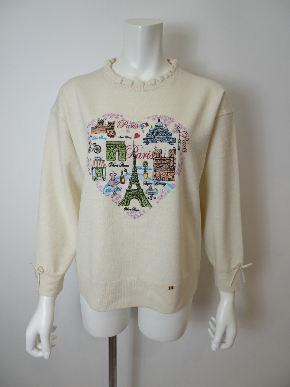 胸元Paris刺しゅう入りフリルデザインセーターは、まるでパリの街角を歩いているような気分にさせてくれる一品です。華やかなハート型刺しゅうが特徴で、心をつかむ可愛らしさを演出します。女性らしさを引き立てるデザインが、おしゃれで特別な場面にもぴったりです。