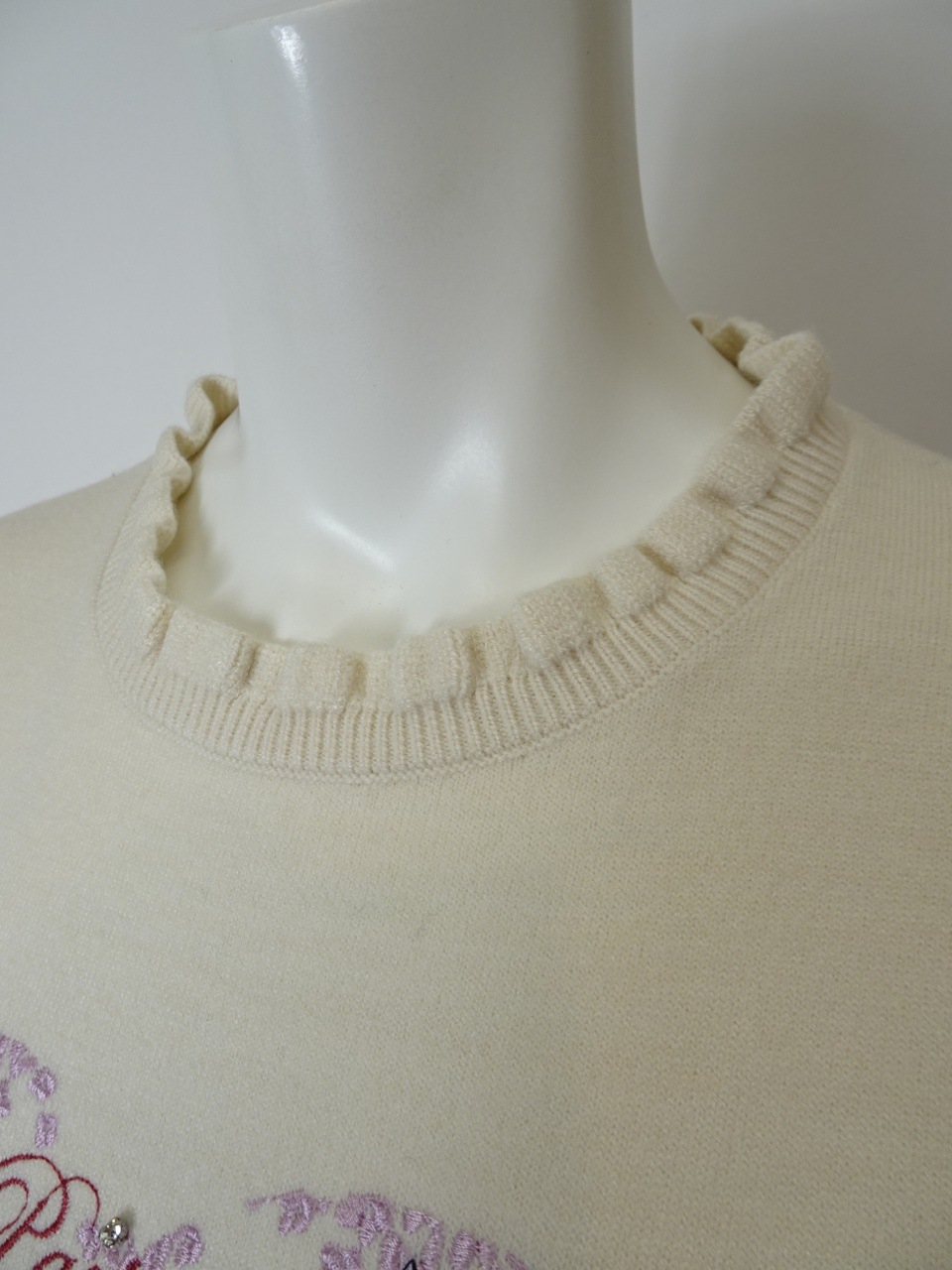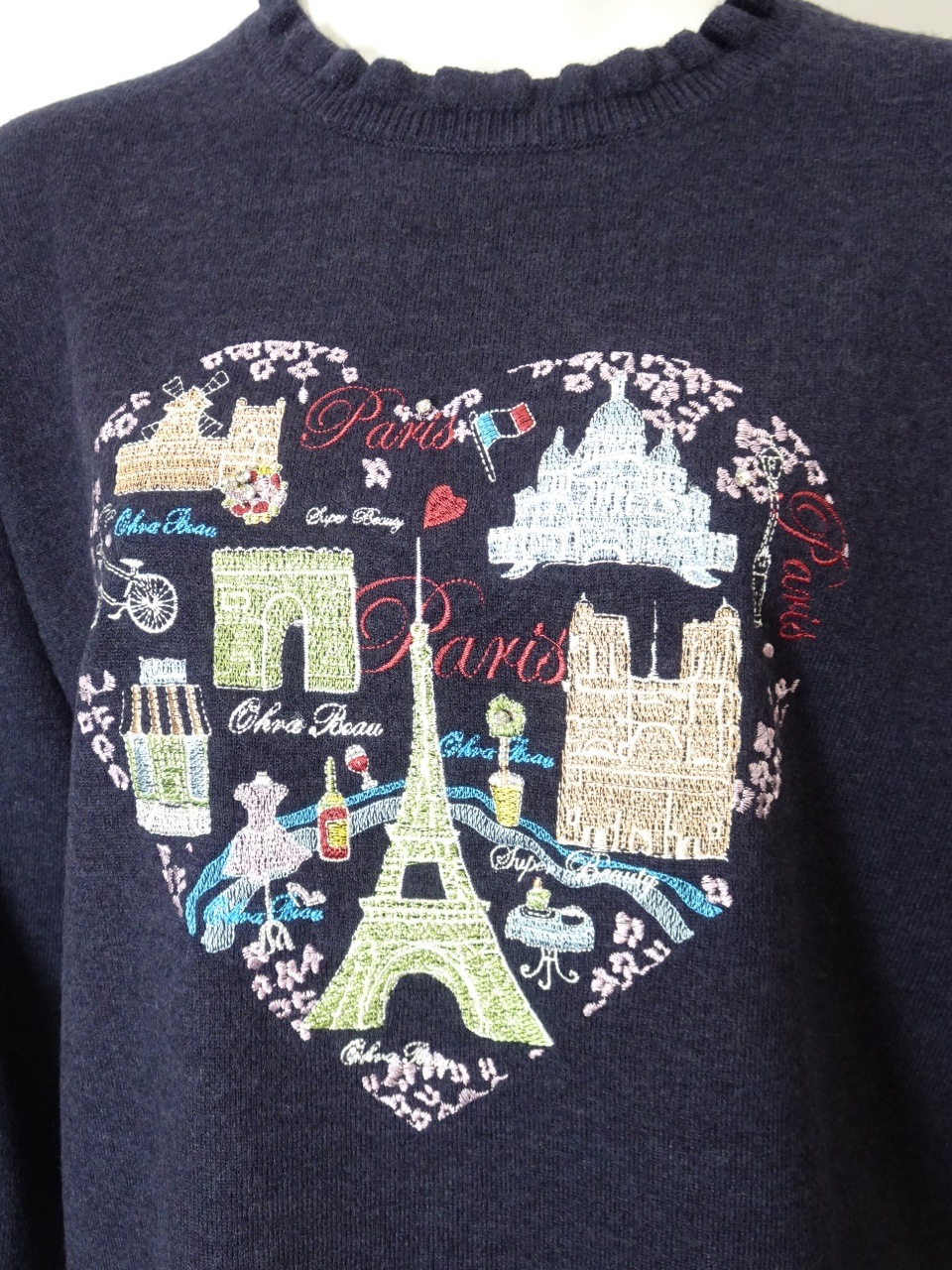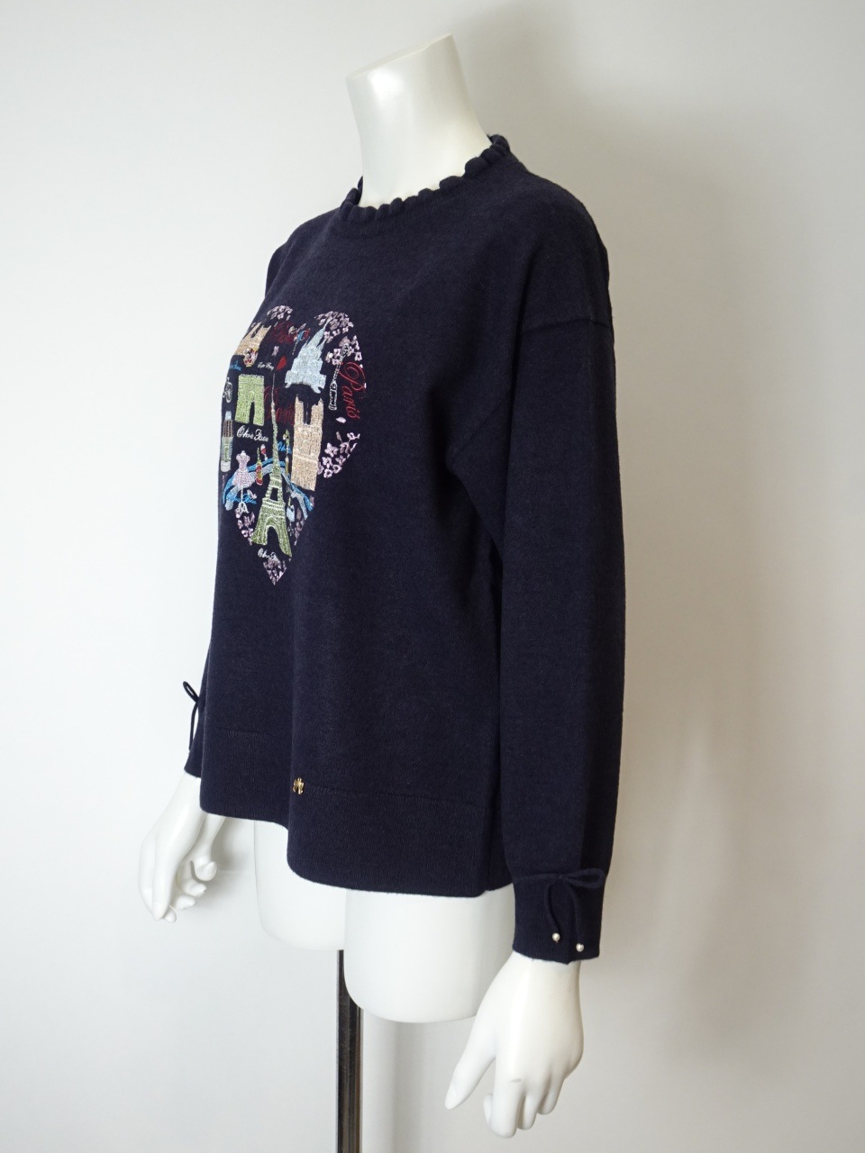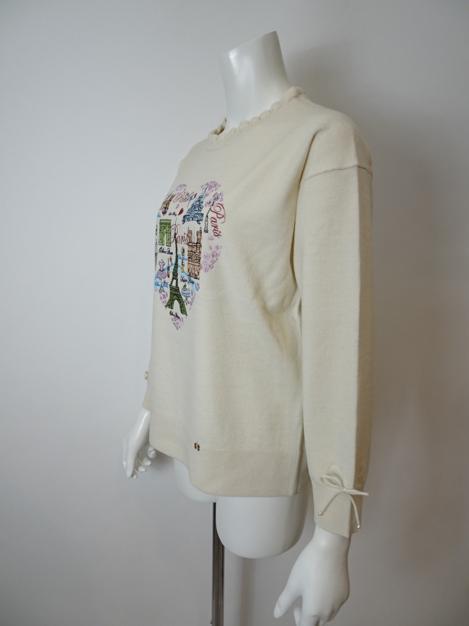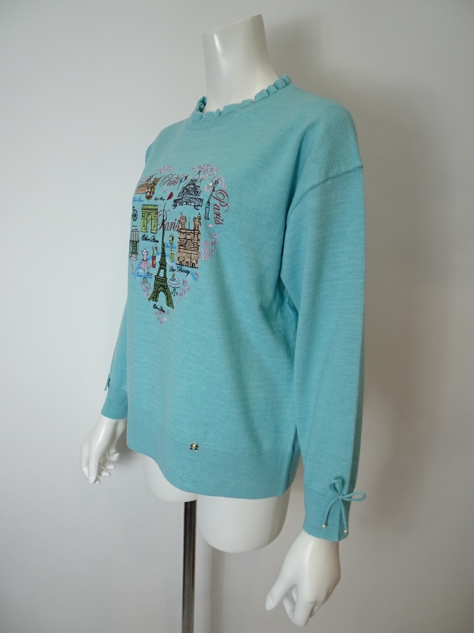 胸元Paris刺しゅう入りフリルデザインセーターは、まるでパリの街角を歩いているような気分にさせてくれる一品です。華やかなハート型刺しゅうが特徴で、心をつかむ可愛らしさを演出します。女性らしさを引き立てるデザインが、おしゃれで特別な場面にもぴったりです。