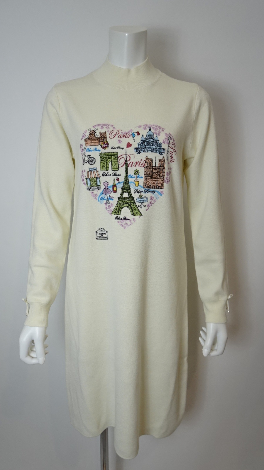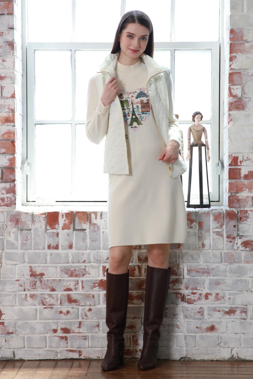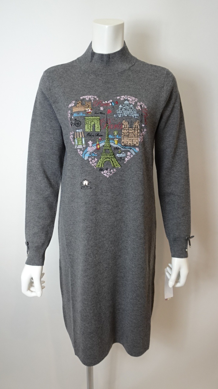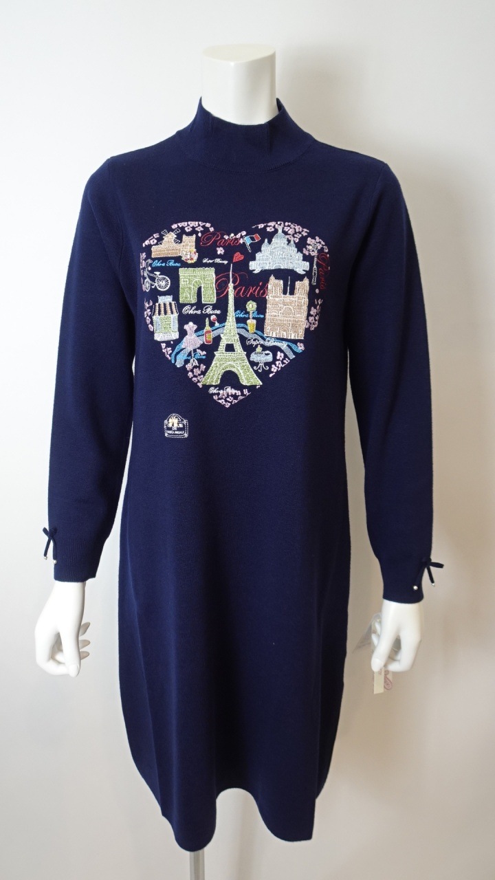 2025年秋冬 胸元Paris刺しゅう入りハイネックニットワンピース 2521033