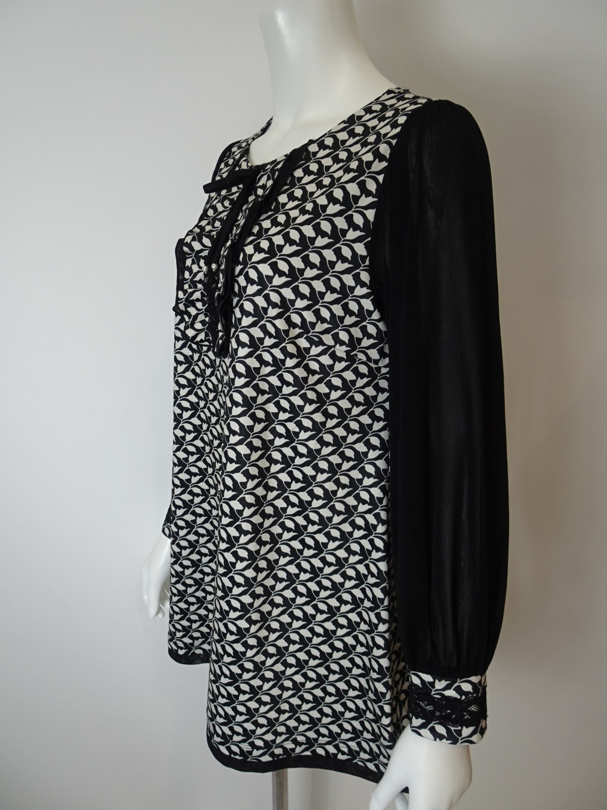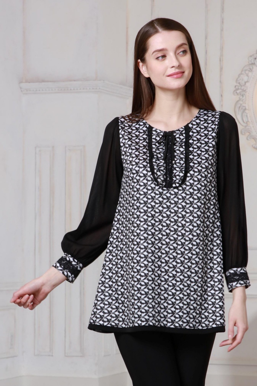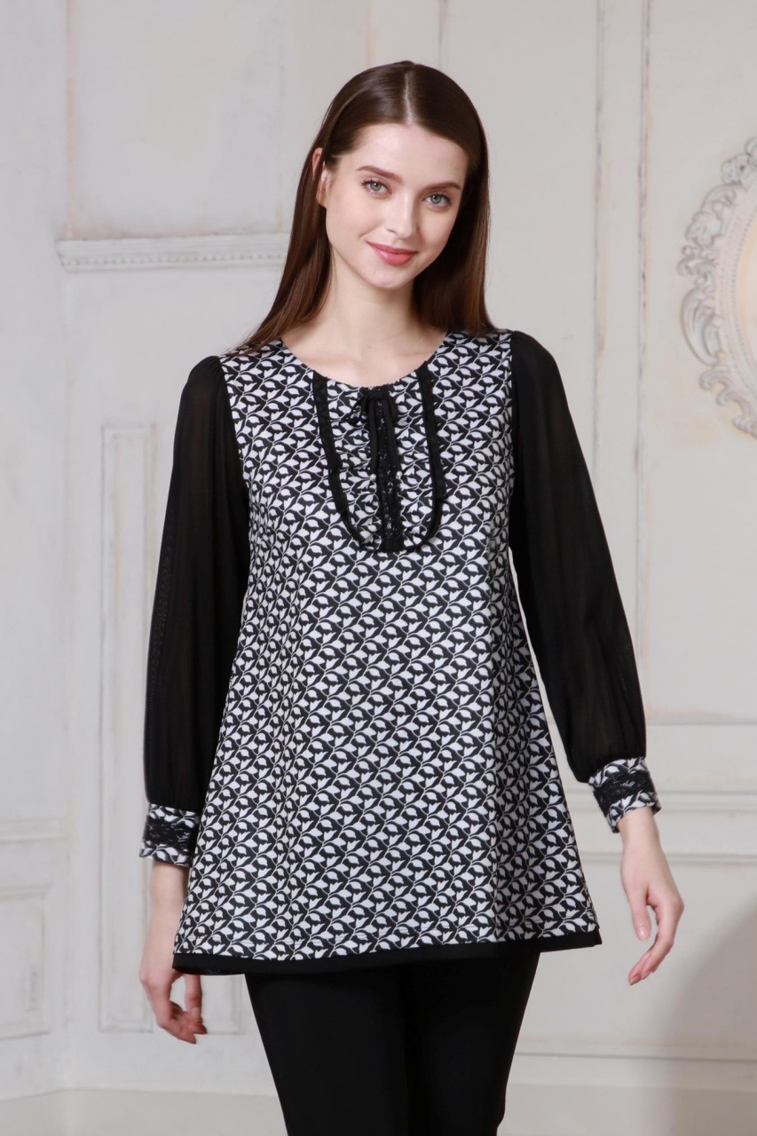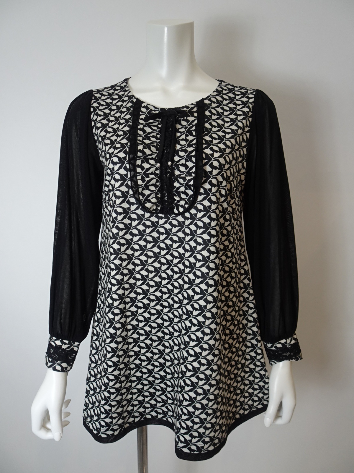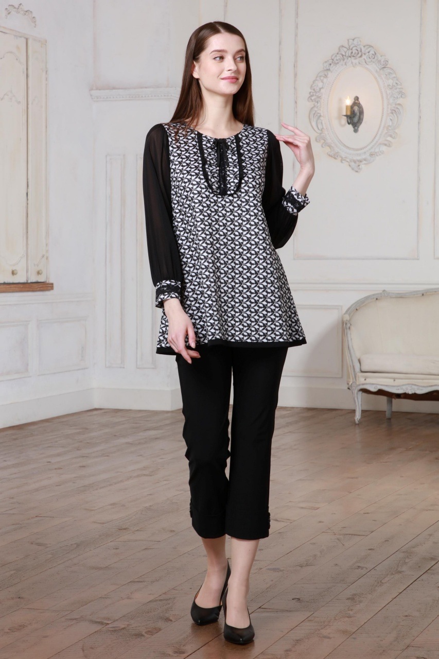 2025年秋冬 袖パワーネット素材 モノトーン柄チュニックカットソー 2522005