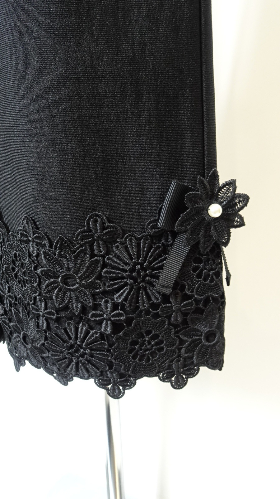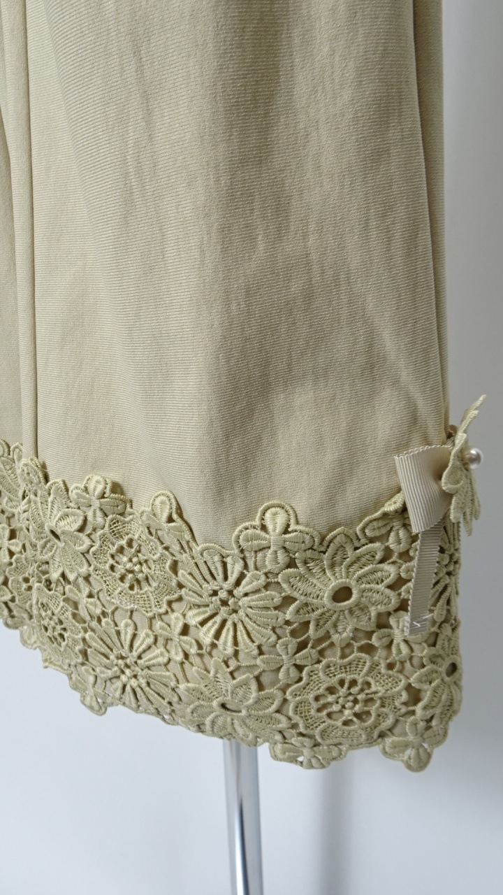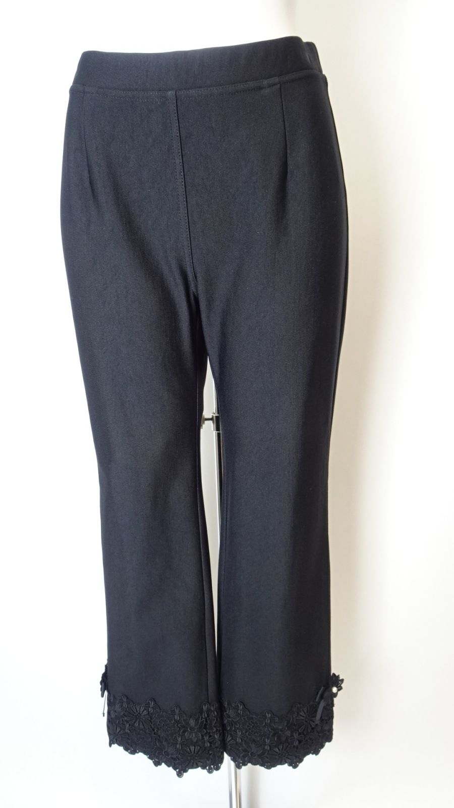 さらに、裾サイドに施された華やかな花とリボンモチーフが、シンプルながらも女性らしさを引き立てます。デザイン性と機能性を両立したこちらのパンツは、どんなトップスとも相性抜群です。