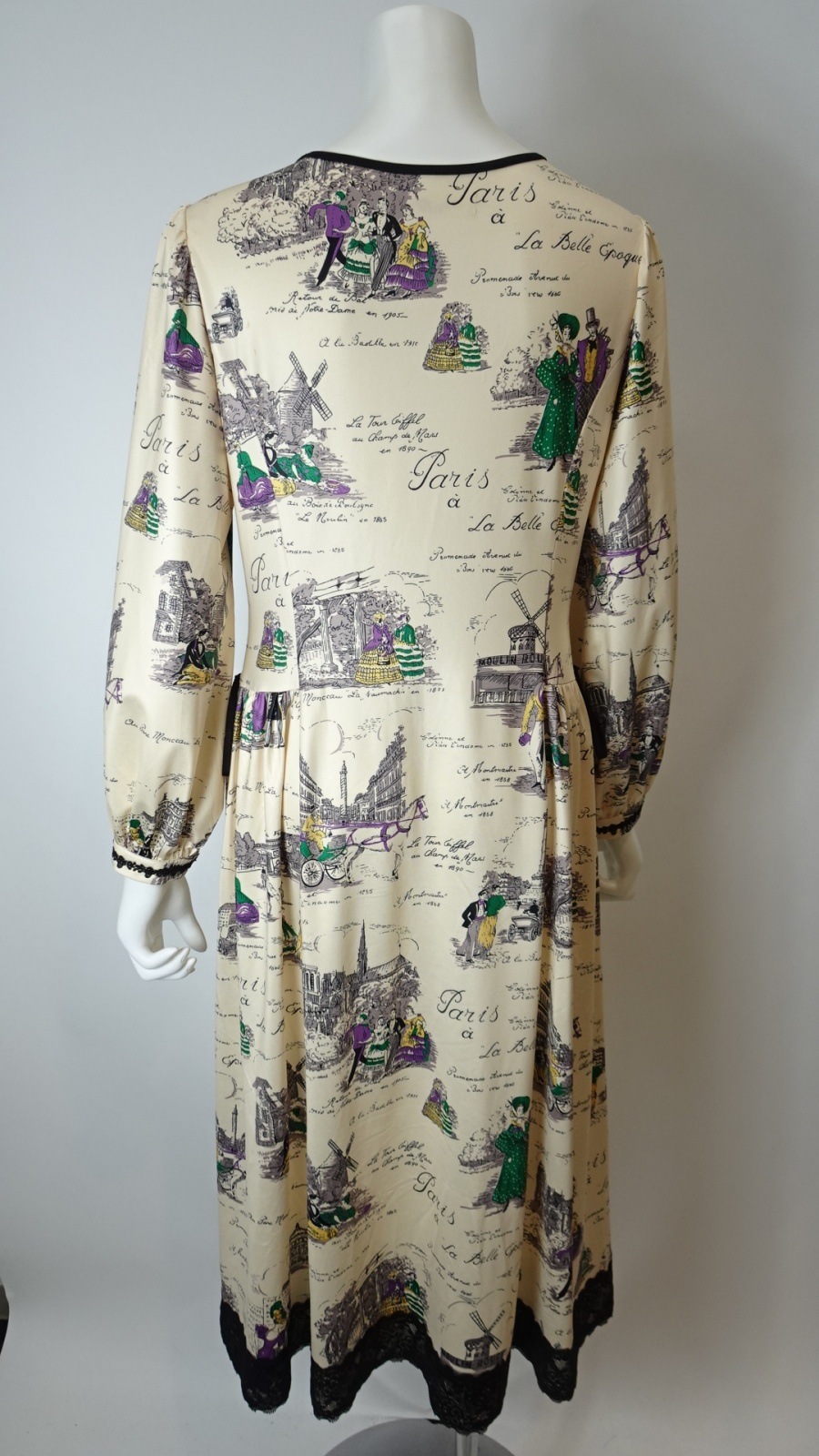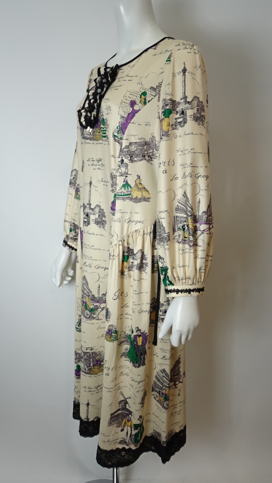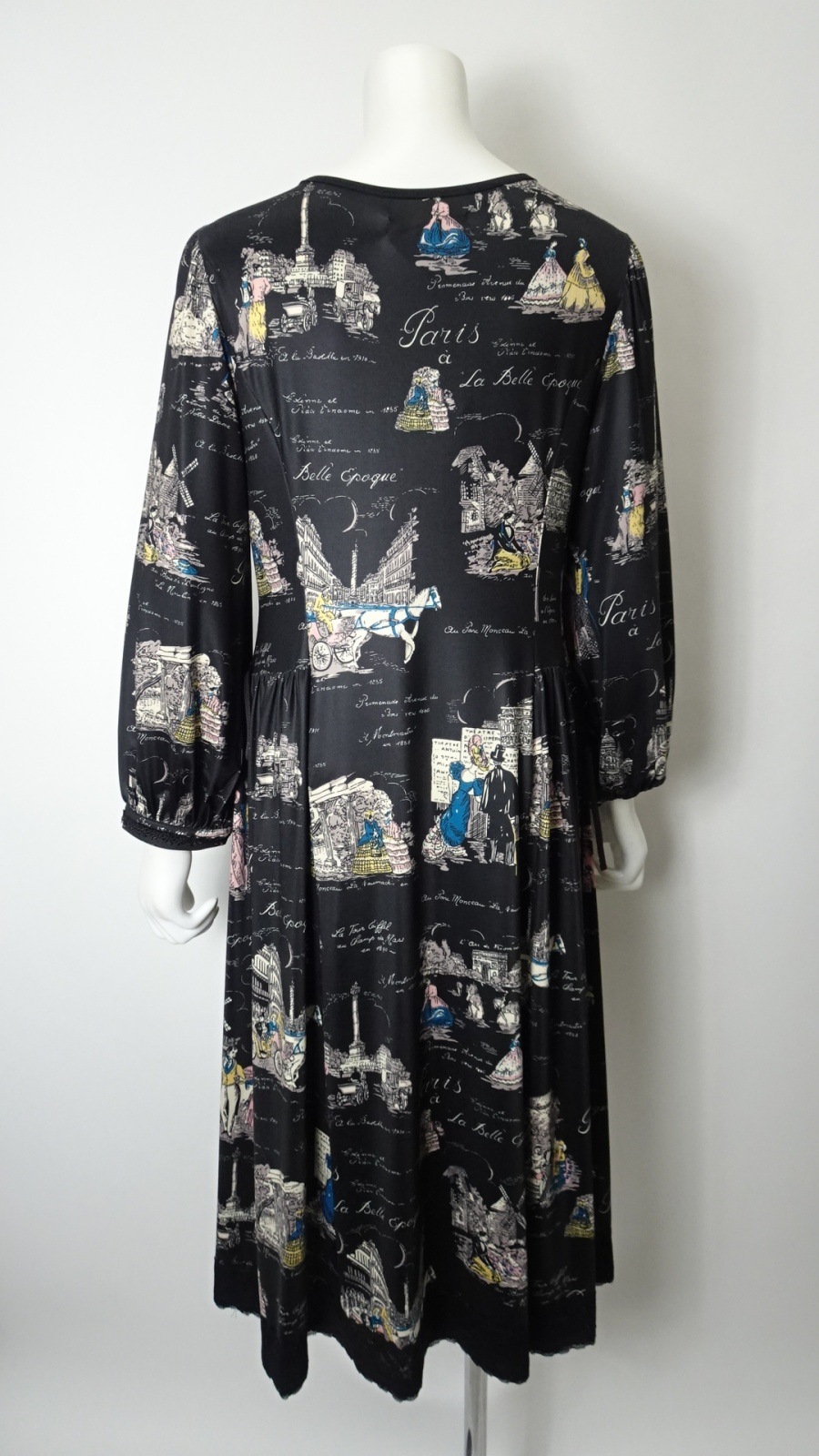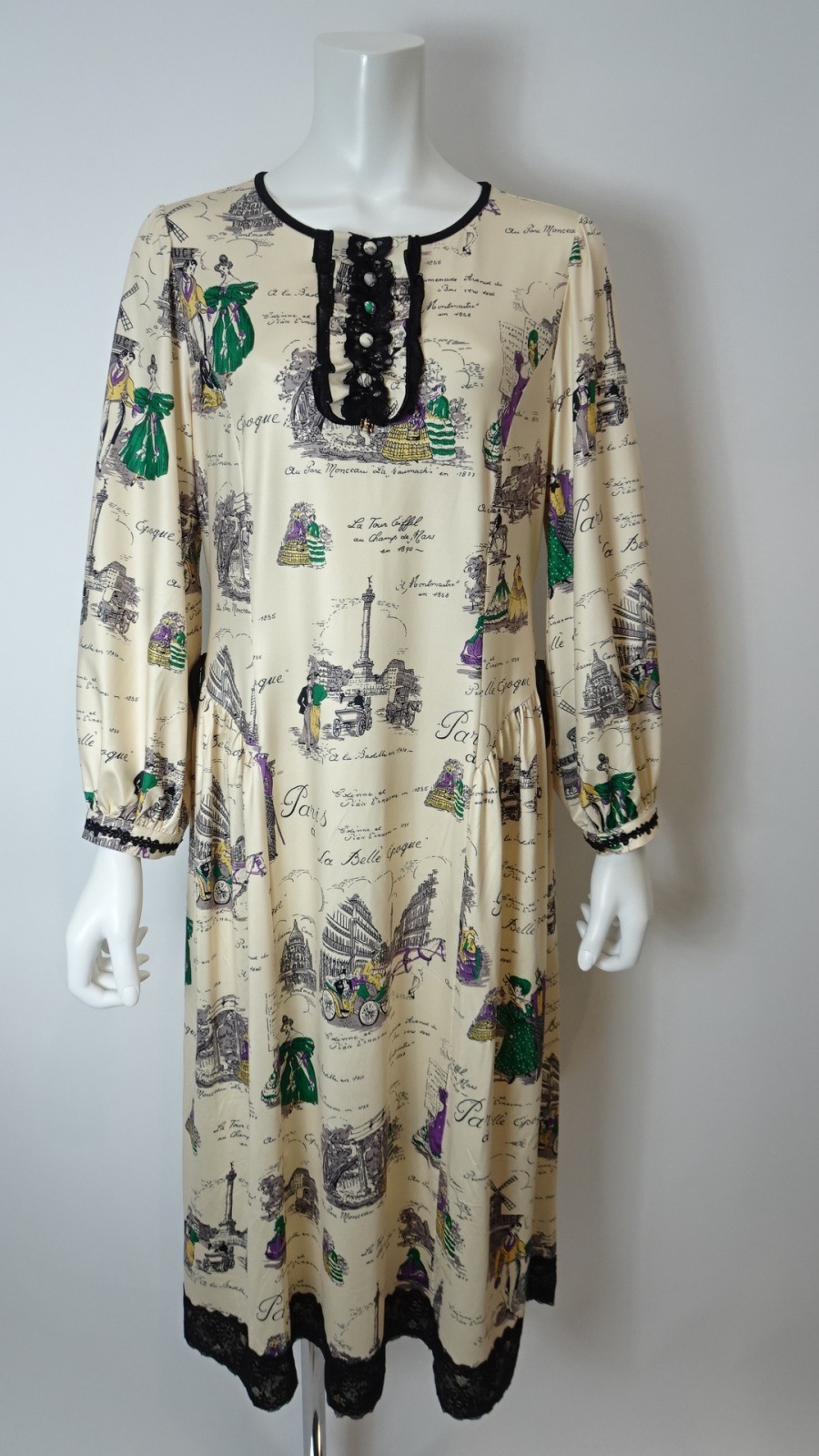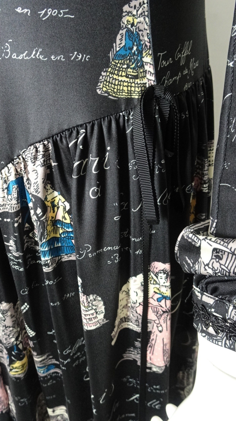 美しい「胸元×裾レースプリントワンピース」は、洗練されたデザインであなたの魅力を引き立てます。胸元には優雅なフリルとビジューが施され、華やかさをプラス。また、袖先にはギャザーデザインが施され、女性らしいシルエットを演出します。クラシック柄のParisをイメージしたプリントです。