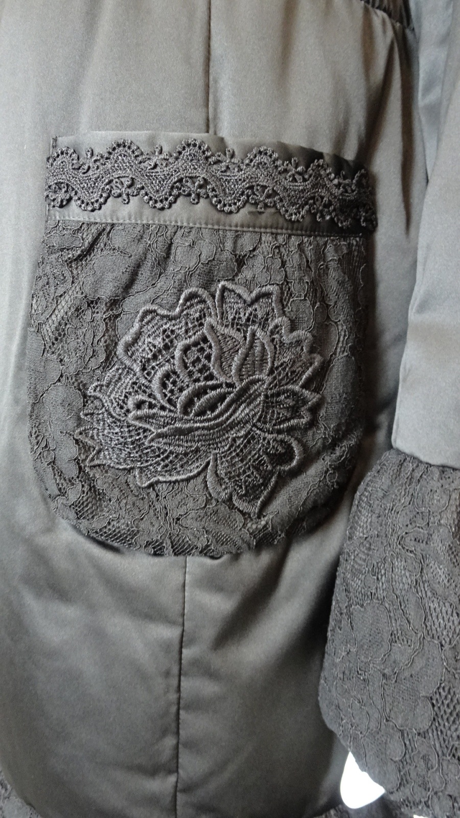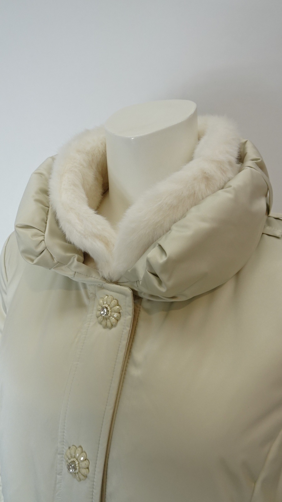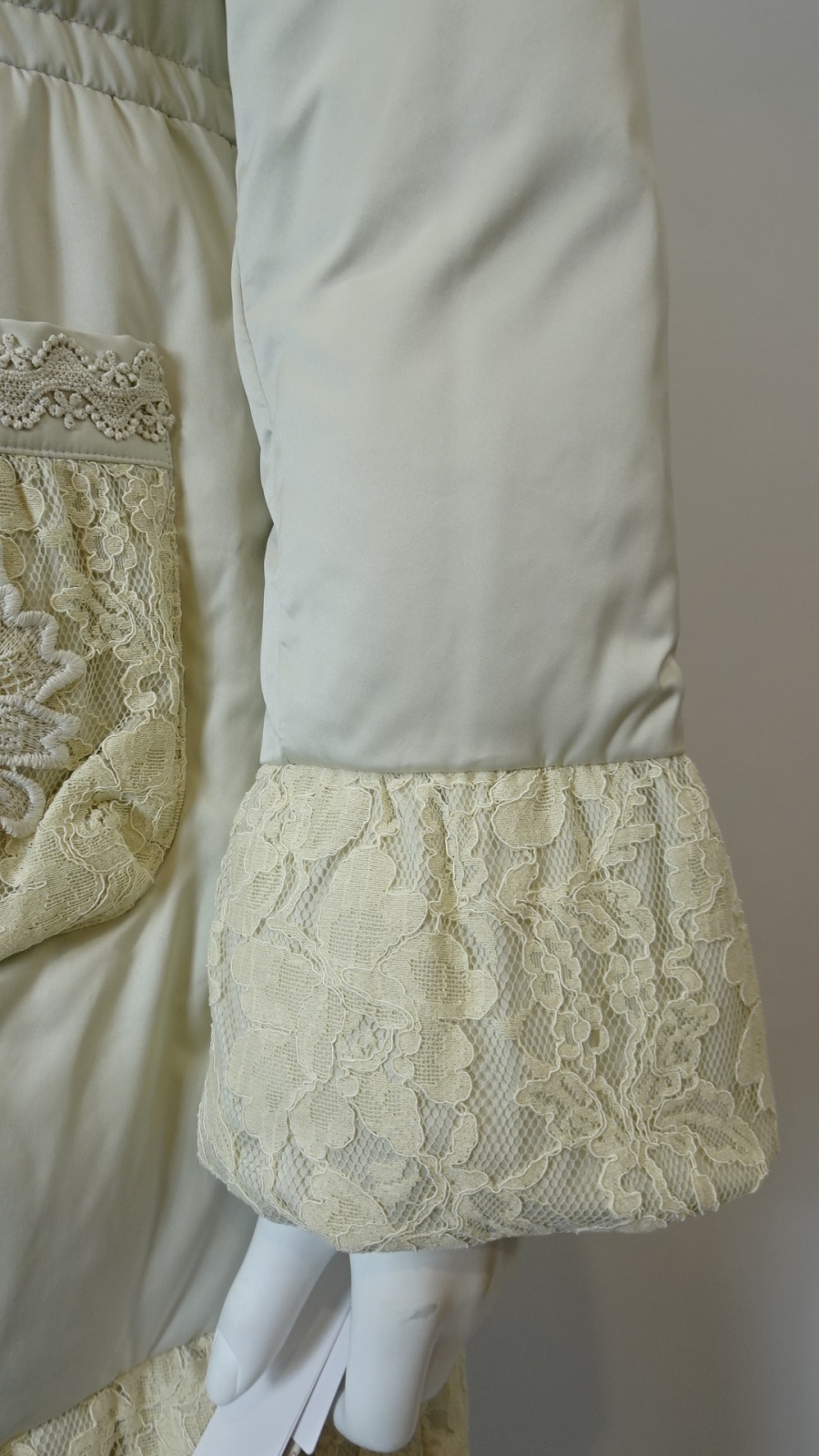 裾・袖・ポケットに繊細なレースをあしらい、軽やかな切替が冬の装いに華やぎを添えるエレガントなダウンコート。フロントには花のようなフォルムのボタンを並べ、さりげない可愛らしさをプラスしました。襟元にはふんわりとしたボアを重ね、暖かさと上品さを両立し、シーズンムードを演出。まさに大人の女性にふさわしい、洗練された一着です。ディテールまでこだわったデザインで、普段使いから特別なシーンまで幅広く着用いただけます。