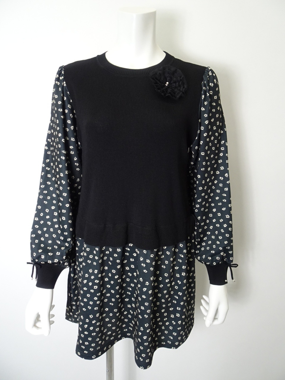 伸縮性ある生地にモノトーン花柄が施されており、心地よい着心地を実現しています。カジュアルながらもエレガントな雰囲気を持つこのチュニックセーターで、普段のスタイルを一新しましょう。