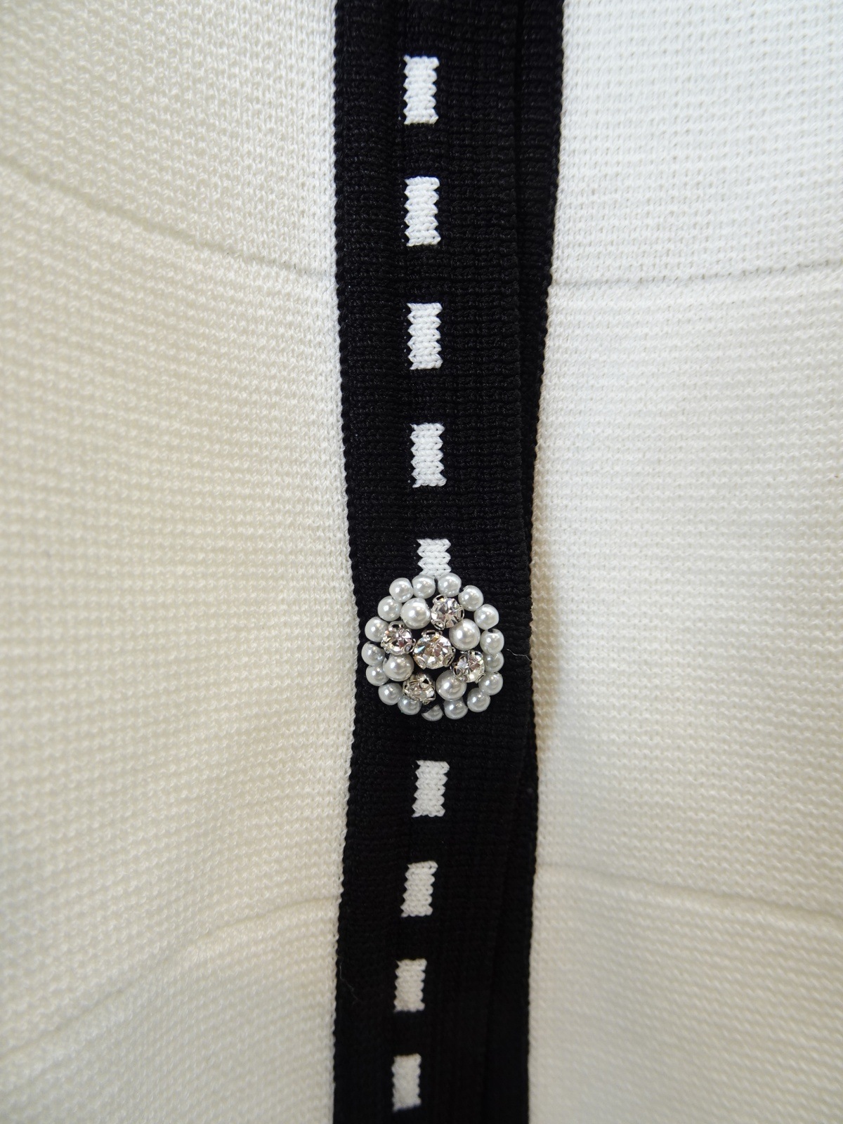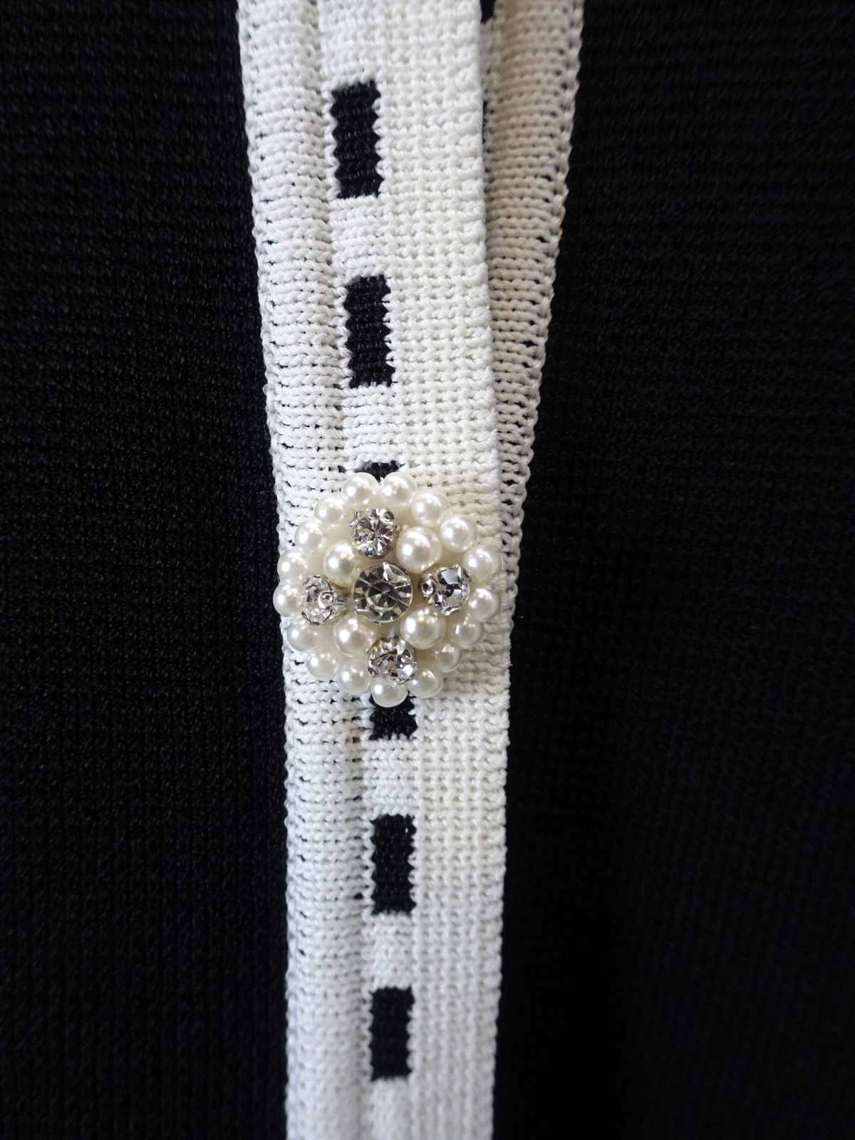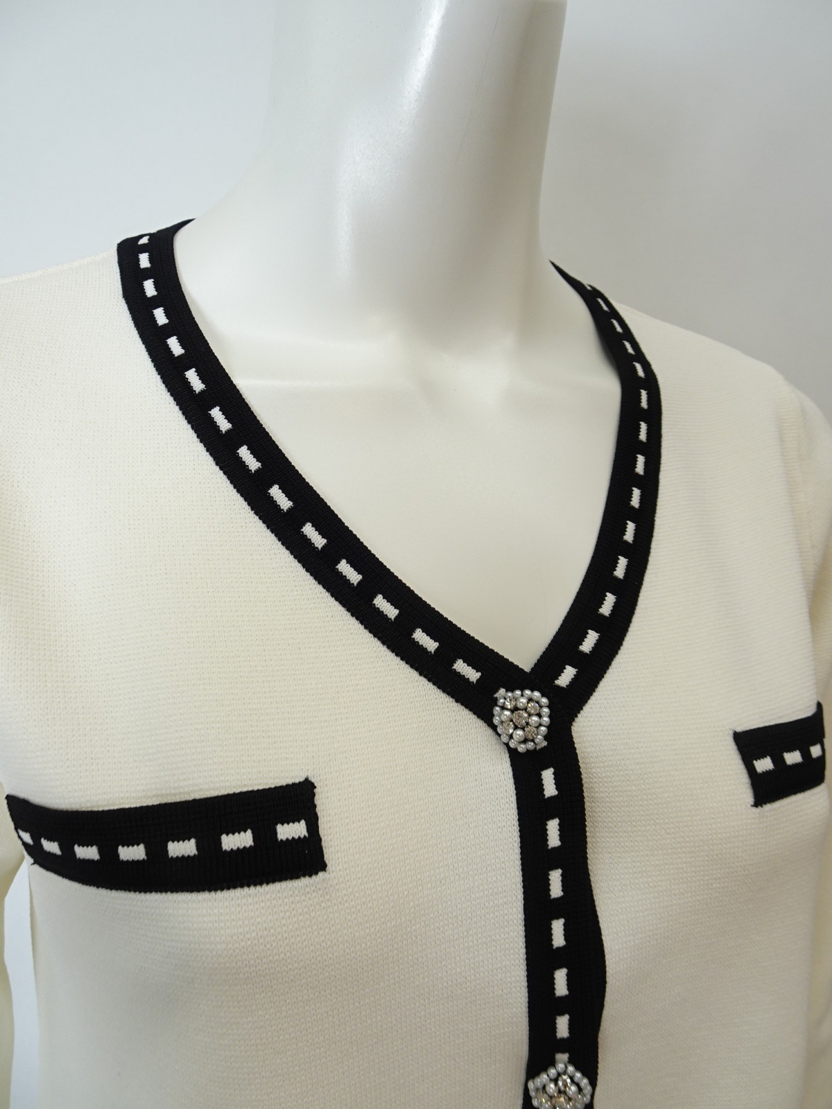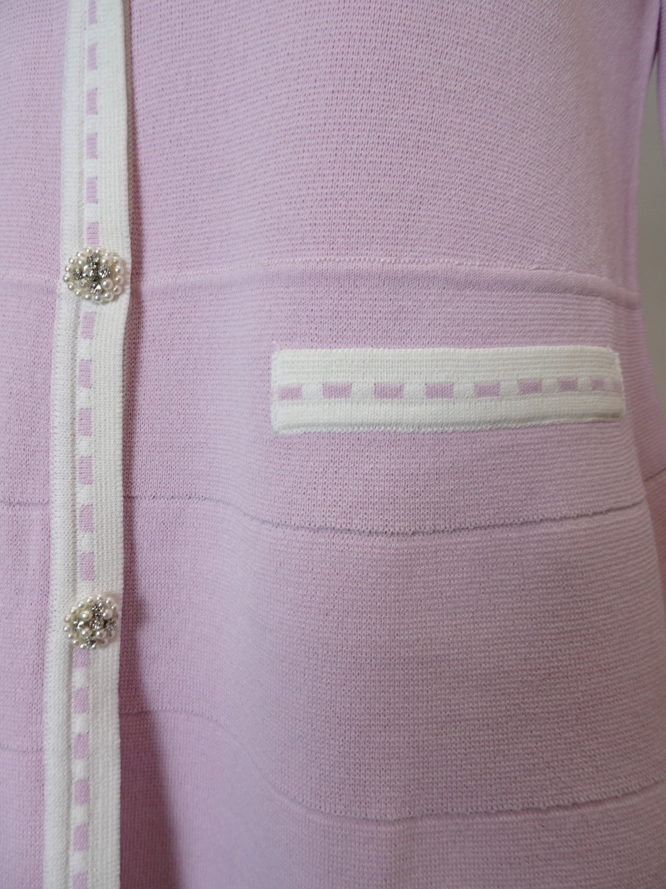 フロントに並ぶパールビジューのボタンが、クラシカルで華やかな印象をプラスします。