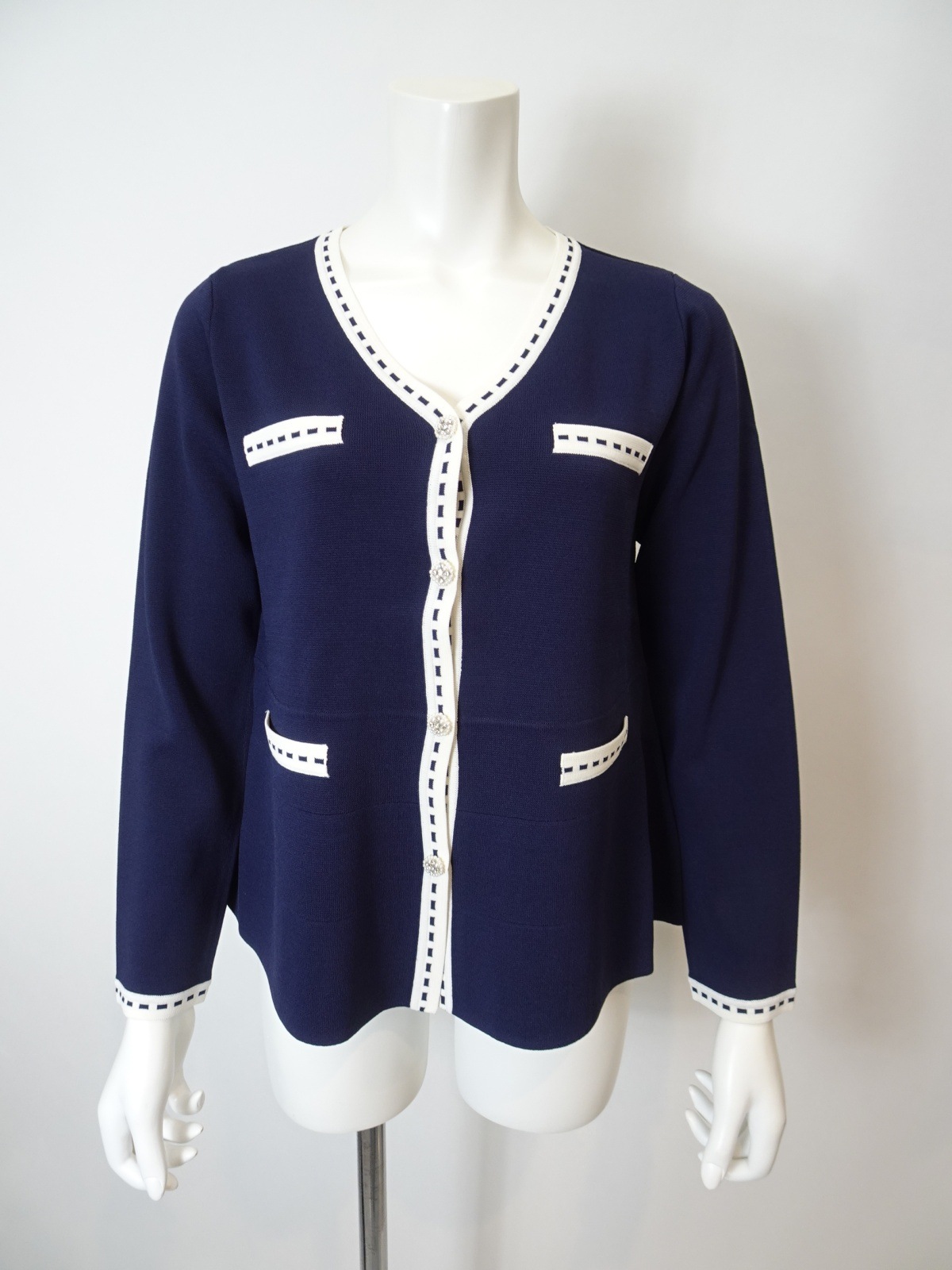 人気のパイピングステッチが魅力のカーディガンです。