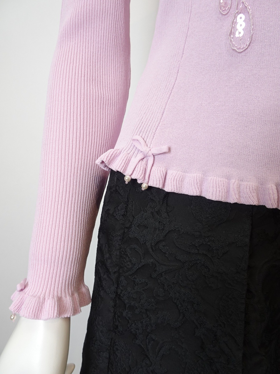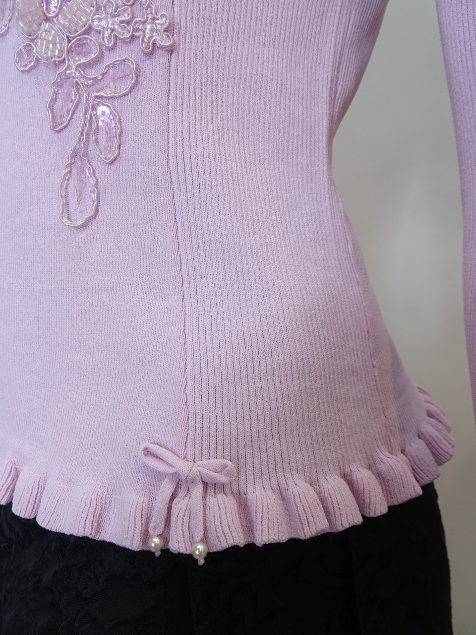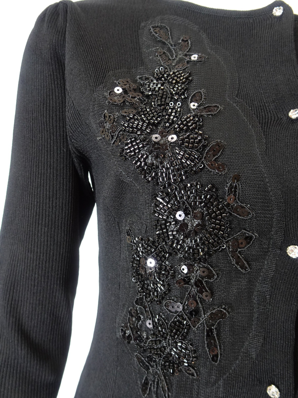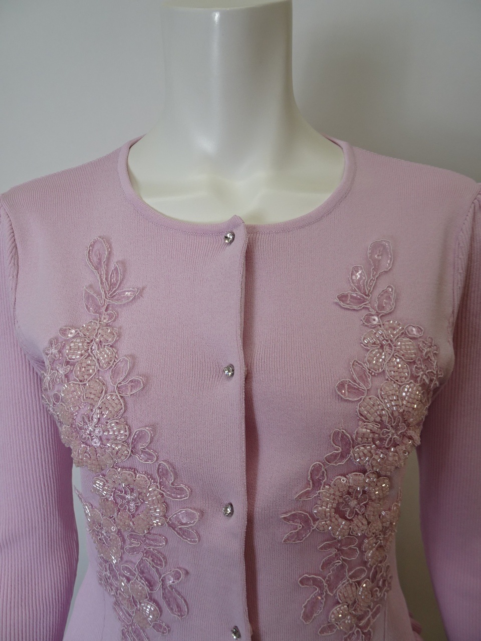 このカーディガンは、美しいスパンコール刺繍がきらめき、羽織るだけで華やかさと上品さを添えてくれる特別な一枚です。