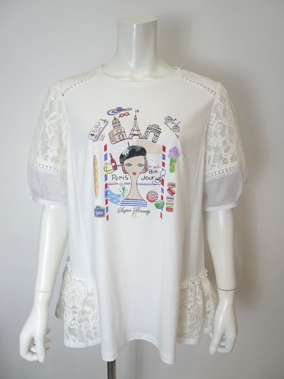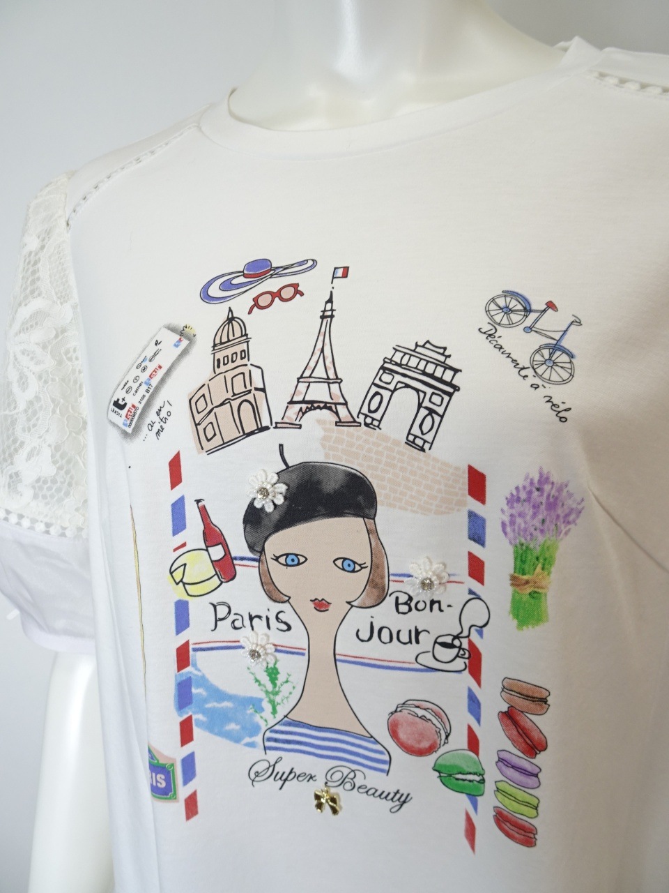胸元にはエッフェル塔やスイーツ、パリジェンヌのモチーフなど、パリを感じさせるアイコンを