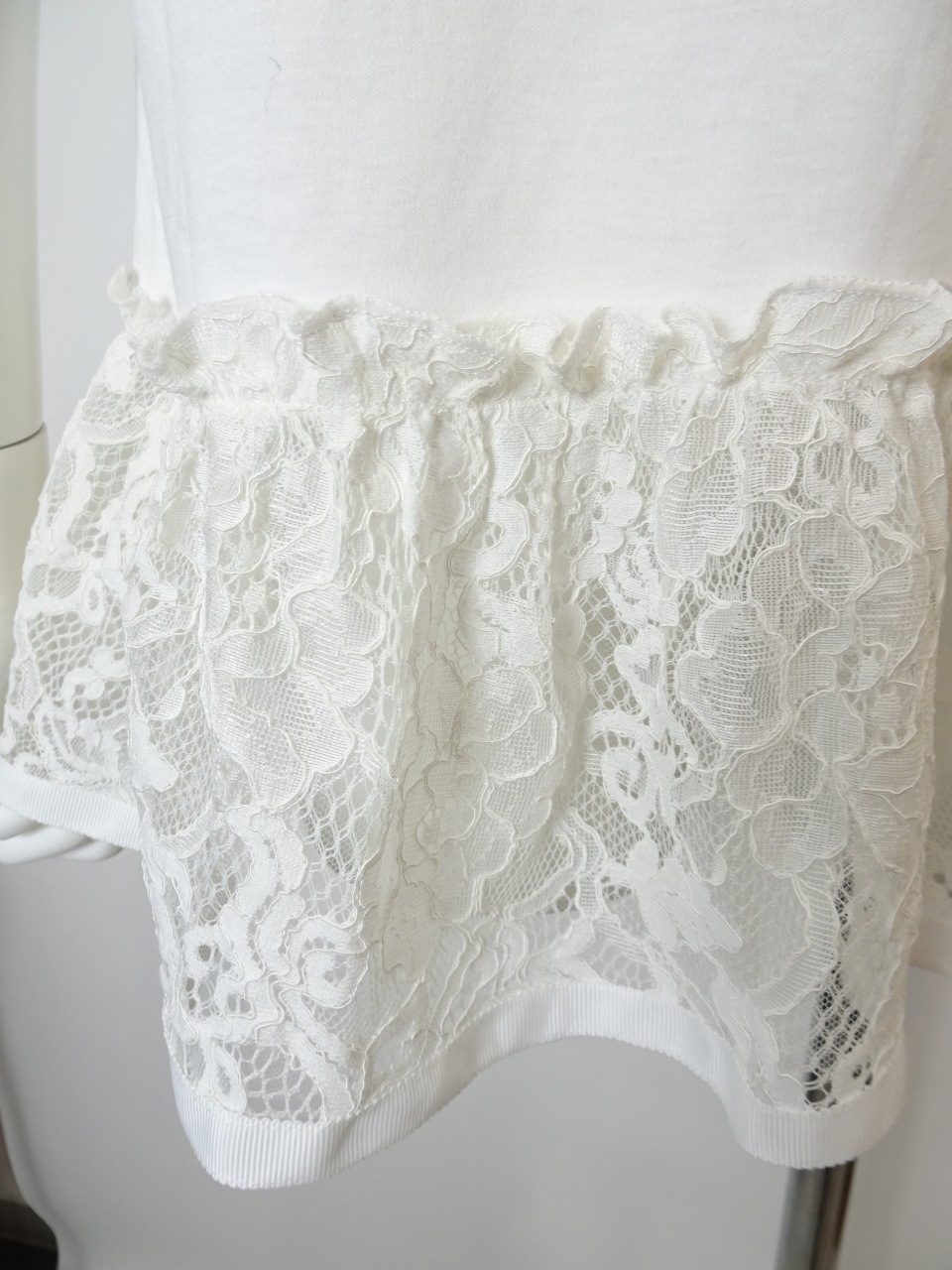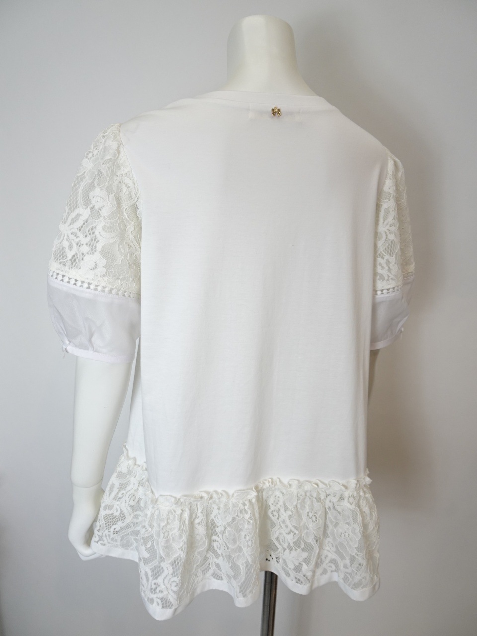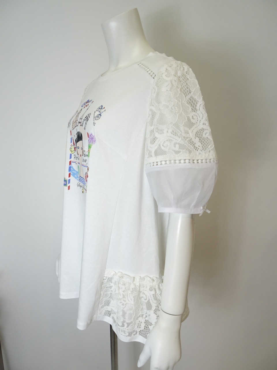 繊細なレースの切り替とふんわりとしたパフ袖が、大人の可愛らしさと華やかさを引き立てます。