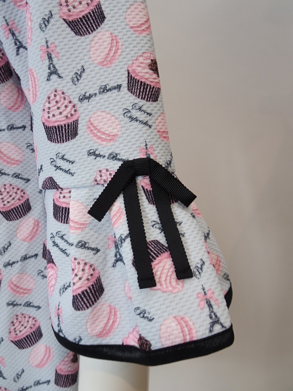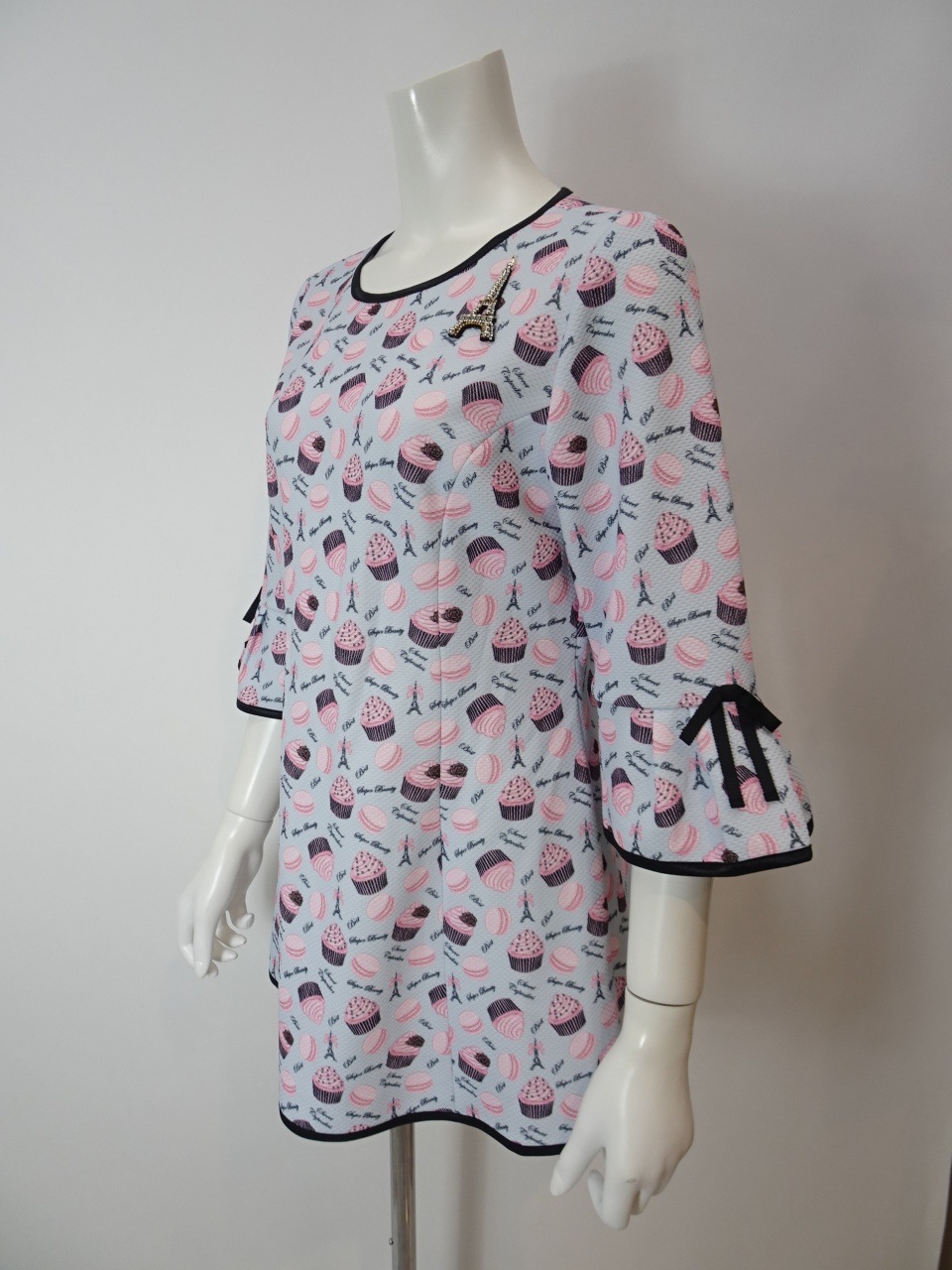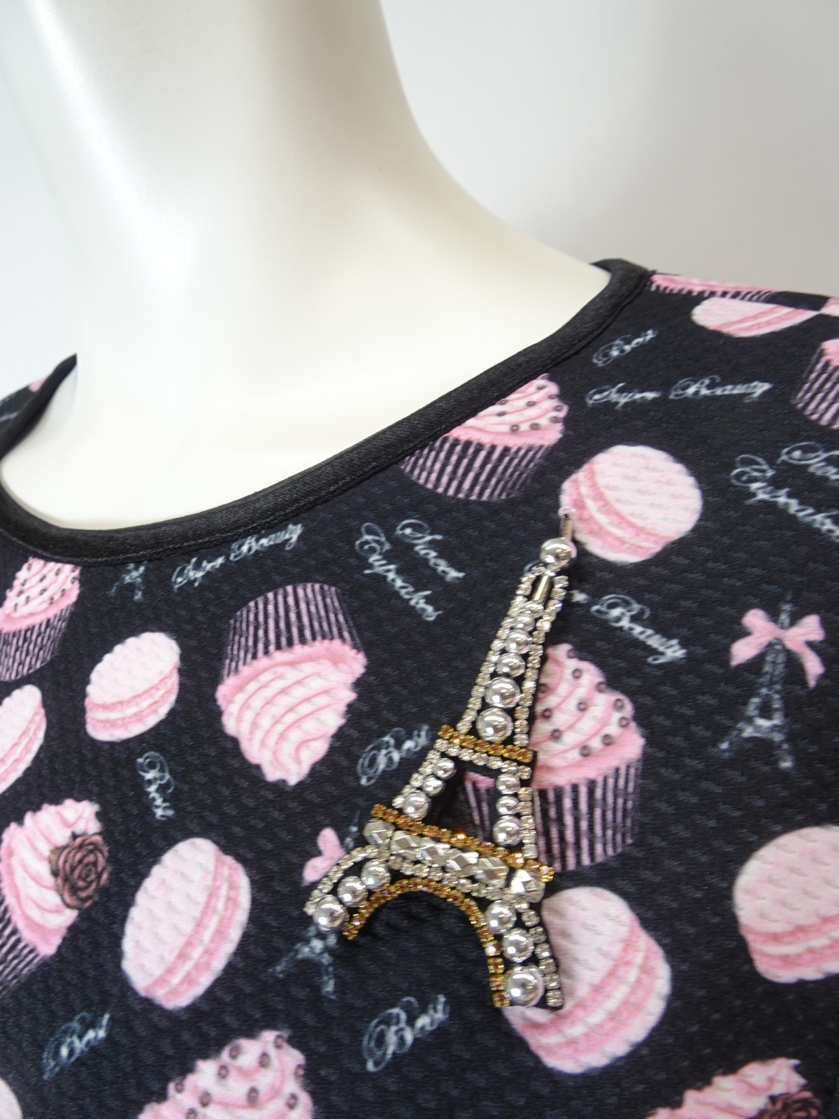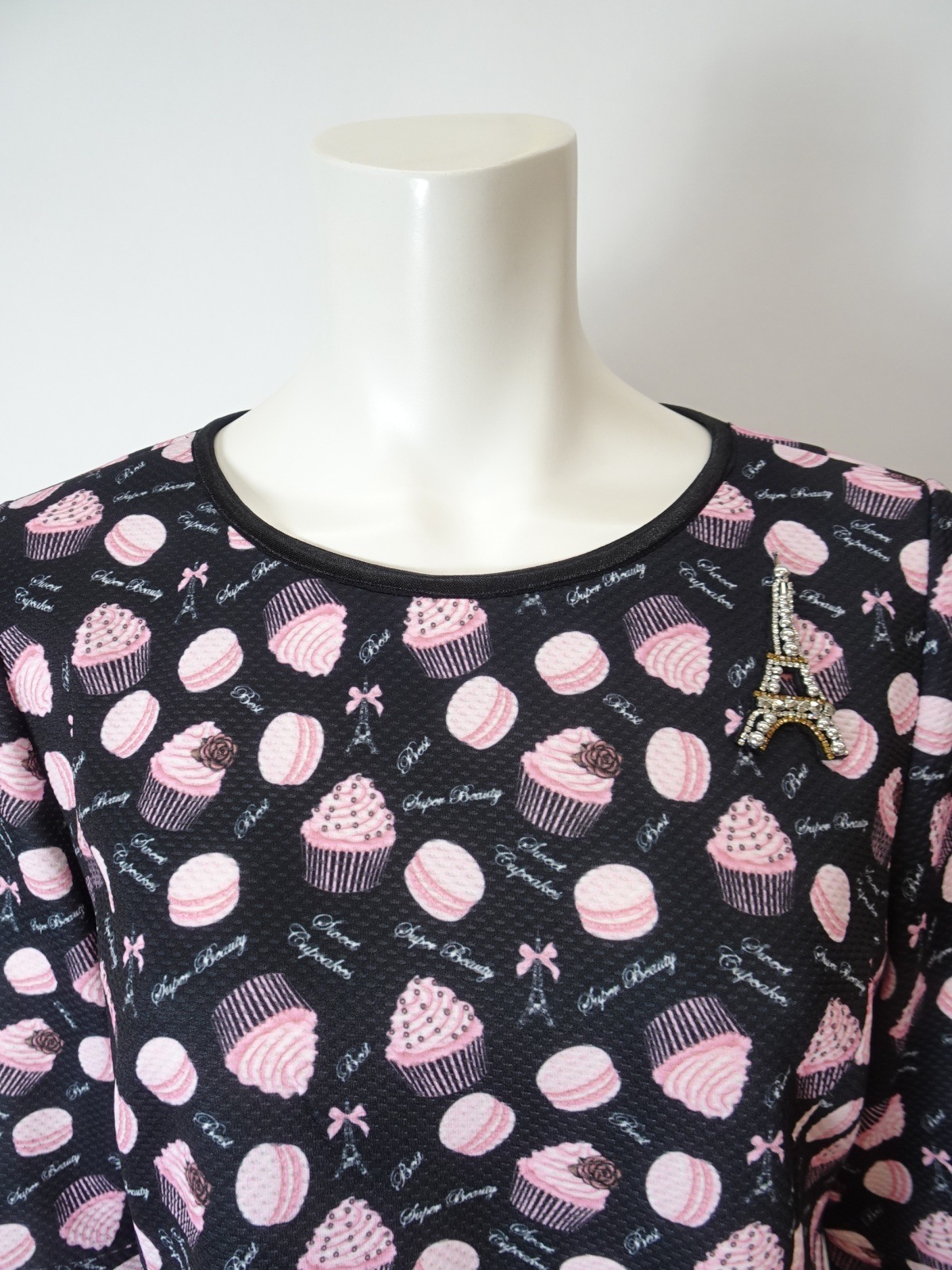2026年直営店別注のスイーツ柄チュニックカットソー。この特別なアイテムは、可愛らしいスイーツ&エッフェル塔プリントが施されており、春夏のおしゃれを一段と引き立てます。エッフェル塔モチーフがさりげなくデザインされており、パリのエレガンスを感じさせてくれます。