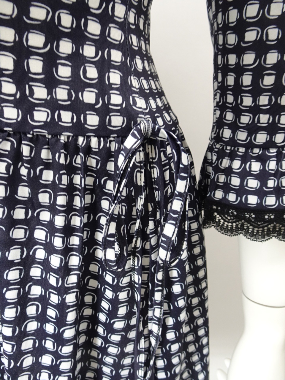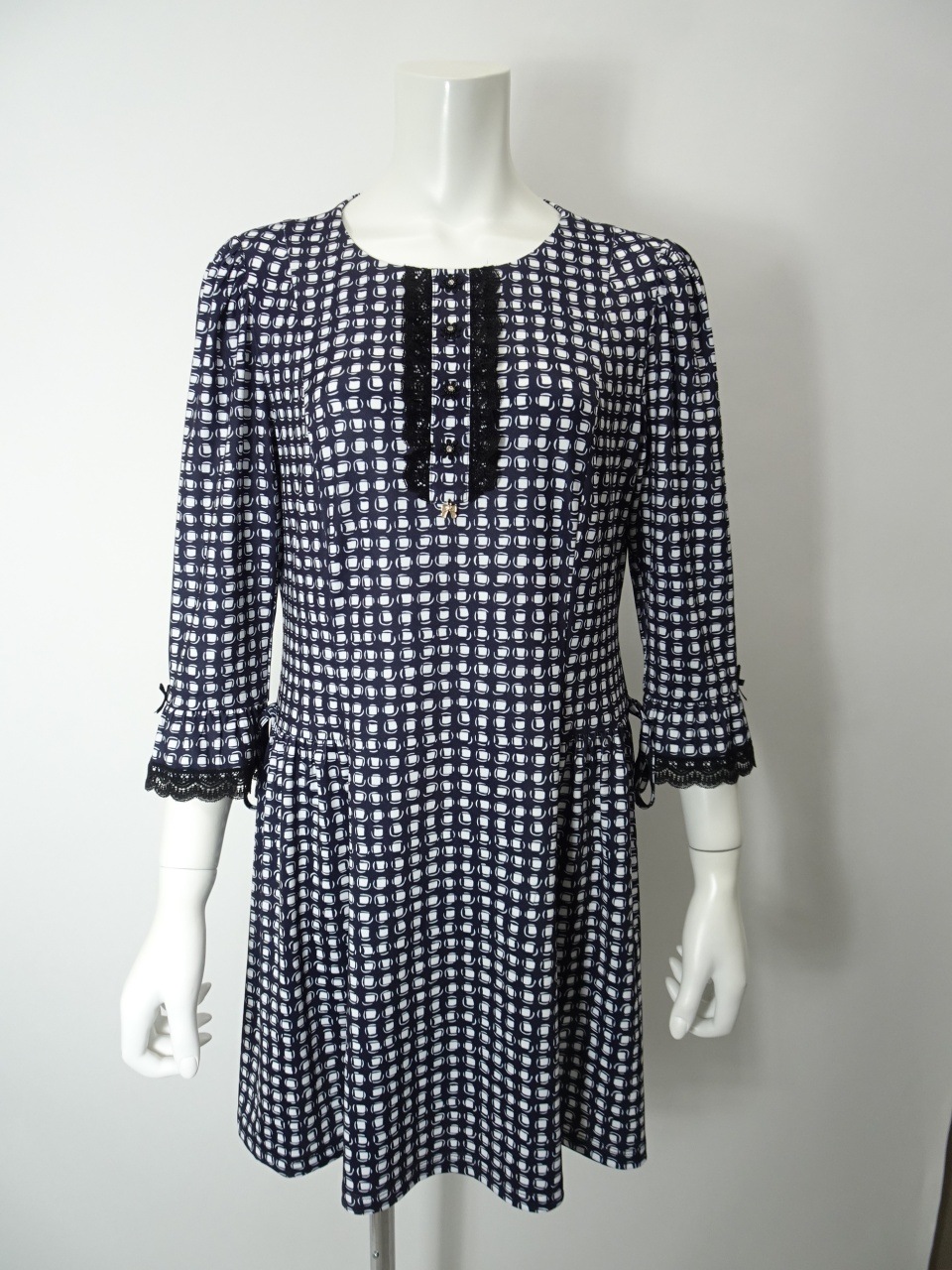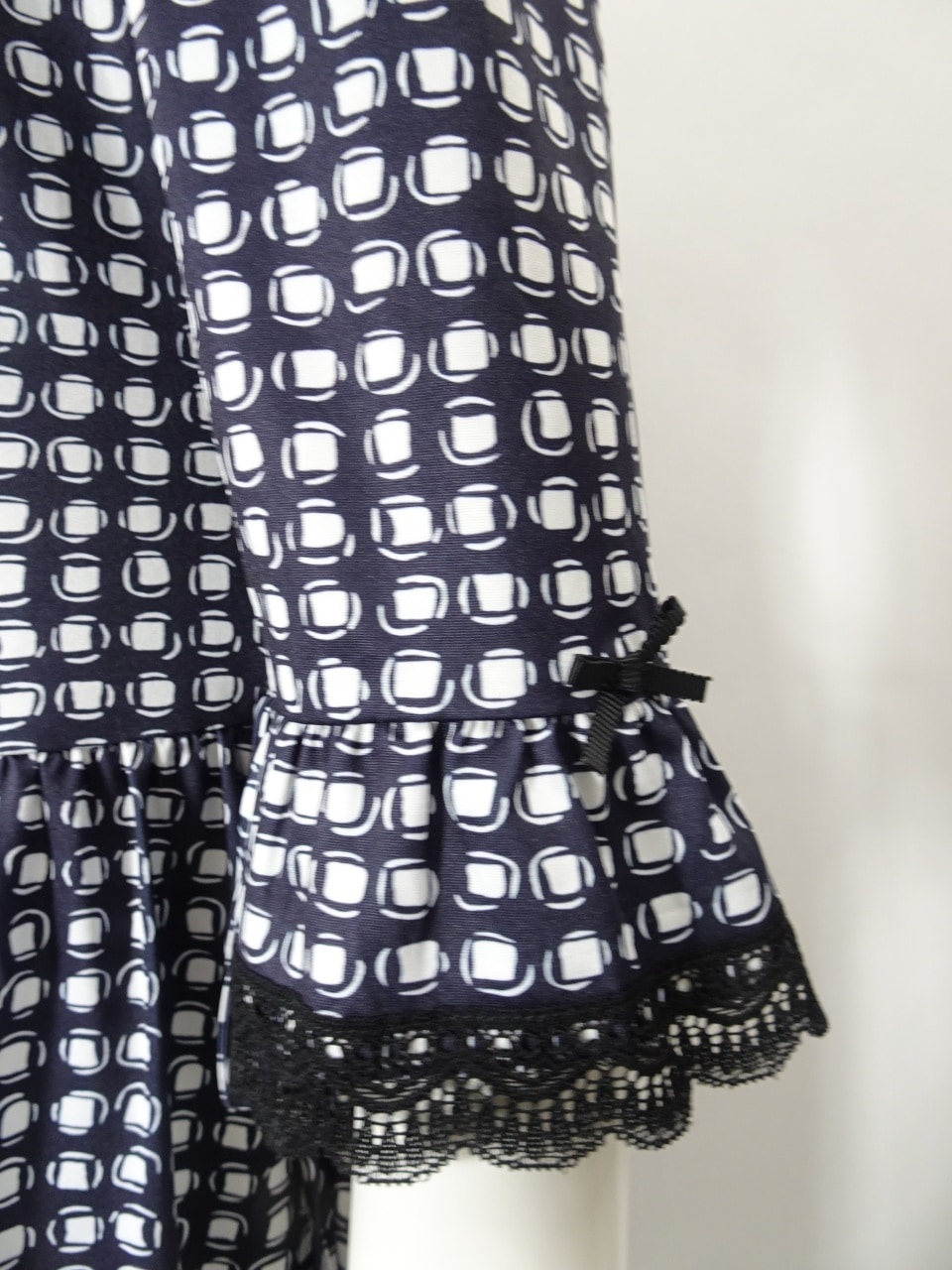 2026年春夏物 かぎ針花モチーフ使いニット ×ドット柄切替ワンピース 2611006