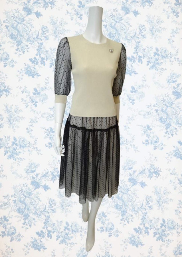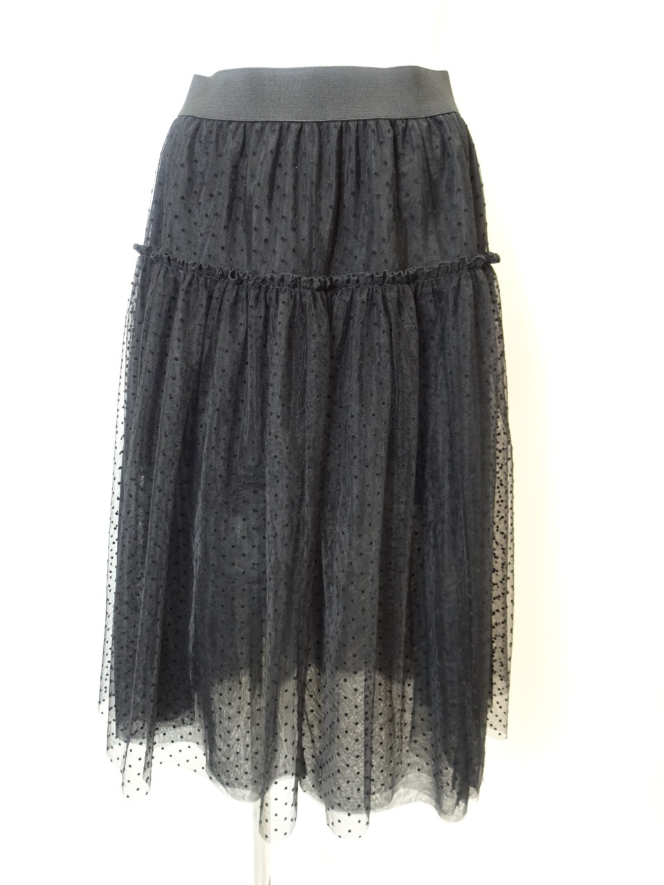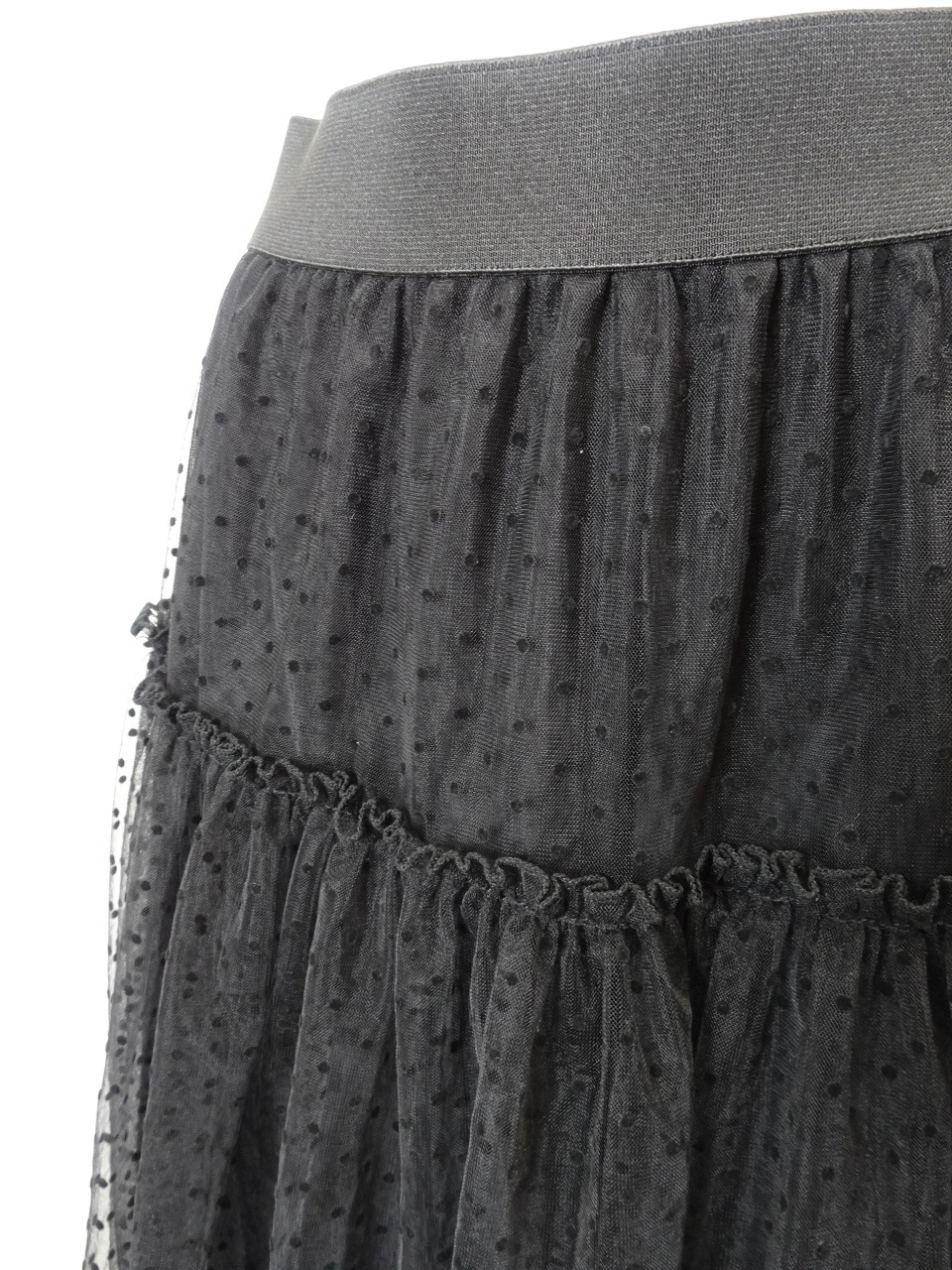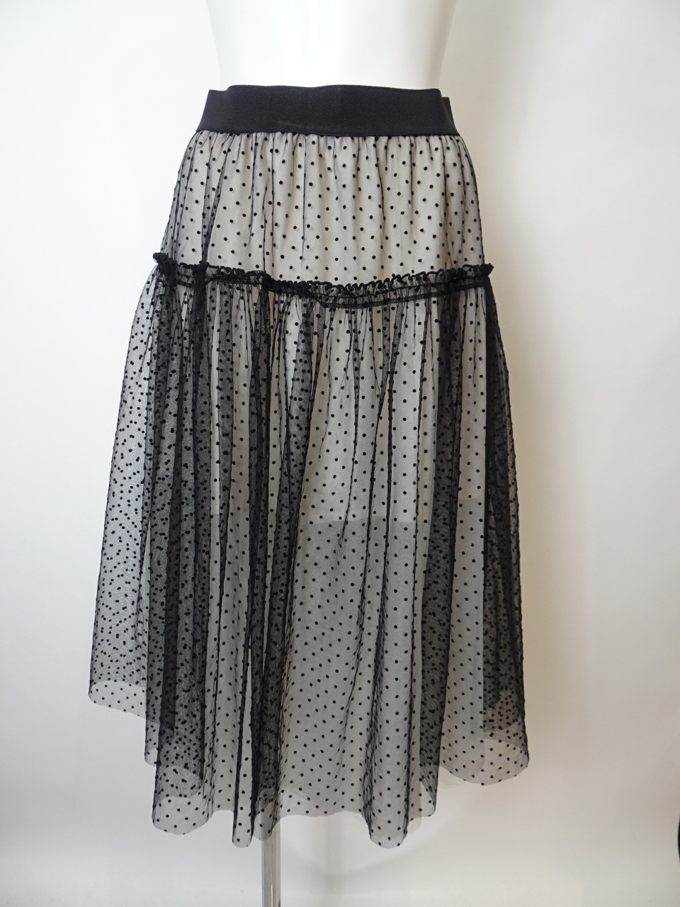 繊細なチュールとオーガンジーを重ねた、軽やかでフェミニンな印象のスカート。