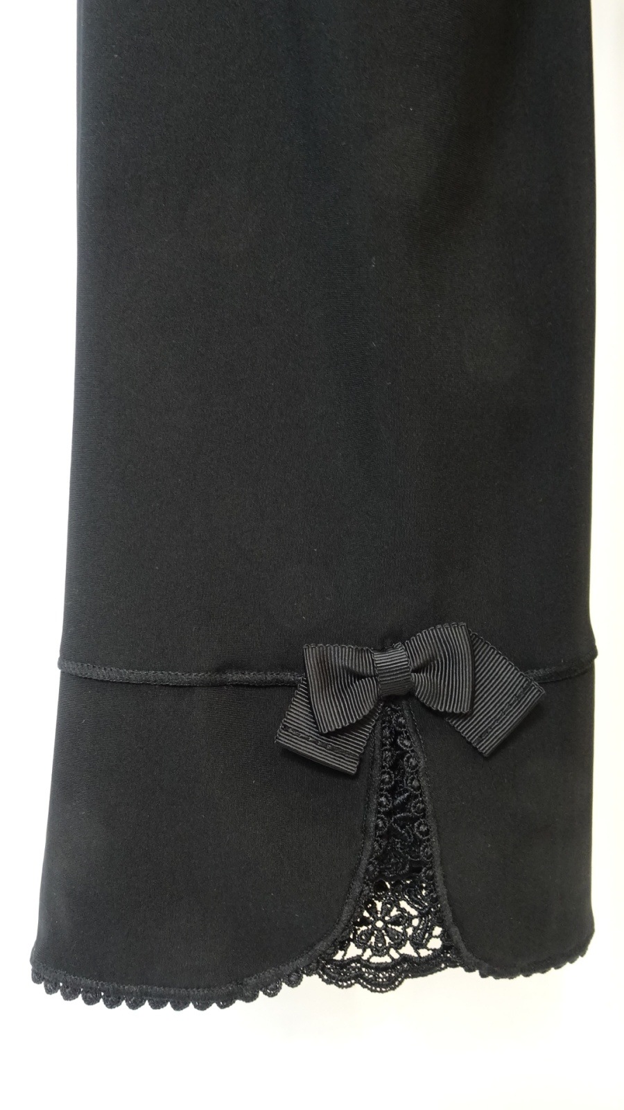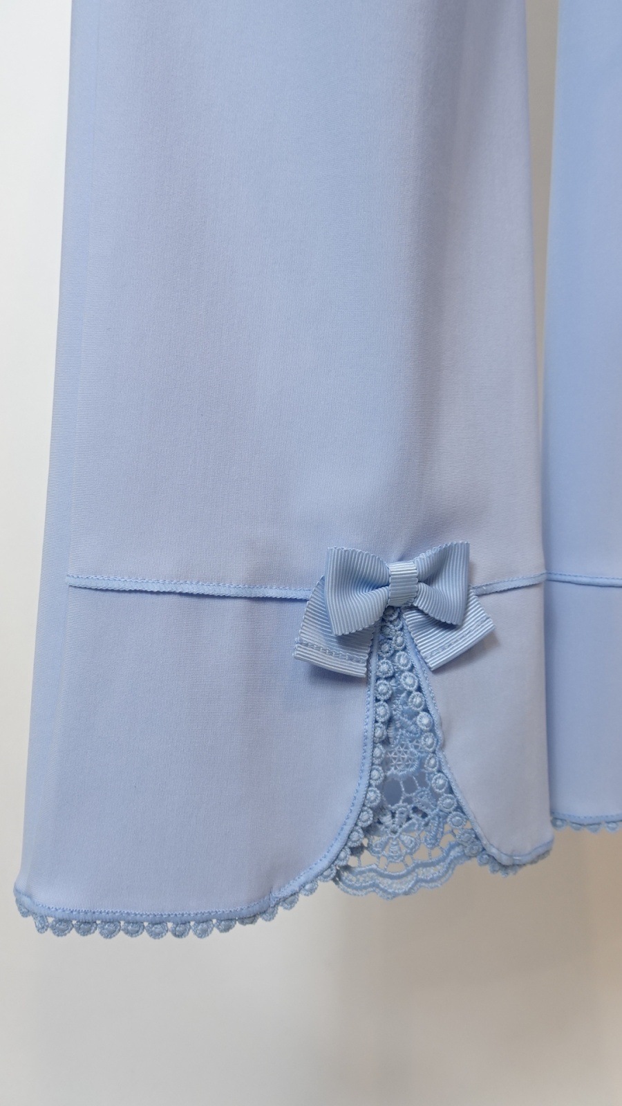 さりげなく配した後ろリボンと、裾にあしらわれた繊細なレース&リボンモチーフが、