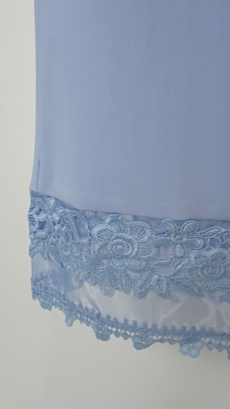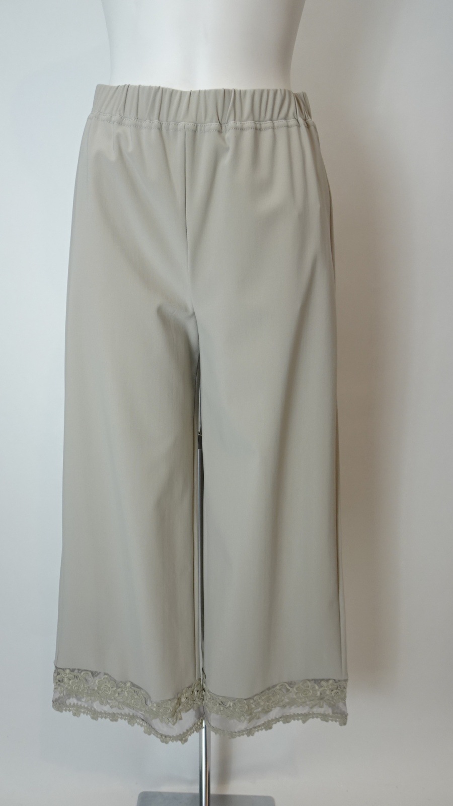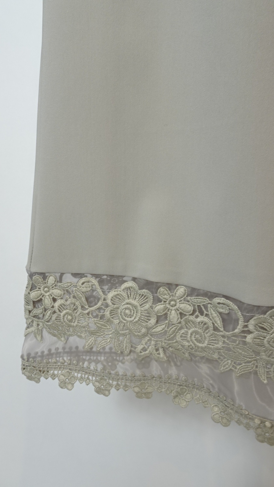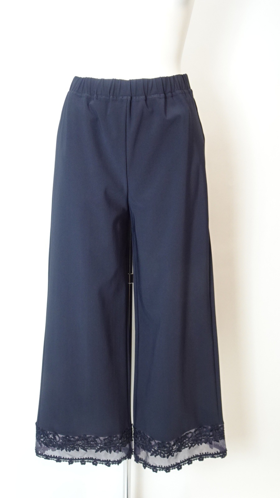 涼やかなシアー素材に、裾のレース切替が印象的な一本。