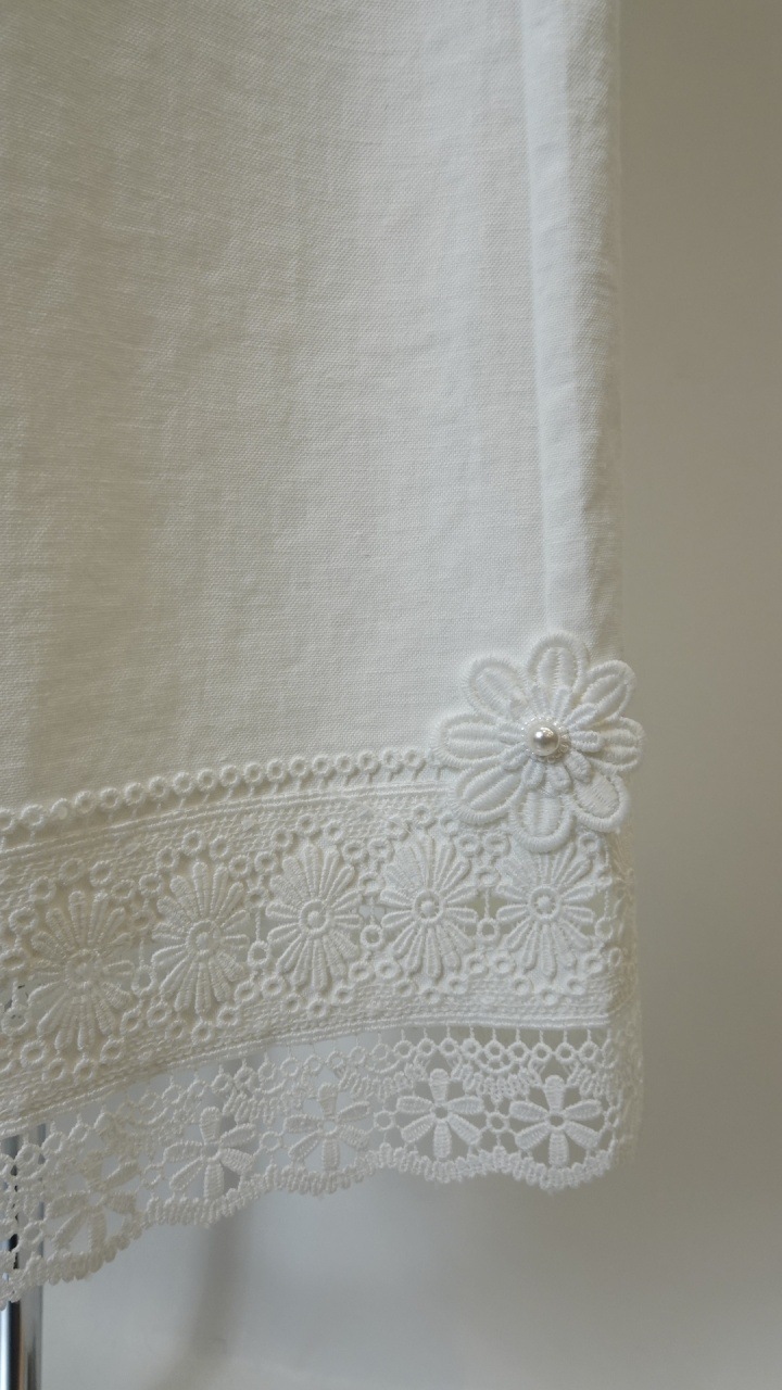 裾にはエレガントなレースをあしらい、花モチーフのデザインが華やかさをプラス。