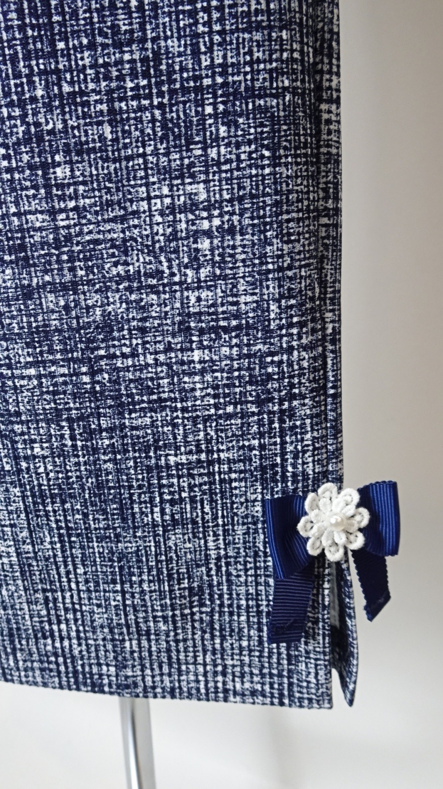 裾にはリボンと花モチーフをあしらい、足元にさりげない華やぎをプラス。