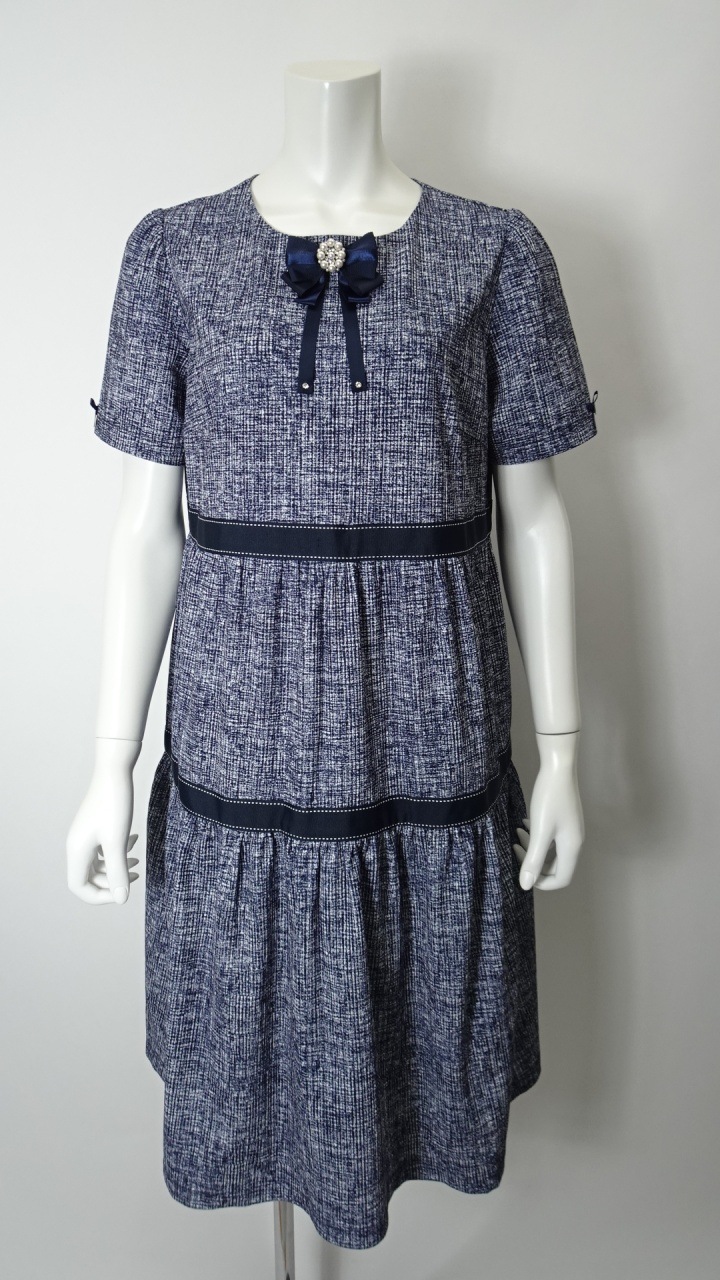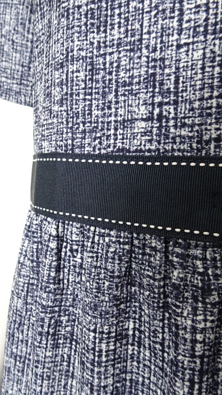 2026年春夏物 グログランテープ使い転写プリント素材 コサージュ付半袖ワンピース 2616013