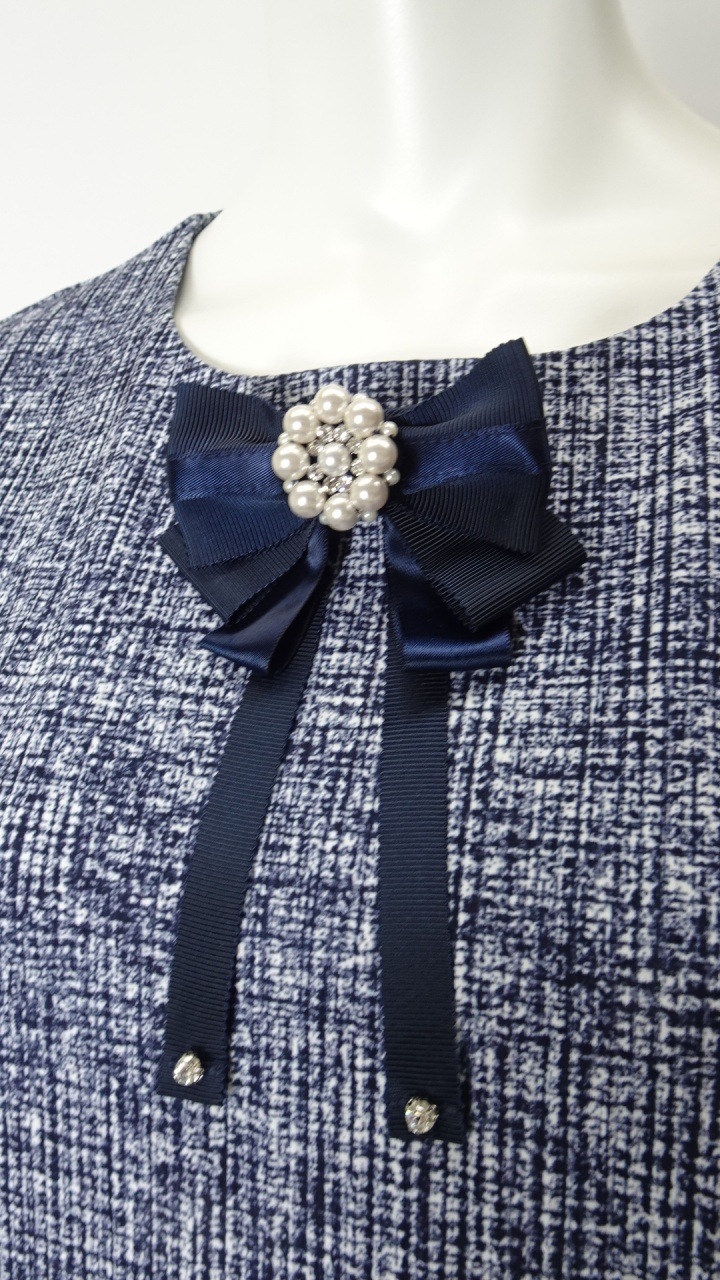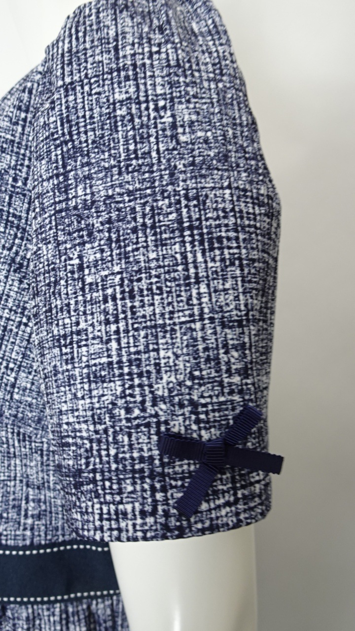 胸元には可愛らしいリボン型のコサージュがついており、華やかさをプラスします。袖にも小さいリボンを付けました。