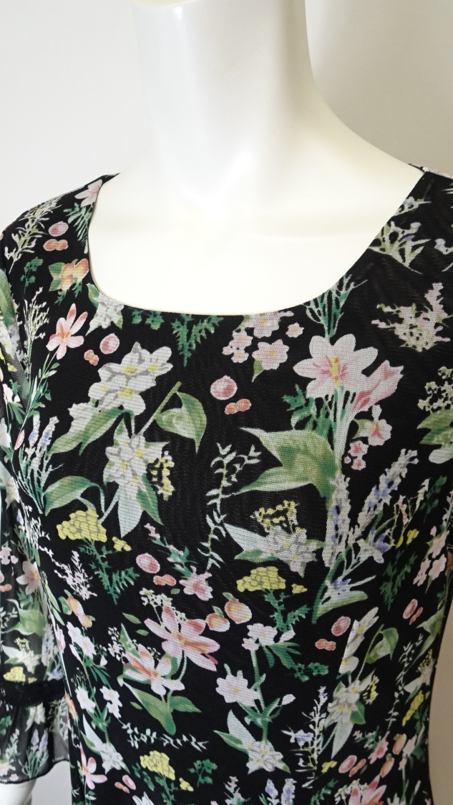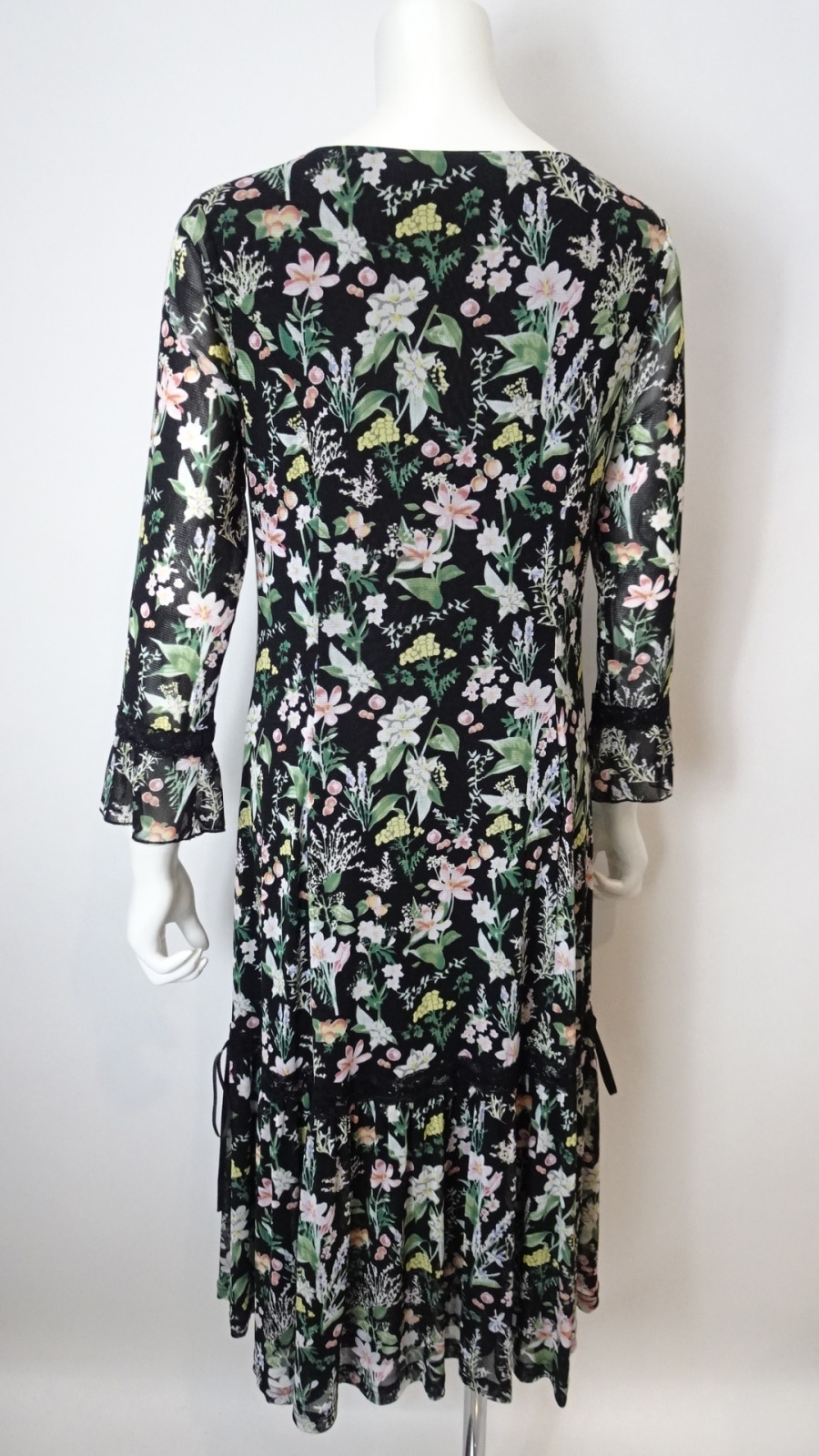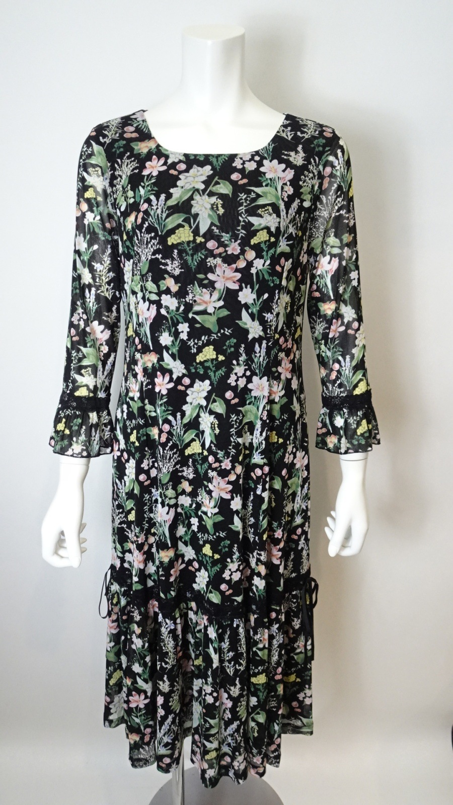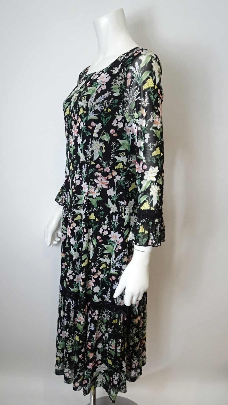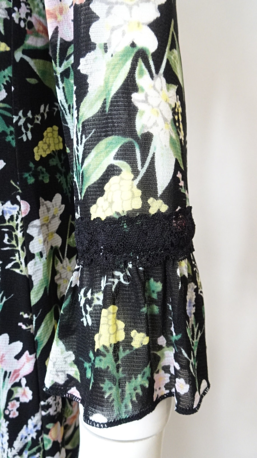 旬の多色フラワーが華やかに映える、存在感のある一着です。