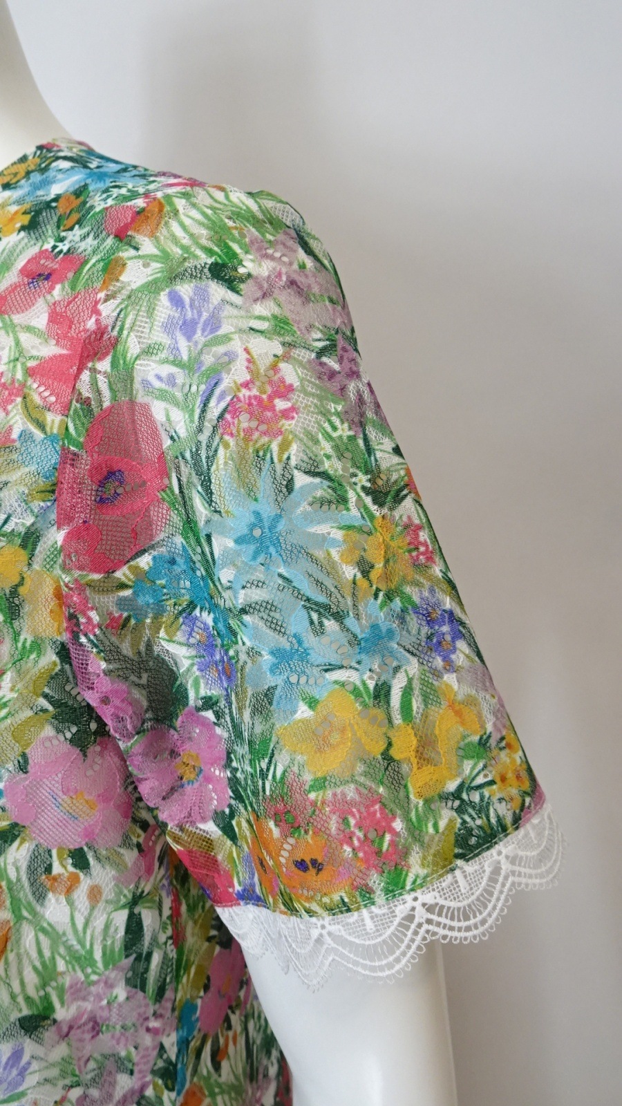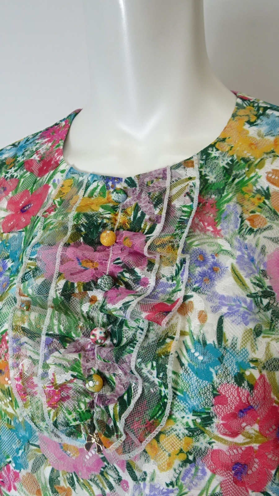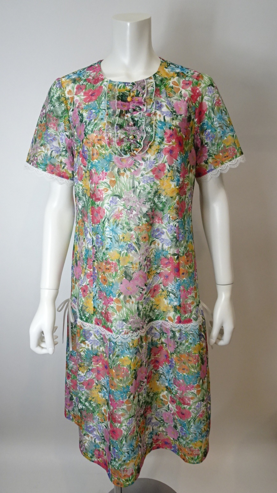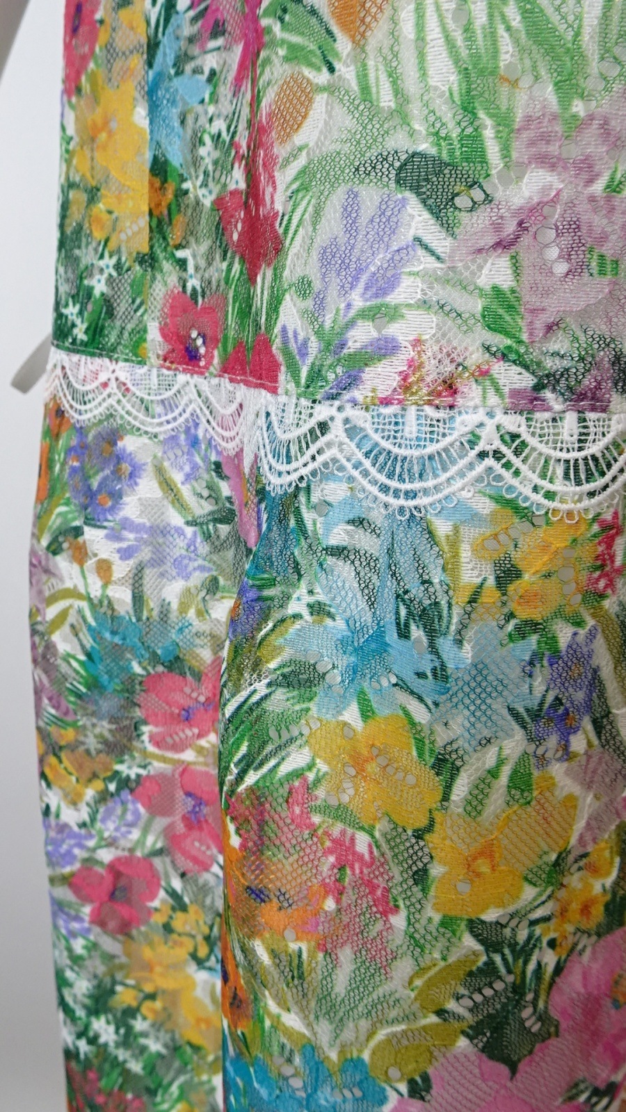 あるワンピース。マルチカラーの花々が鮮やかに咲き誇り、幻想的な雰囲気を演出します。
