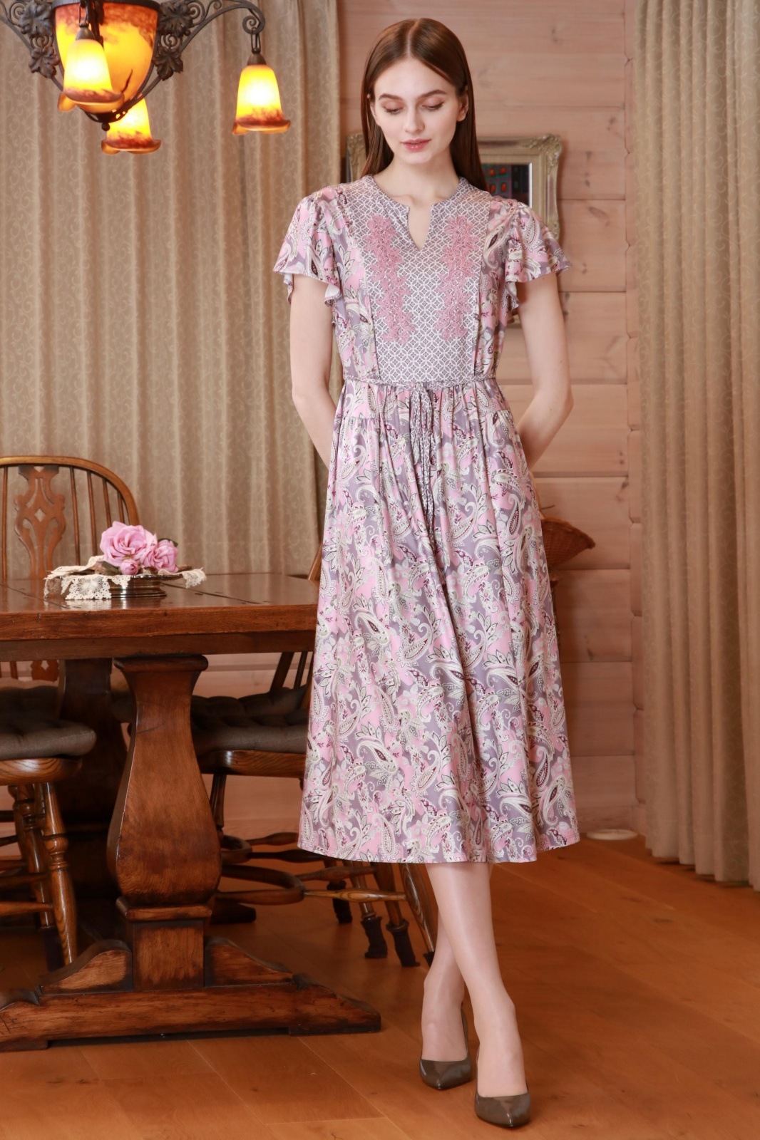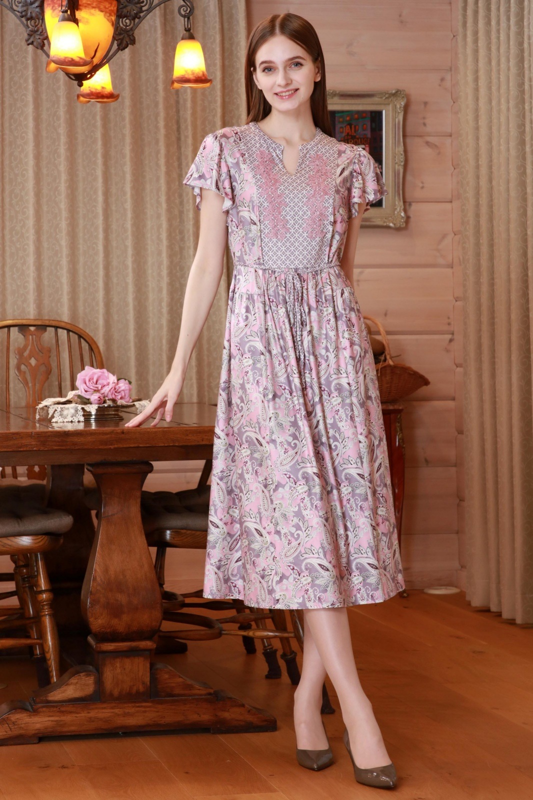 大人の女性にこそ似合う、華やかさと着心地を兼ね備えた一着です。
