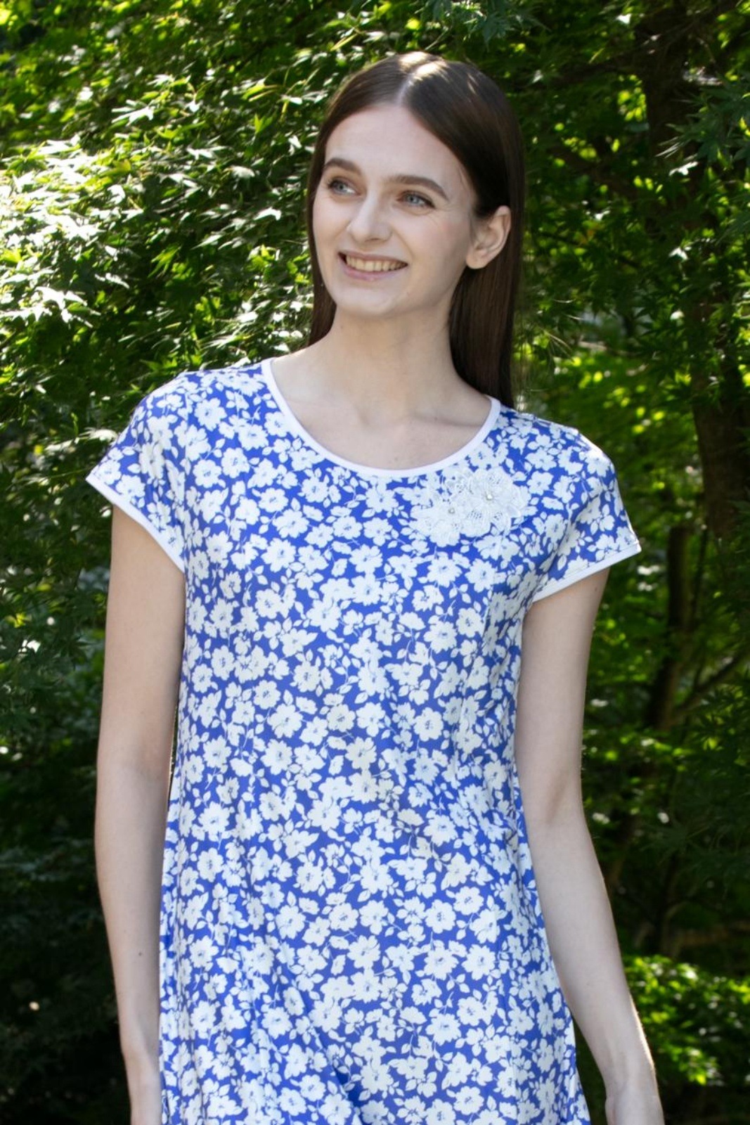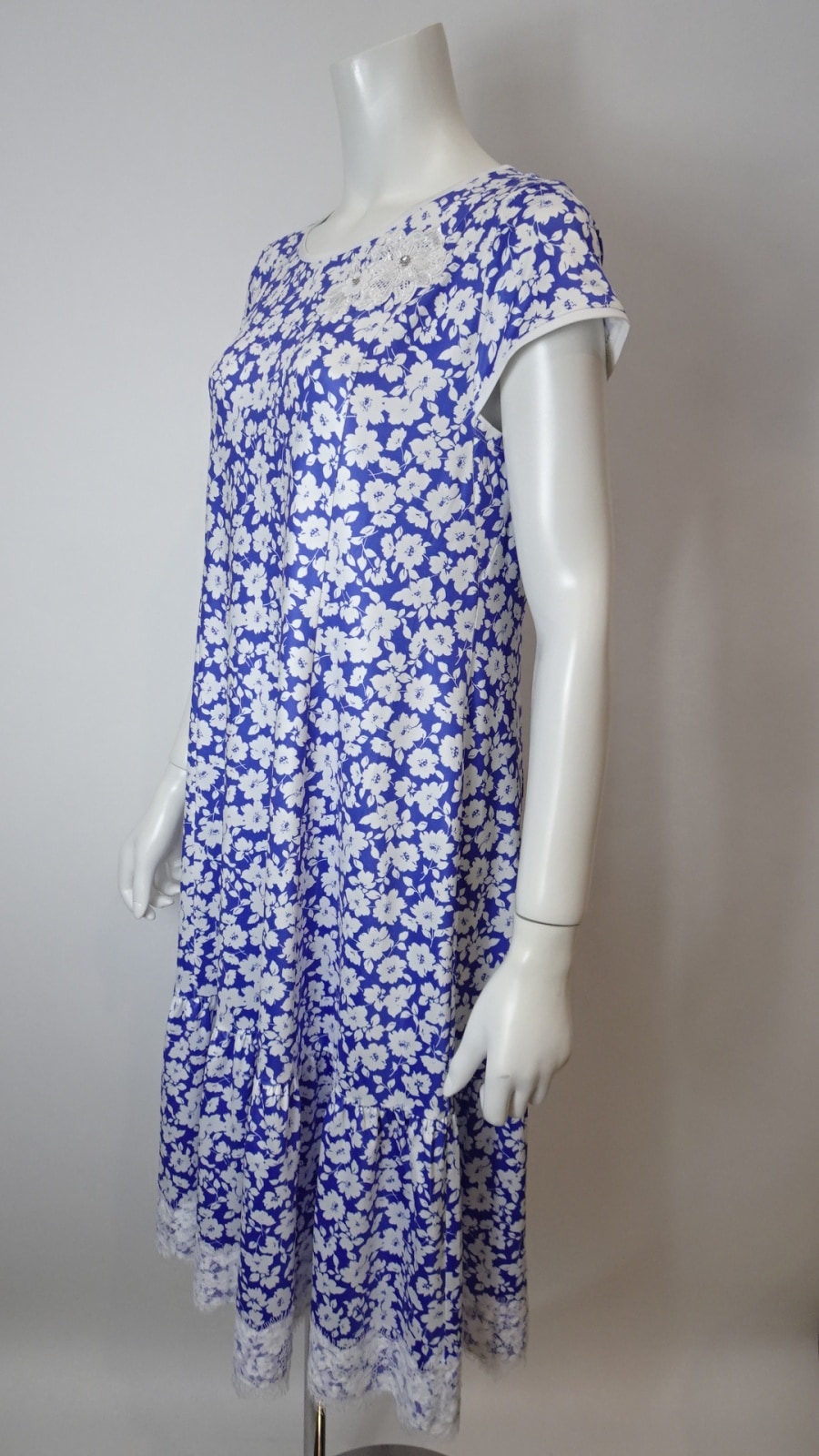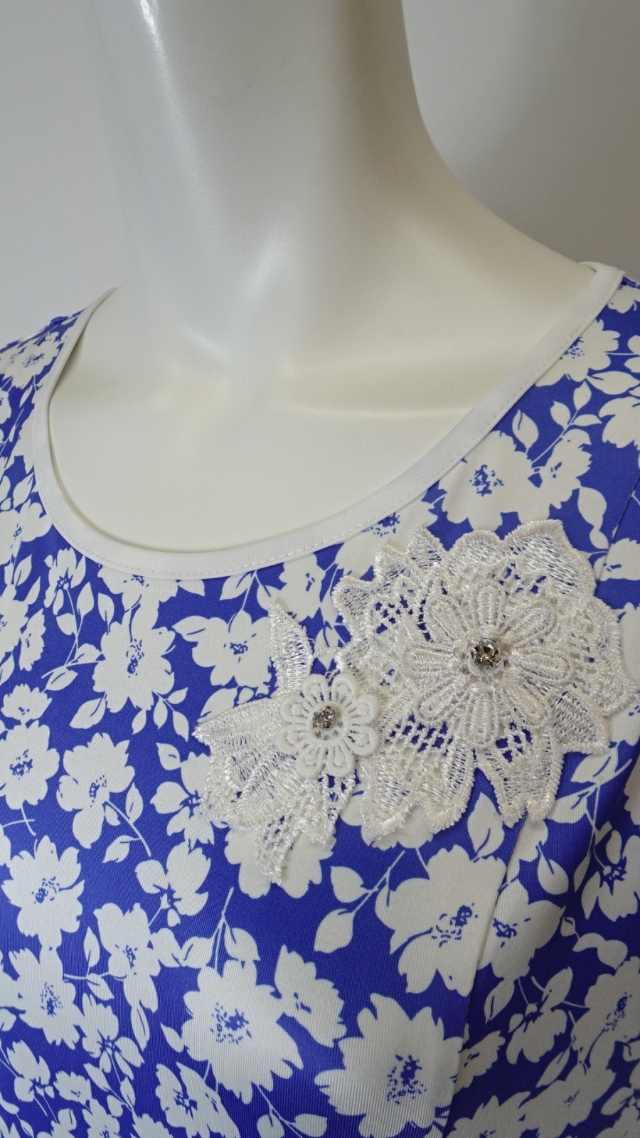 2026年春夏物 ブルー系フラワープリント 裾レース使いワンピース 2616038 3月納品予定