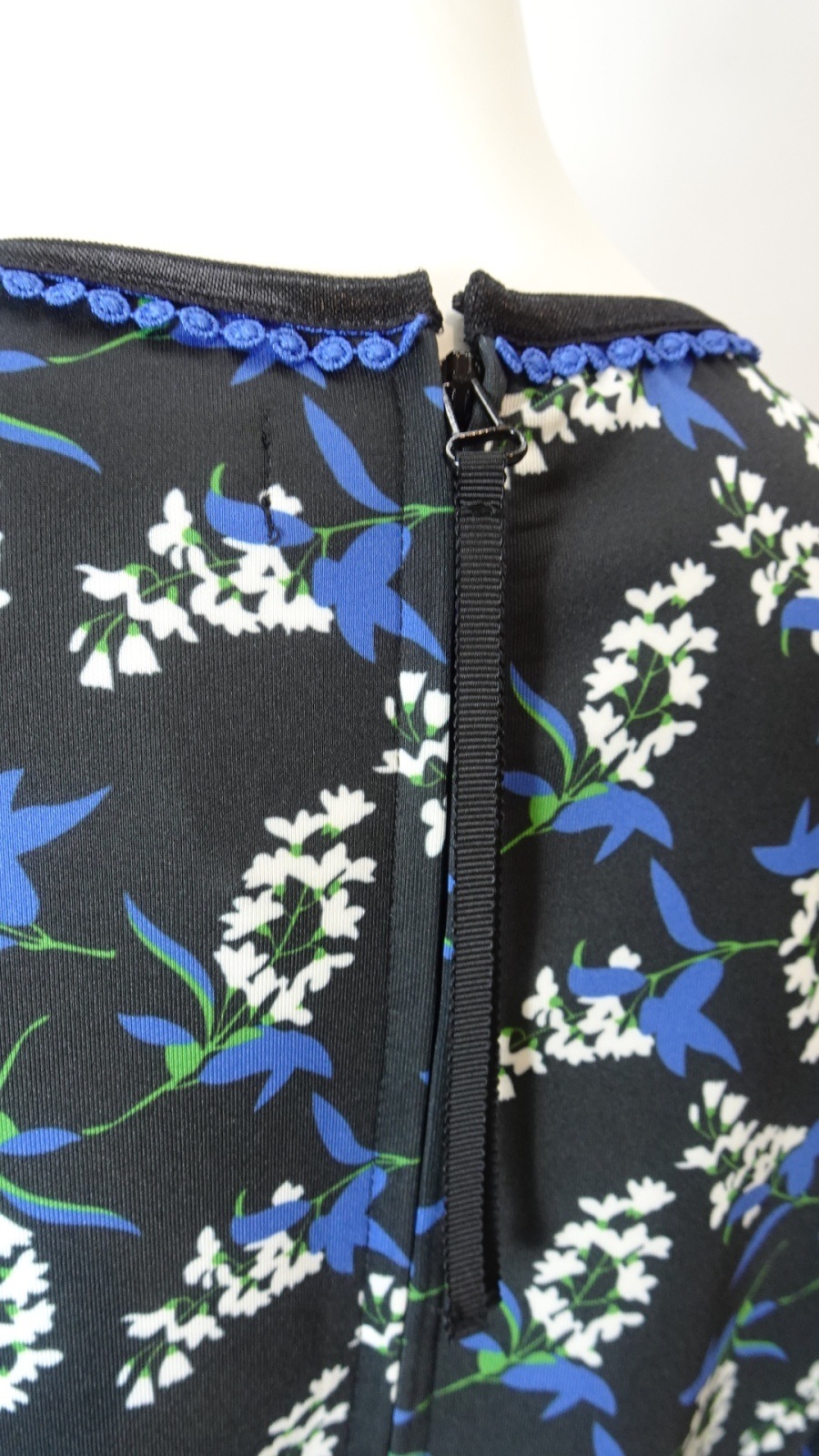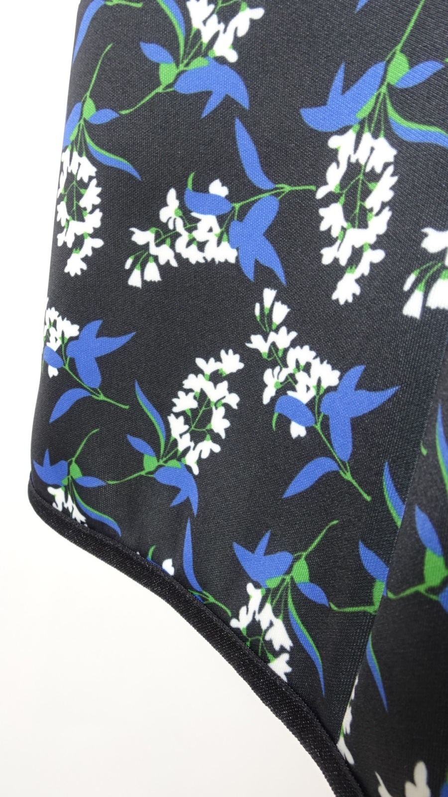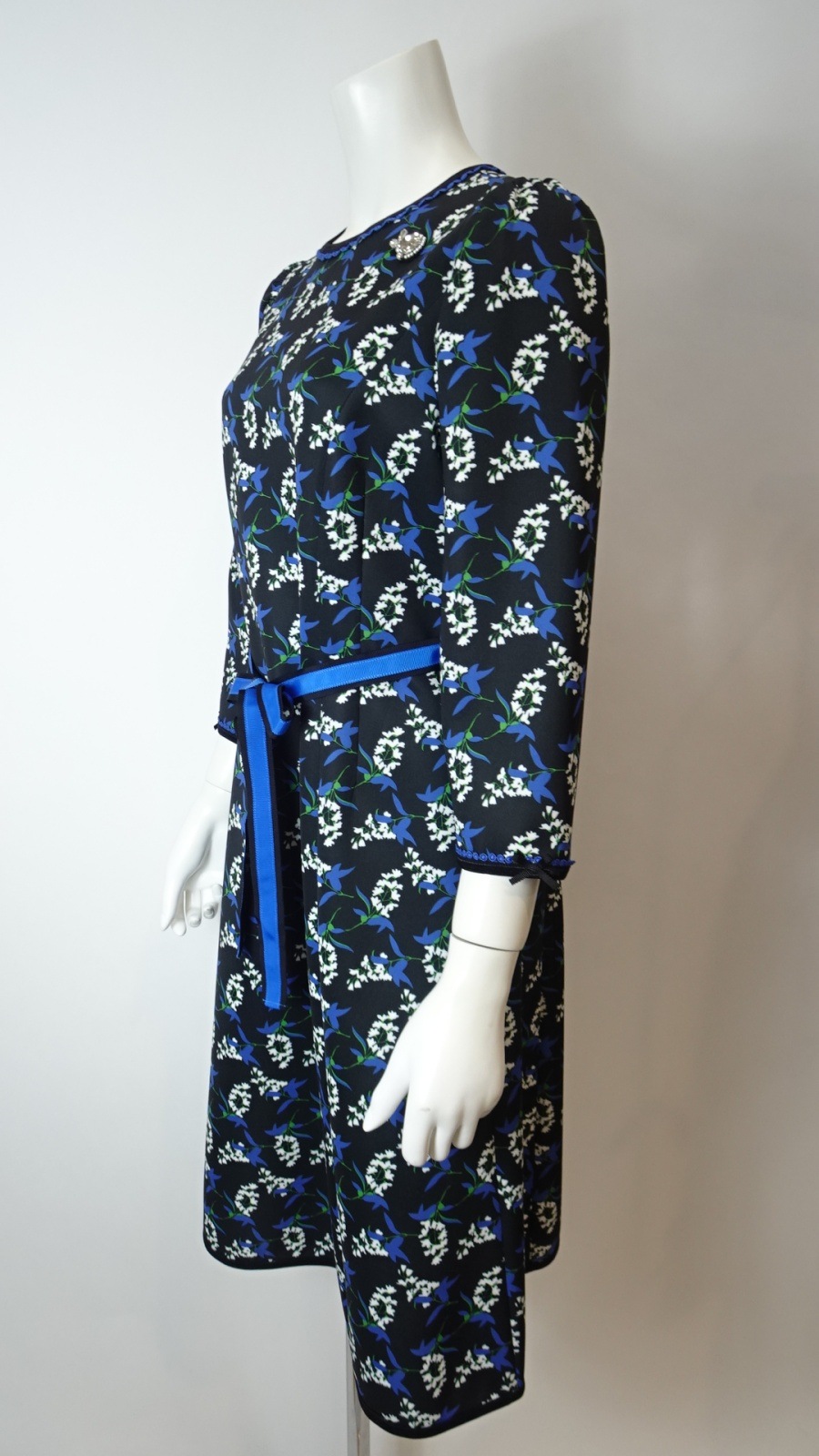 さらに、ベルト部分は黒地にブルーのリボンの2色展開で、おしゃれなアクセントとなっています。このワンピースは、フォーマルな場面からカジュアルな日常のお出かけまで、さまざまなシーンで活躍します。